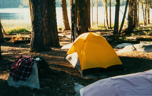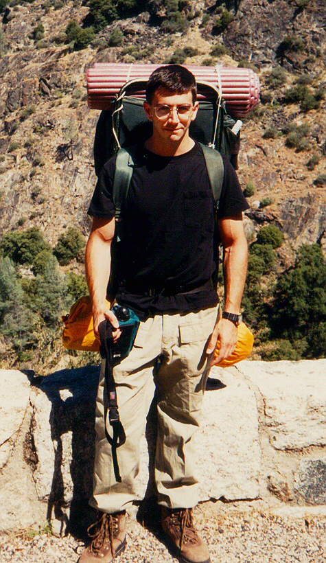 This is a picture of me cooking dinner during our exciting trip at Yosemite (81k jpeg). |