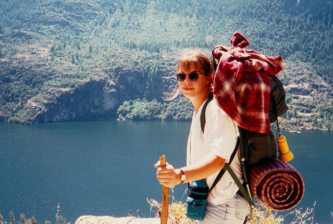 An excellent picture of Kathi during a break in our hike (79k jpeg). |