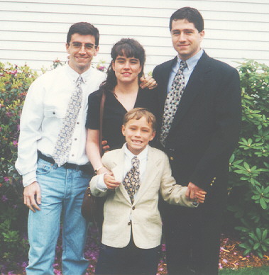 From left to right: me, my sister Colleen, my brother Flip, and my nephew Alex. (51k jpeg). |