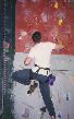 Here are some pictures of Kathi climbing at an indoor rock gym.