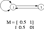 has entry M(i,k) = 1/d iff k points to i and k has degree 'd'. In(i) subseteq