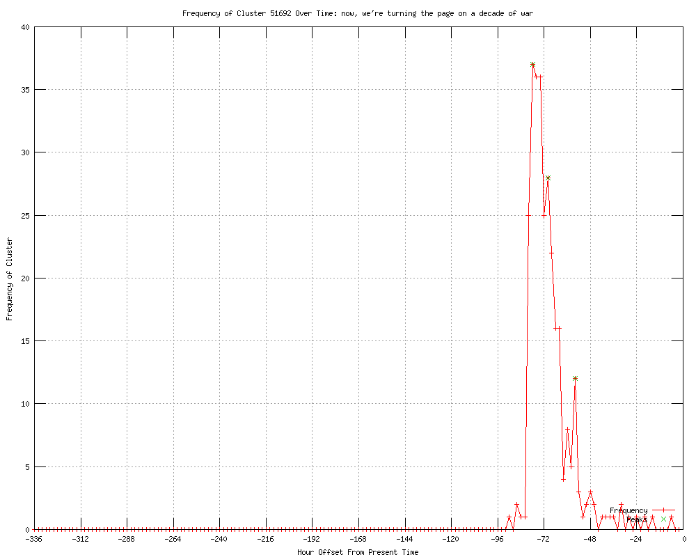 | 18 | we're turning the page on a decade of war Urls http://washingtonpost.com/world/national-security/obama-announces-new-military-approach/2012/01/05/gIQAFWcmcP_story.html?wprss=rss_national-security http://washingtonpost.com/world/national-security/obama-announces-new-military-approach/2012/01/05/gIQAFWcmcP_story.html?wprss=rss_politics http://feeds.washingtonpost.com/click.phdo?i=f65d35eca557a36e67b4e870c208d9de http://washingtonpost.com/world/national-security/obama-announces-new-military-approach/2012/01/05/gIQAFWcmcP_story.html?wprss=rss_world http://wik.io/info/US/307933591 http://slatest.slate.com/posts/2012/01/05/defense_cuts_obama_plans_for_smaller_us_military.html http://washingtonpost.com/world/national-security/obama-announces-new-military-approach/2012/01/05/gIQAFWcmcP_print.html http://investmentwatchblog.com/obama-strategy-cuts-defense-spending-dramatically/ http://pbs.org/newshour/bb/military/jan-june12/panetta_01-05.html http://usatoday.com/news/military/story/2012-01-05/Obama-defense-downsized-reaction/52398342/1?csp=34news http://rssfeeds.usatoday.com/~r/usatoday-NewsTopStories/~3/29F_FY0UgwE/1 http://.lexisnexis.com/publisher/EndUser?Action=UserDisplayFullDocument&orgId=574&topicId=100020416&docId=l:1576841022&isRss=true&Em=4 http://mcclatchydc.com/2012/01/06/134995/obamas-defense-strategy-doesnt.html http://wltx.com/news/national/article/166807/142/Obama-Takes-Flak-on-Defense-Downsizing http://business-standard.com/india/news/india-ally-china-foe-in-new-us-defence-strategy/461028/ http://voiceofthecopts.org/news/obama-eyes-massive-pentagon-cuts/ http://.lexisnexis.com/publisher/EndUser?Action=UserDisplayFullDocument&orgId=574&topicId=100020416&docId=l:1577493673&isRss=true&Em=4 http://jottings.in/2012/01/from-todays-papers-07-jan-2012.html |