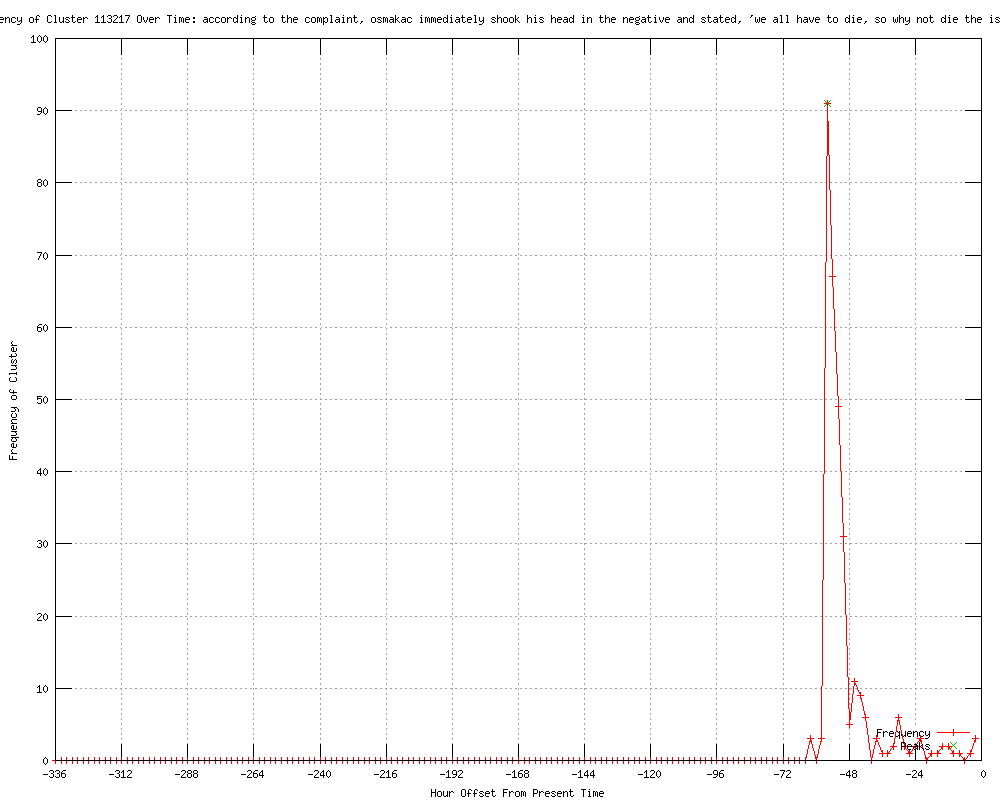 | 85 | according to the complaint, osmakac immediately shook his head in the negative and stated, 'we all have to die, so why not die the islamic way?' Urls http://theolympian.com/2012/01/09/1941677/25-year-old-man-arrested-by-feds.html http://clickorlando.com/news/Officials-Islamic-extremist-planned-to-bomb-Florida-sites/-/1637132/7666684/-/fyskex/-/index.html http://ajc.com/news/nation-world/25-year-old-man-1296323.html?cxtype=rss_news_82111 http://wect.com/story/16477565/25-year-old-man-arrested-by-feds-in-fla-bomb-plot http://usatoday.com/news/nation/story/2012-01-09/florida-bomb-plot/52466292/1?csp=34news http://.wnct.com/news/2012/jan/09/25-year-old-man-arrested-feds-fla-bomb-plot-ar-1795525/ http://kusi.com/story/16477565/25-year-old-man-arrested-by-feds-in-fla-bomb-plot http://wric.com/story/16477565/25-year-old-man-arrested-by-feds-in-fla-bomb-plot http://cbsnews.com/8301-201_162-57355150/alleged-extremist-terror-plot-foiled-in-tampa/ http://wten.com/story/16477565/25-year-old-man-arrested-by-feds-in-fla-bomb-plot http://koamtv.com/story/16477565/25-year-old-man-arrested-by-feds-in-fla-bomb-plot http://ktiv.com/story/16477565/25-year-old-man-arrested-by-feds-in-fla-bomb-plot http://kswt.com/story/16477565/25-year-old-man-arrested-by-feds-in-fla-bomb-plot http://kcbd.com/story/16477565/25-year-old-man-arrested-by-feds-in-fla-bomb-plot http://wandtv.com/story/16477565/25-year-old-man-arrested-by-feds-in-fla-bomb-plot http://wkrn.com/story/16477565/25-year-old-man-arrested-by-feds-in-fla-bomb-plot http://sacbee.com/2012/01/09/4173735/25-year-old-man-arrested-by-feds.html#mi_rss=Wire%20National%20News http://cbs3springfield.com/story/16477565/25-year-old-man-arrested-by-feds-in-fla-bomb-plot http://washingtonpost.com/national/authorities-suspected-islamic-extremist-arrested-in-plan-to-bomb-shoot-up-tampa-area-sites/2012/01/09/gIQANzIdlP_story.html?wprss=rss_national http://wral.com/news/national_world/national/story/10577486/ http://wbay.com/story/16477565/25-year-old-man-arrested-by-feds-in-fla-bomb-plot http://kold.com/story/16477565/25-year-old-man-arrested-by-feds-in-fla-bomb-plot http://whbf.com/story/16477565/25-year-old-man-arrested-by-feds-in-fla-bomb-plot http://news-leader.com/usatoday/article/38300597?odyssey=mod|newswell|text|FRONTPAGE|s http://feeds.cbsnews.com/~r/CBSNewsMain/~3/sEbW_FX5gCM/ http://newsobserver.com/2012/01/09/1764697/25-year-old-man-arrested-by-feds.html http://mysanantonio.com/news/article/25-year-old-man-arrested-by-feds-in-Fla-bomb-plot-2450578.php http://newstimes.com/news/article/25-year-old-man-arrested-by-feds-in-Fla-bomb-plot-2450578.php http://wggb.com/2012/01/09/25-year-old-man-arrested-by-feds-in-fla-bomb-plot/ http://washingtonpost.com/national/authorities-suspected-islamic-extremist-arrested-in-plan-to-bomb-shoot-up-tampa-area-sites/2012/01/09/gIQANzIdlP_story.html?wprss=rss_homepage http://news4jax.com/news/Officials-Islamic-extremist-planned-bombings-in-Fla/-/475880/7666980/-/141m30jz/-/index.html http://actionnewsjax.com:80/content/topstories/story/25-year-old-man-arrested-by-feds-in-Fla-bomb-plot/XPLM9Oo0_kS1f05GEVTQ1A.cspx?rss=1 http://newschannel5.com/story/16478011/25-year-old-man-arrested-by-feds-in-florida-bomb-plot http://cbs8.com/story/16478074/25-year-old-man-arrested-by-feds-in-fla-bomb-plot http://artesianews.com/ap-news/united-states-ap-news/25-year-old-man-arrested-by-feds-in-fla-bomb-plot/ http://timesleader.com/r?19=961&43=182021&44=136949773&32=3991&7=186426&40=http%3A%2F%2Fwww.timesleader.com%2Fnews%2F25-year-old_man_arrested_by_feds_in_Fla__bomb_plot_01-09-2012.html http://heraldtribune.com/article/20120109/wire/120109595 http://wral.com/news/national_world/national/story/10578064/ http://khnl.com/story/16477565/25-year-old-man-arrested-by-feds-in-fla-bomb-plot http://mcall.com/news/local/mc-terrorist-suspect-link-010912,0,1470793.storylink?track=rss http://wlbt.com/story/16477565/25-year-old-man-arrested-by-feds-in-fla-bomb-plot http://wsfa.com/story/16477565/25-year-old-man-arrested-by-feds-in-fla-bomb-plot http://mysanantonio.com/news/article/Feds-charge-ex-Kosovo-man-in-Fla-Islamic-plot-2450578.php http://newstimes.com/news/article/Feds-charge-ex-Kosovo-man-in-Fla-Islamic-plot-2450578.php http://kcautv.com/story/16477565/25-year-old-man-arrested-by-feds-in-fla-bomb-plot http://kxxv.com/story/16477565/25-year-old-man-arrested-by-feds-in-fla-bomb-plot http://ajc.com/news/nation-world/feds-charge-ex-kosovo-1296323.html?cxtype=rss_news_82111 http://news.yahoo.com/feds-charge-ex-kosovo-man-fla-islamic-plot-175436760.html http://stuff.co.nz/world/americas/6233831/Man-charged-over-alleged-Florida-terror-plot http://seattlepi.com/news/article/Feds-charge-ex-Kosovo-man-in-Fla-Islamic-plot-2450578.php http://jihadwatch.org/2012/01/florida-islamic-jihadists-wanted-to-bomb-nightclubs.html http://stuff.co.nz/timaru-herald/world/6233831/Man-charged-over-alleged-Florida-terror-plot http://abclocal.go.com/wpvi/story?section=news/national_world&id=8496147&rss=rss-wpvi-article-8496147 http://mcall.com/news/local/sns-ap-us-bomb-plot-arrest,0,5363979.story?track=rss http://timesleader.com/r?19=961&43=406159&44=136949773&32=3991&7=420054&40=http%3A%2F%2Fwww.timesleader.com%2Fgolackawanna%2Fnews%2F25-year-old_man_arrested_by_feds_in_Fla__bomb_plot_01-09-2012.html http://wpbf.com/news/30167371/detail.html http://wggb.com/2012/01/09/feds-charge-ex-kosovo-man-in-fla-islamic-plot/ http://wrdw.com/home/headlines/Feds_charge_ex-Kosovo_man_in_Fla_Islamic_plot_136958498.html http://powned.tv/nieuws/buitenland/2012/01/bomaanslag_in_tampa_verijdeld.html http://.ljworld.com/news/2012/jan/09/feds-charge-ex-kosovo-man-fla-islamic-plot/ http://wusf.usf.edu/news/2012/01/09/sami_osmakac_florida_terror_suspect_left_video_trail_on_internet http://news.yahoo.com/muslim-man-kosovo-charged-fla-bomb-plot-212431556.html http://militarytimes.com/news/2012/01/ap-florida-man-wanted-to-target-military-in-bomb-plot-010912/ http://wral.com/news/national_world/nation