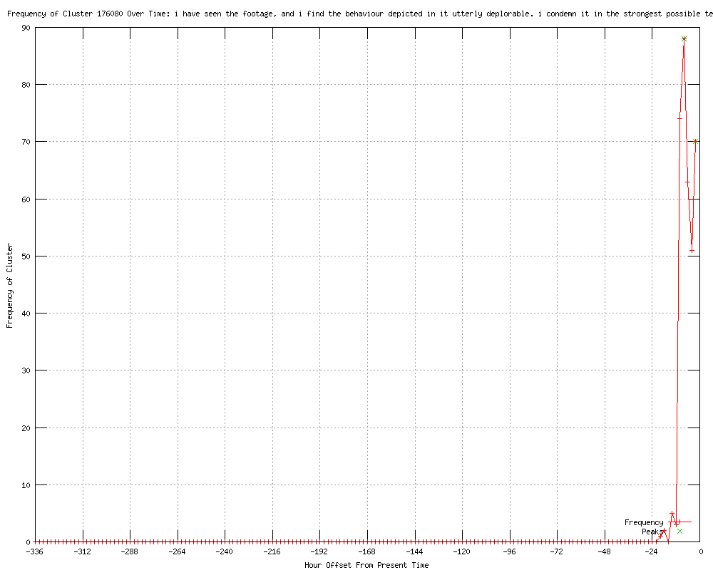 | 22 | i have seen the footage, and i find the behaviour depicted in it utterly deplorable Urls http://guardian.co.uk/world/2012/jan/12/karzai-condemnation-video-urination-corpses http://pukhtunkhwatimes.blogspot.com/2012/01/karzai-leads-wave-of-condemnation-over.html http://patrickhenrypress.info/node/551853 http://obrag.org/?p=52520 http://uk.news.yahoo.com/u-defence-chief-condemns-afghan-corpse-video-150903093.html http://moneycontrol.com/news/wire-news/afghan-abuse-video-reinforces-arab-suspicionus_650289.html http://in.reuters.com/article/2012/01/12/afghanistan-video-arabs-idINDEE80B0OQ20120112?feedType=RSS&feedName=worldNews http://uk.news.yahoo.com/afghan-abuse-video-reinforces-arab-suspicion-u-225826488.html http://Avusa.feedsportal.com/c/33051/f/534658/s/1bc527c6/l/0L0Stimeslive0Bco0Bza0Cworld0C20A120C0A10C130Cus0Eto0Einvestigate0Eurine0Evideo/story01.htm http://uk.news.yahoo.com/afghan-abuse-video-reinforces-arab-suspicion-u-020537412.html http://bbc.co.uk/news/world-asia-16534289 http://news.bbc.co.uk/news/world-asia-16534289 http://hamaraphotos.com/news/international/top-us-official-appalled-by-purported-marine-video.html http://newkerala.com/news/2011/worldnews-143914.html http://indiatalkies.com/2012/01/top-official-appalled-purported-marine-video.html http://thaindian.com/newsportal/uncategorized/top-us-official-appalled-by-purported-marine-video_100590352.html http://daijiworld.com/news/news_disp.asp?n_id=127270 http://feeds.bignewsnetwork.com/?sid=202609223 http://afghanistannews.net/story/202609223 http://sify.com/news/US-Defense-Secretary-calls-Marines-urina-news--mbnk4eafadg.html?ref=content_widget_news http://hindustantimes.com/world-news/Americas/Panetta-appalled-by-purported-Marine-video/Article1-796436.aspx http://hindustantimes.com.feedsportal.com/c/33818/f/608449/s/1bc6dcb9/l/0L0Shindustantimes0N0Cworld0Enews0CAmericas0CPanetta0Eappalled0Eby0Epurported0EMarine0Evideo0CArticle10E7964360Baspx/story01.htm |