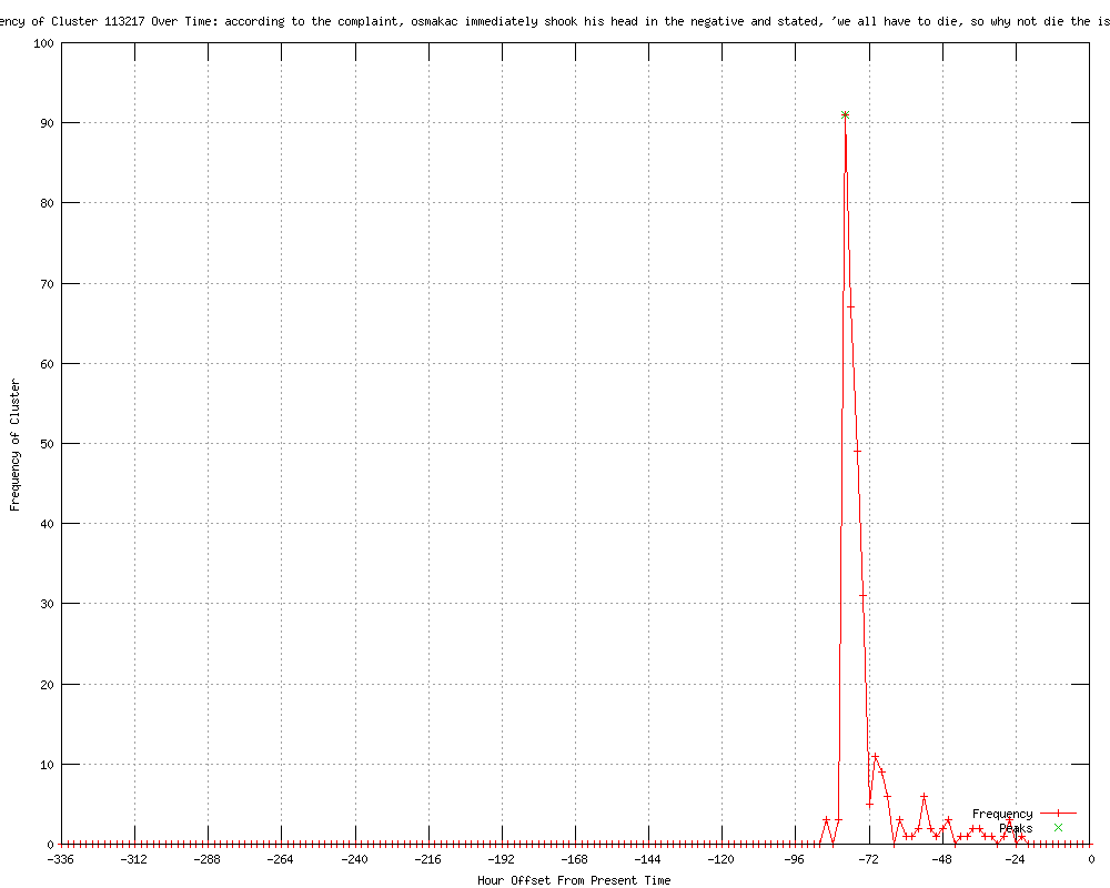 | 85 | according to the complaint, osmakac immediately shook his head in the negative and stated, 'we all have to die, so why not die the islamic way?' Urls http://theolympian.com/2012/01/09/1941677/25-year-old-man-arrested-by-feds.html http://clickorlando.com/news/Officials-Islamic-extremist-planned-to-bomb-Florida-sites/-/1637132/7666684/-/fyskex/-/index.html http://ajc.com/news/nation-world/25-year-old-man-1296323.html?cxtype=rss_news_82111 http://wect.com/story/16477565/25-year-old-man-arrested-by-feds-in-fla-bomb-plot http://usatoday.com/news/nation/story/2012-01-09/florida-bomb-plot/52466292/1?csp=34news http://.wnct.com/news/2012/jan/09/25-year-old-man-arrested-feds-fla-bomb-plot-ar-1795525/ http://kusi.com/story/16477565/25-year-old-man-arrested-by-feds-in-fla-bomb-plot http://wric.com/story/16477565/25-year-old-man-arrested-by-feds-in-fla-bomb-plot http://cbsnews.com/8301-201_162-57355150/alleged-extremist-terror-plot-foiled-in-tampa/ http://wten.com/story/16477565/25-year-old-man-arrested-by-feds-in-fla-bomb-plot http://koamtv.com/story/16477565/25-year-old-man-arrested-by-feds-in-fla-bomb-plot http://ktiv.com/story/16477565/25-year-old-man-arrested-by-feds-in-fla-bomb-plot http://kswt.com/story/16477565/25-year-old-man-arrested-by-feds-in-fla-bomb-plot http://kcbd.com/story/16477565/25-year-old-man-arrested-by-feds-in-fla-bomb-plot http://wandtv.com/story/16477565/25-year-old-man-arrested-by-feds-in-fla-bomb-plot http://wkrn.com/story/16477565/25-year-old-man-arrested-by-feds-in-fla-bomb-plot http://sacbee.com/2012/01/09/4173735/25-year-old-man-arrested-by-feds.html#mi_rss=Wire%20National%20News http://cbs3springfield.com/story/16477565/25-year-old-man-arrested-by-feds-in-fla-bomb-plot http://washingtonpost.com/national/authorities-suspected-islamic-extremist-arrested-in-plan-to-bomb-shoot-up-tampa-area-sites/2012/01/09/gIQANzIdlP_story.html?wprss=rss_national http://wral.com/news/national_world/national/story/10577486/ http://wbay.com/story/16477565/25-year-old-man-arrested-by-feds-in-fla-bomb-plot http://kold.com/story/16477565/25-year-old-man-arrested-by-feds-in-fla-bomb-plot http://whbf.com/story/16477565/25-year-old-man-arrested-by-feds-in-fla-bomb-plot http://news-leader.com/usatoday/article/38300597?odyssey=mod|newswell|text|FRONTPAGE|s http://feeds.cbsnews.com/~r/CBSNewsMain/~3/sEbW_FX5gCM/ http://newsobserver.com/2012/01/09/1764697/25-year-old-man-arrested-by-feds.html http://mysanantonio.com/news/article/25-year-old-man-arrested-by-feds-in-Fla-bomb-plot-2450578.php http://newstimes.com/news/article/25-year-old-man-arrested-by-feds-in-Fla-bomb-plot-2450578.php http://wggb.com/2012/01/09/25-year-old-man-arrested-by-feds-in-fla-bomb-plot/ http://washingtonpost.com/national/authorities-suspected-islamic-extremist-arrested-in-plan-to-bomb-shoot-up-tampa-area-sites/2012/01/09/gIQANzIdlP_story.html?wprss=rss_homepage http://news4jax.com/news/Officials-Islamic-extremist-planned-bombings-in-Fla/-/475880/7666980/-/141m30jz/-/index.html http://actionnewsjax.com:80/content/topstories/story/25-year-old-man-arrested-by-feds-in-Fla-bomb-plot/XPLM9Oo0_kS1f05GEVTQ1A.cspx?rss=1 http://newschannel5.com/story/16478011/25-year-old-man-arrested-by-feds-in-florida-bomb-plot http://cbs8.com/story/16478074/25-year-old-man-arrested-by-feds-in-fla-bomb-plot http://artesianews.com/ap-news/united-states-ap-news/25-year-old-man-arrested-by-feds-in-fla-bomb-plot/ http://timesleader.com/r?19=961&43=182021&44=136949773&32=3991&7=186426&40=http%3A%2F%2Fwww.timesleader.com%2Fnews%2F25-year-old_man_arrested_by_feds_in_Fla__bomb_plot_01-09-2012.html http://heraldtribune.com/article/20120109/wire/120109595 http://wral.com/news/national_world/national/story/10578064/ http://khnl.com/story/16477565/25-year-old-man-arrested-by-feds-in-fla-bomb-plot http://mcall.com/news/local/mc-terrorist-suspect-link-010912,0,1470793.storylink?track=rss http://wlbt.com/story/16477565/25-year-old-man-arrested-by-feds-in-fla-bomb-plot http://wsfa.com/story/16477565/25-year-old-man-arrested-by-feds-in-fla-bomb-plot http://mysanantonio.com/news/article/Feds-charge-ex-Kosovo-man-in-Fla-Islamic-plot-2450578.php http://newstimes.com/news/article/Feds-charge-ex-Kosovo-man-in-Fla-Islamic-plot-2450578.php http://kcautv.com/story/16477565/25-year-old-man-arrested-by-feds-in-fla-bomb-plot http://kxxv.com/story/16477565/25-year-old-man-arrested-by-feds-in-fla-bomb-plot http://ajc.com/news/nation-world/feds-charge-ex-kosovo-1296323.html?cxtype=rss_news_82111 http://news.yahoo.com/feds-charge-ex-kosovo-man-fla-islamic-plot-175436760.html http://stuff.co.nz/world/americas/6233831/Man-charged-over-alleged-Florida-terror-plot http://seattlepi.com/news/article/Feds-charge-ex-Kosovo-man-in-Fla-Islamic-plot-2450578.php http://jihadwatch.org/2012/01/florida-islamic-jihadists-wanted-to-bomb-nightclubs.html http://stuff.co.nz/timaru-herald/world/6233831/Man-charged-over-alleged-Florida-terror-plot http://abclocal.go.com/wpvi/story?section=news/national_world&id=8496147&rss=rss-wpvi-article-8496147 http://mcall.com/news/local/sns-ap-us-bomb-plot-arrest,0,5363979.story?track=rss http://timesleader.com/r?19=961&43=406159&44=136949773&32=3991&7=420054&40=http%3A%2F%2Fwww.timesleader.com%2Fgolackawanna%2Fnews%2F25-year-old_man_arrested_by_feds_in_Fla__bomb_plot_01-09-2012.html http://wpbf.com/news/30167371/detail.html http://wggb.com/2012/01/09/feds-charge-ex-kosovo-man-in-fla-islamic-plot/ http://wrdw.com/home/headlines/Feds_charge_ex-Kosovo_man_in_Fla_Islamic_plot_136958498.html http://powned.tv/nieuws/buitenland/2012/01/bomaanslag_in_tampa_verijdeld.html http://.ljworld.com/news/2012/jan/09/feds-charge-ex-kosovo-man-fla-islamic-plot/ http://wusf.usf.edu/news/2012/01/09/sami_osmakac_florida_terror_suspect_left_video_trail_on_internet http://news.yahoo.com/muslim-man-kosovo-charged-fla-bomb-plot-212431556.html http://militarytimes.com/news/2012/01/ap-florida-man-wanted-to-target-military-in-bomb-plot-010912/ http://wral.com/news/national_world/nation