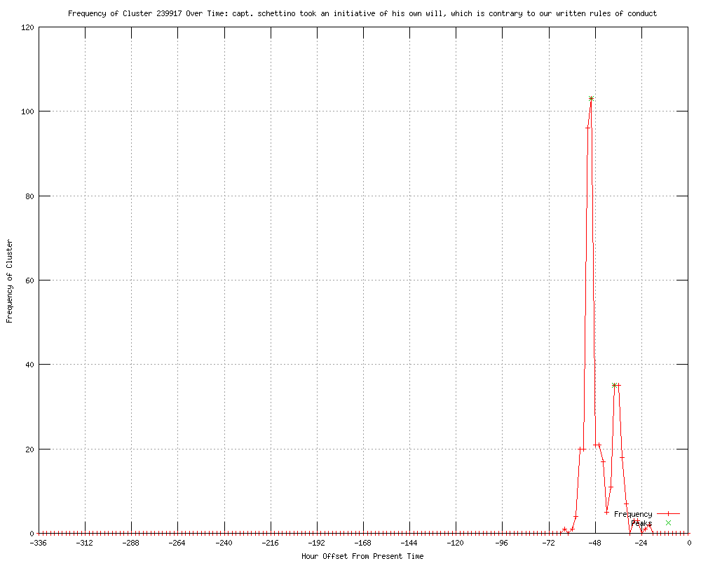 | 356 | capt. schettino took an initiative of his own will which is contrary to our written rules of conduct Urls http://wral.com/news/story/10603908/ http://sltrib.com/sltrib/world/53308135-68/ship-costa-captain-concordia.html.csp http://brownsvilleherald.com/articles/costa-135882-error-grounding.html http://clarionledger.com/article/20120116/NEWS/120116006/1263/rss http://wmctv.com/story/16528267/costa-ceo-blames-captain-error-for-ship-grounding http://mail.com/business/economy/976596-costa-ceo-blames-captain-error-ship-grounding.html http://kstc45.com/article/stories/S2454733.shtml?cat=10905 http://blueridgenow.com/article/20120116/wire/120119845 http://clarionledger.com/article/20120116/NEWS/120116006/1263/RSS http://masslive.com/news/index.ssf/2012/01/costa_ceo_blames_captain_error.html http://kstc45.com/article/stories/s2454733.shtml?cat=11512 http://kstp.com/news/stories/s2454731.shtml?cat=1 http://huffingtonpost.com/2012/01/16/costa-concordia-ceo-capain-crash-disaster-cruise-ship_n_1208791.html http://cbs12.com/articles/ship-4738082-costa-concordia.html http://rdmag.com/News/FeedsAP/2012/01/manufacturing-costa-ceo-blames-captain-error-for-ship-grounding/ http://kstc45.com/article/stories/S2454733.shtml?cat=11512 http://longislandpress.com/2012/01/16/costa-ceo-blames-captain-error-for-ship-grounding/ http://newsday.com/news/world/costa-concordia-execs-blame-jailed-captain-francesco-schettino-call-crew-heroes-1.3454773 http://guardian.co.uk/world/feedarticle/10044056 http://.nbc17.com/news/2012/jan/16/cruise-ship-captain-deviated-course-owner-says-ar-1819788/ http://theglobeandmail.com/news/world/rescue-operations-resume-in-italian-cruise-ship-disaster/article2303080/?utm_medium=Feeds%3A%20RSS%2FAtom&utm_source=Home&utm_content=2303080 http://wkyc.com/news/national/225308/22/Cruise-company-blames-captain-for-Italy-ship-grounding http://odt.co.nz/news/world/194630/ships-owner-blames-captain-error-grounding http://newsday.com/news/world/costa-concordia-exec-calls-crew-heroes-blames-jailed-captain-francesco-schettino-1.3454773 http://ketknbc.com/news/costa-ceo-blames-captain-error-for-ship-grounding http://rgj.com/article/20120116/NEWS12/120116013/1459 http://cbsnews.com/8301-202_162-57359780/search-resumes-on-capsized-cruise-ship/ http://newstimes.com/news/article/Costa-CEO-blames-captain-error-for-ship-grounding-2563579.php http://chicagotribune.com/news/chi-minnesota-couple-among-missing-after-cruise-ship-capsizes-20120116,0,5836800.story?track=rss http://wgnradio.com/news/chi-minnesota-couple-among-missing-after-cruise-ship-capsizes-20120116,0,5693040.story http://winknews.com/National-World/2012-01-16/Costa-CEO-blames-captain-error-for-ship-grounding http://chicagotribune.com/news/local/breaking/chi-minnesota-couple-among-missing-after-cruise-ship-capsizes-20120116,0,2187762.story?track=rss http://wgntv.com/news/local/breaking/chi-minnesota-couple-among-missing-after-cruise-ship-capsizes-20120116,0,4722145.story?track=rss http://delmarvanow.com/article/20120116/NEWS01/120116015/GLOBAL-Costa-CEO-blames-captain-error-ship-grounding?odyssey=tab|topnews|text|frontpage http://feeds.cbsnews.com/~r/CBSNewsMain/~3/ew_SDhatNuo/ http://mydesert.com/article/20120116/NEWS11/201160332/Costa-CEO-blames-captain-error-ship-grounding?odyssey=nav|head http://wgnradio.com/news/local/breaking/chi-minnesota-couple-among-missing-after-cruise-ship-capsizes-20120116,0,2246333.story?track=rss http://wsbt.com/news/chi-minnesota-couple-among-missing-after-cruise-ship-capsizes-20120116,0,7503970.story http://heralddemocrat.com/sections/news/international/costa-ceo-blames-captain-error-grounding-ship.html http://us.rd.yahoo.com/finance/news/rss/story/*http://finance.yahoo.com/news/Environmental-fears-mount-apf-1577917488.html?x=0 http://us.rd.yahoo.com/finance/news/rss/story/*http://finance.yahoo.com/news/Environmental-fears-mount-apf-719943559.html?x=0 http://news.yahoo.com/environmental-fears-mount-italian-cruise-wreck-204808937.html http://breitbart.com/article.php?id=D9SA8PSG0&show_article=1 http://mail.com/news/world/978756-environmental-fears-mount-italian-cruise-wreck.html http://sg.news.yahoo.com/environmental-fears-mount-italian-cruise-wreck-204808937.html http://king5.com/home/Costa-CEO-blames-captain-error-for-ship-grounding-137434678.html http://wrcbtv.com/story/16529825/environmental-fears-mount-in-italian-cruise-wreck http://wrcbtv.com/story/16529824/environmental-fears-mount-in-italian-cruise-wreck http://seattlepi.com/news/article/Environmental-fears-mount-in-Italian-cruise-wreck-2571242.php http://krgv.com/news/environmental-fears-mount-in-italian-cruise-wreck http://uk.news.yahoo.com/environmental-fears-mount-italian-cruise-wreck-204808937.html http://wgnradio.com/news/local/breaking/chi-minnesota-couple-among-missing-after-cruise-ship-capsizes-20120116,0,2246333.story http://newschannel10.com/story/16529824/environmental-fears-mount-in-italian-cruise-wreck http://newschannel10.com/story/16529825/environmental-fears-mount-in-italian-cruise-wreck http://8newsnow.com/story/16529825/environmental-fears-mount-in-italian-cruise-wreck http://8newsnow.com/story/16529824/environmental-fears-mount-in-italian-cruise-wreck http://abclocal.go.com/kgo/story?section=news/national_world&id=8507425&rss=rss-kgo-article-8507425 http://sg.news.yahoo.com/officials-29-people-missing-italian-ship-214109045.html http://cleveland.com/business/index.ssf/2012/01/environmental_fears_mount_in_i.html http://newsday.com/news/world/officials-29-people-missing-from-costa-concordia-1.3454773 http://khnl.com/story/16529824/environmental-fears-mount-in-italian-cruise-wreck http://khnl.com/story/16529825/environmental-fears-mount-in-italian-cruise-wreck http://cbsnews.com/8301-505245_162-57359801/environmental-fears-mount-in-italian-cruise-wreck/ http://cbsnews.com/8301-505245_162-57359800/environmental-fears-mount-in-italian-cruise-wreck/ http://seattlepi.com/news/article/Officials-29-people-missing-from-Italian-ship-2571242