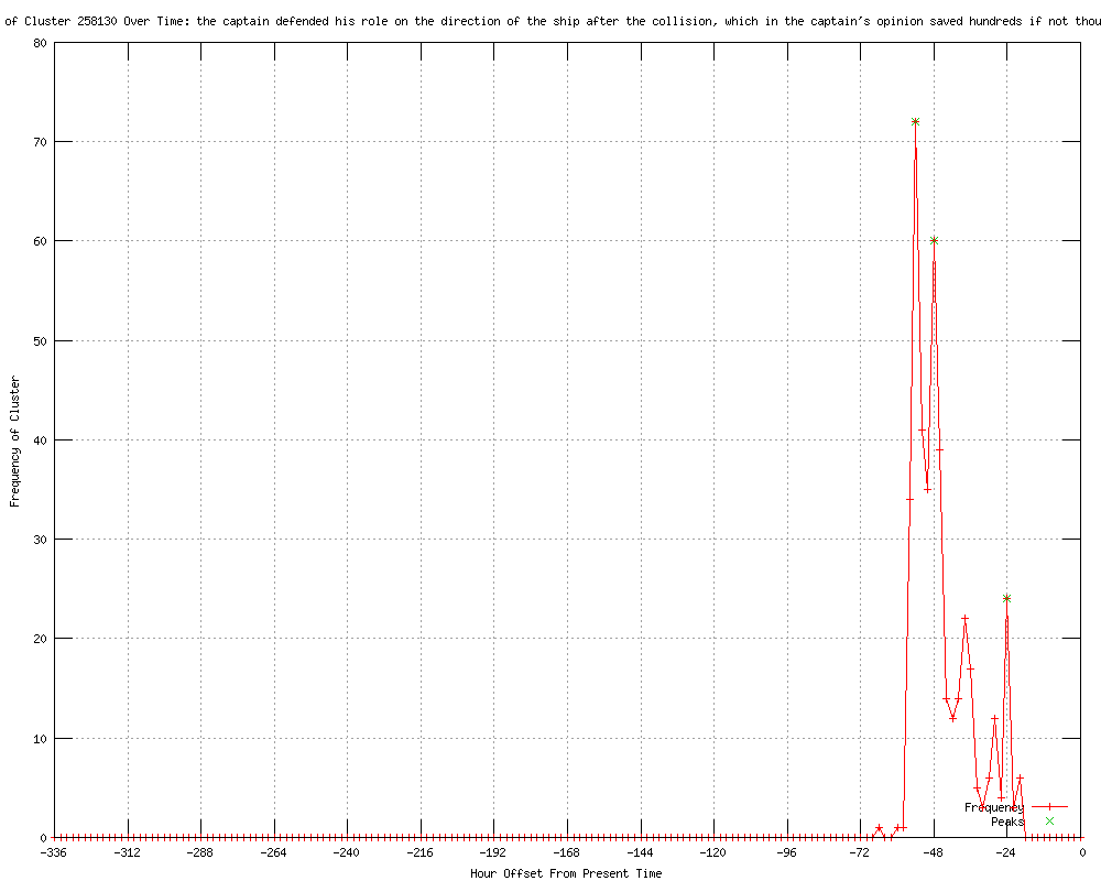 | 50 | the captain defended his role on the direction of the ship after the collision, which in the captain's opinion saved hundreds if not thousands of lives Urls http://telegraph.feedsportal.com/c/32726/f/579330/s/1be63f20/l/0L0Stelegraph0O0Cnews0Cworldnews0Ceurope0Citaly0C90A20A6790CCosta0EConcordia0Ecoast0Eguard0Eto0Ecaptain0EGet0Eback0Eon0Eboard0Ethe0Eship0Bhtml/story01.htm http://telegraph.feedsportal.com/c/32726/f/568301/s/1be69a4f/l/0L0Stelegraph0O0Cnews0Cworldnews0Ceurope0Citaly0C90A20A6790CCosta0EConcordia0Ecoast0Eguard0Eto0Ecaptain0EGet0Eback0Eon0Eboard0Ethe0Eship0Bhtml/story01.htm http://telegraph.co.uk/news/worldnews/europe/italy/9020679/Costa-Concordia-coast-guard-to-captain-Get-back-on-board-the-ship.html http://j.mp/zNmKM1 http://telegraph.feedsportal.com/c/32726/f/564430/s/1be66380/l/0L0Stelegraph0O0Cnews0Cworldnews0Ceurope0Citaly0C90A20A6790CCosta0EConcordia0Ecoast0Eguard0Eto0Ecaptain0EGet0Eback0Eon0Eboard0Ethe0Eship0Bhtml/story01.htm http://rawstory.com/rs/2012/01/17/italy-captain-denies-abandoning-ship-as-toll-rises-to-11/ http://sbs.com.au/news/article/1619647/Five-more-dead-found-on-Costa-Concordia http://archive.japantoday.com/category/world/view/captain-denies-abandoning-cruise-ship-as-death-toll-rises-to-11 http://japantoday.com/category/world/view/captain-denies-abandoning-cruise-ship-as-death-toll-rises-to-11 http://abs-cbnnews.com/global-filipino/world/01/17/12/italy-captain-denies-abandoning-ship-toll-rises-11 http://mysinchew.com/node/69173 http://freemalaysiatoday.com/2012/01/18/italy-cruiser-captain-most-hated-man-in-italy/ http://ndtv.com.feedsportal.com/c/33805/f/606695/s/1be91fe0/l/0L0Sndtv0N0Carticle0Cworld0Citaly0Ecruise0Edisaster0Ecaptain0Edenies0Eabandoning0Eship0Eas0Etoll0Erises0Eto0E110E167997/story01.htm http://moneycontrol.com/news/wire-news/italy-captain-denies-abandoning-ship-as-toll-rises-to-11_652990.html http://uk.news.yahoo.com/italy-captain-denies-abandoning-ship-toll-hits-11-033615165.html http://news.oneindia.in/2012/01/18/italy-captain-denies-abandoning-ship-as-toll-rises.html http://news24.com/World/News/Cruise-captain-denies-abandoning-ship-20120118 http://us.rd.yahoo.com/finance/external/wsj/rss/SIG=12gd1k5pf/*http://online.wsj.com/article/SB10001424052970204468004577166693245696360.html?ru=yahoo&mod=yahoo_hs http://investmentwatchblog.com/a-must-read-rt-wsj-now-11-total-dead-italys-airwaves-filled-w-audio-of-tense-exchange-w-ship-commander/ http://online.wsj.com/article/SB10001424052970204468004577166693245696360.html?mod=rss_most_viewed_day_europe http://online.wsj.com/article/SB10001424052970204468004577166693245696360.html?mod=rss_whats_news_us http://naderinf.blogfa.com/post-210.aspx http://deccanchronicle.com/channels/world/europe/italy-captain-denies-he-abandoned-ship-522 http://abc.net.au/news/2012-01-18/tape-appears-to-undermine-captains-claims/3779514 http://australianetworknews.com/stories/201201/3410238.htm?desktop http://thinkspain.com/news-spain/20643/costa-concordia-death-toll-rises-to-11-24-still-missing http://thenews.com.pk/article-31360-Italy-cruise-ship-death-toll-rises-to-11 http://thenews.com.pk/article-31360-Italy-captain-denies-abandoning-ship-as-toll-rises-to-11-- http://independent.ie/world-news/europe/cruise-disaster-captaini-tripped-and-fell-into-life-boat-2992996.html http://news.smh.com.au/breaking-news-world/italy-cruise-wreck-rescue-halted-20120118-1q53s.html http://news.theage.com.au/breaking-news-world/italy-cruise-wreck-rescue-halted-20120118-1q53s.html http://au.news.yahoo.com/a/-/business/12637901/italy-cruise-wreck-rescue-halted/ http://au.news.yahoo.com/a/-/world/12637901/italy-cruise-wreck-rescue-halted/ http://au.news.yahoo.com/world/a/-/world/12637901/italy-cruise-wreck-rescue-halted/ http://channelnewsasia.com/stories/afp_world/view/1177577/1/.html http://my.news.yahoo.com/italy-captain-denies-abandoning-ship-toll-hits-11-033615583.html http://capitalfm.co.ke/news/2012/01/italy-cruise-rescue-halted-as-ship-shifts/ http://.canada.com/nanaimodailynews/news/story.html?id=6012493 http://ndtv.com.feedsportal.com/c/33805/f/606695/s/1bec044c/l/0L0Sndtv0N0Carticle0Cworld0Citaly0Ecruise0Ewreck0Erescue0Ehalted0Ecaptain0Eunder0Ehouse0Earrest0E168173/story01.htm http://au.news.yahoo.com/a/-/newshome/12637901/italy-cruise-wreck-rescue-halted/ http://au.news.yahoo.com/a/-/world/12647352/italy-cruise-rescue-halted-as-ship-shifts/ http://newsinfo.inquirer.net/130387/italy-cruise-wreck-rescue-halted-captain-under-house-arrest http://france24.com/en/20120117-italy-shipwreck-tuscany-giglio-costa-concordia-accident-cruise-ship-house-arrest http://au.news.yahoo.com/a/-/business/12647352/italy-cruise-wreck-rescue-halted-as-ship-shifts/ http://au.news.yahoo.com/a/-/world/12647352/italy-cruise-wreck-rescue-halted-as-ship-shifts/ http://au.news.yahoo.com/a/-/world/12647352/italy-cruise-wreck-rescue-halted-captain-under-house-arrest/ http://adelaidenow.com.au/news/world/search-halted-on-shifting-ship/story-e6frea8l-1226247934037?from=public_rss http://abc.net.au/news/2012-01-18/cruise-ship-search-suspended-after-shift/3781526 http://trumpettravels.blogspot.com/2012/01/costa-cruise-captain-crash-i-predicted.html http://news4u.co.in/2012/01/italy-captain-denies-abandoning-ship-as-toll-rises-to-11/ |