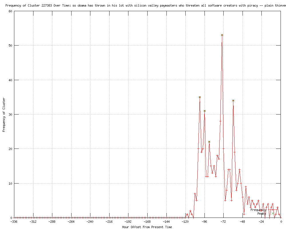 | 20 | obama has thrown in his lot with silicon valley paymasters who threaten all software creators with piracy Urls http://nymag.com/daily/intel/2012/01/rupert-murdochs-sopa-twitter-rant.html http://wik.io/info/US/309557679 http://bits.blogs.nytimes.com/2012/01/16/i-b-m-makes-its-social-computing-strategy-smarter/ http://us.rd.yahoo.com/finance/external/nytimes/rss/SIG=12t96utmc/*http://bits.blogs.nytimes.com/2012/01/16/i-b-m-makes-its-social-computing-strategy-smarter/?partner=yahoofinance http://bits.blogs.nytimes.com/2012/01/16/zappos-says-hackers-may-have-accessed-customer-account-details/ http://feeds.nytimes.com/click.phdo?i=60db22f284093ba7b049874e012c9d56 http://bits.blogs.nytimes.com/2012/01/16/zappos-says-hackers-may-have-accessed-customer-account-details/?partner=rss&emc=rss http://bits.blogs.nytimes.com/2012/01/16/why-iphone-shoppers-buy-more-apps/ http://us.rd.yahoo.com/finance/external/nytimes/rss/SIG=12dhhkf4f/*http://bits.blogs.nytimes.com/2012/01/16/why-iphone-shoppers-buy-more-apps/?partner=yahoofinance http://bits.blogs.nytimes.com/2012/01/16/in-silicon-valley-the-ripe-scent-of-new-money/ http://bits.blogs.nytimes.com/2012/01/16/online-shoppers-are-rooting-for-the-little-guy/ http://bits.blogs.nytimes.com/2012/01/16/pc-makers-embracing-ultrabooks/ http://news.feedzilla.com/en_us/stories/top-news/technology/187312507?client_source=feed&format=rss http://us.rd.yahoo.com/finance/external/nytimes/rss/SIG=12psmgtt1/*http://bits.blogs.nytimes.com/2012/01/16/in-silicon-valley-the-ripe-scent-of-new-money/?partner=yahoofinance http://bits.blogs.nytimes.com/2012/01/16/china-telecom-to-start-mobile-service-in-britain/ http://bits.blogs.nytimes.com/2012/01/16/bills-to-stop-web-piracy-invite-a-protracted-battle/ http://bits.blogs.nytimes.com/2012/01/16/media-decoder-a-tv-debate-on-antipiracy/ http://bits.blogs.nytimes.com/2012/01/16/salesforce-hires-vivek-kundra-and-looks-overseas/ http://us.rd.yahoo.com/finance/external/nytimes/rss/SIG=12qbe3m5t/*http://bits.blogs.nytimes.com/2012/01/16/online-shoppers-are-rooting-for-the-little-guy/?partner=yahoofinance http://bits.blogs.nytimes.com/2012/01/16/todays-scuttlebot-e-books-at-the-library-and-steve-jobs-dolls/ |