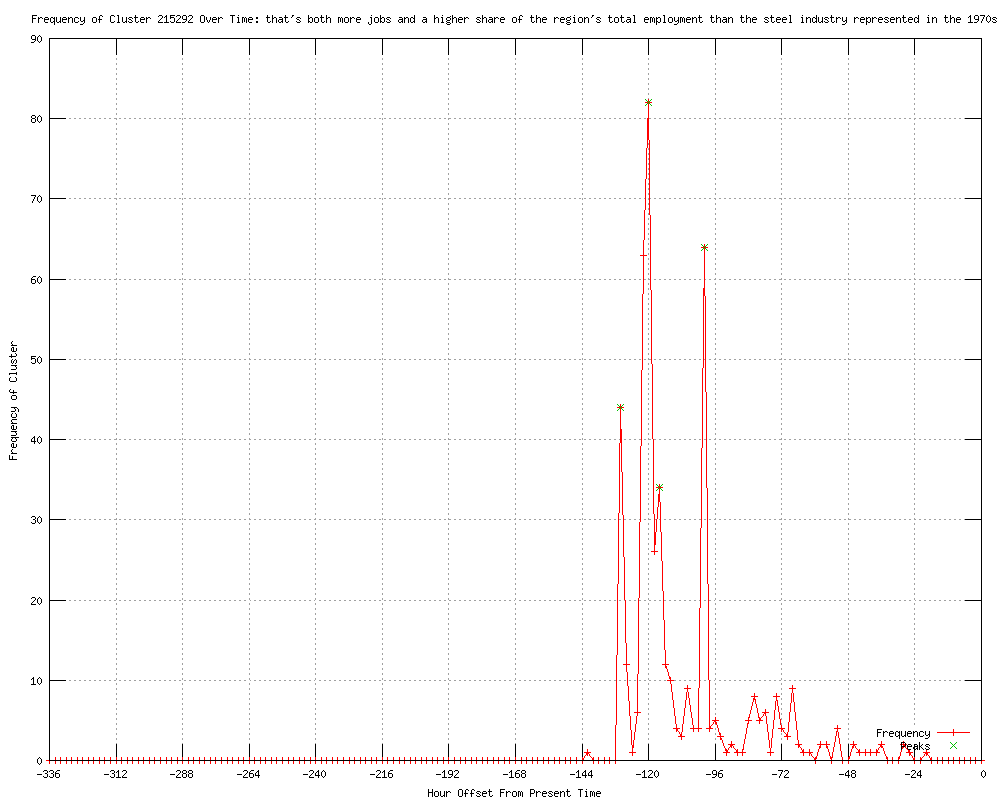 | 34 | that's both more jobs and a higher share of the region's total employment than the steel industry represented in the 1970s Urls http://article.wn.com/view/2012/01/14/No_25_Marquette_beats_Pittsburgh_6257_College_Basketball_Riv/ http://article.wn.com/view/2012/01/14/Pittsburgh_leads_at_halftime/ http://article.wn.com/view/2012/01/15/Golden_Eagles_use_pressure_to_spur_rally_beat_Pitt/ http://article.wn.com/view/2012/01/15/Judge_at_center_of_reassessments_cares_deeply_for_common_man/ http://article.wn.com/view/2012/01/15/Reports_reveal_BNY_Mellon_traders_fearful_of_losing_their_jo/ http://article.wn.com/view/2012/01/15/Real_Estate_Notes/ http://article.wn.com/view/2012/01/15/Nominations_open_for_top_workplaces/ http://article.wn.com/view/2012/01/15/Google_branch_here_making_global_impact/ http://article.wn.com/view/2012/01/15/Dateline_Pittsburgh_for_01_15_12/ http://article.wn.com/view/2012/01/16/PittsburghSyracuse_Preview_College_Basketball_Rivalscom/ http://article.wn.com/view/2012/01/16/Aither_cracker_proposal_gets_boost/ http://article.wn.com/view/2012/01/17/No_1_Syracuse_goes_200_with_7163_win_over_Pitt_College_Baske/ http://article.wn.com/view/2012/01/17/No_1_Syracuse_goes_200_with_7163_win_over_Pitt_0l/ http://article.wn.com/view/2012/01/17/Registry_UPMC_liver_transplant_outcomes_languish/ http://article.wn.com/view/2012/01/17/McArdle_closing_to_last_month_or_more/ http://article.wn.com/view/2012/01/17/Pitt_drops_7th_straight_7163_to_No1_Syracuse_n/ http://article.wn.com/view/2012/01/17/No_1_Syracuse_at_200_after_7163_win_over_Pitt_ju/ http://article.wn.com/view/2012/01/17/Syracuse_defeats_Pitt_for_200_start/ http://article.wn.com/view/2012/01/17/Khem_Birch_blasts_Pitt_former_teammates/ http://article.wn.com/view/2012/01/17/AFLCIO_launches_new_ad_campaign/ http://article.wn.com/view/2012/01/17/Attorney_for_Hempfield_family_alleges_utility_procedures_cau/ http://article.wn.com/view/2012/01/17/McAuley_Ministries_announces_17M_in_donations/ http://article.wn.com/view/2012/01/17/AFLCIO_launches_new_ad_campaign_4/ http://article.wn.com/view/2012/01/18/No_2_Notre_Dame_defeats_Pittsburgh_12044_College_Womens_Bask/ http://article.wn.com/view/2012/01/18/Canes_fall_to_Penguins_in_shootout/ http://article.wn.com/view/2012/01/18/Wyndham_Grand_management_Business_is_picking_up_construction/ http://article.wn.com/view/2012/01/18/No_2_Notre_Dame_defeats_Pittsburgh_12044_on/ http://article.wn.com/view/2012/01/18/Penguins_best_Canes_in_shootout/ http://article.wn.com/view/2012/01/18/PNC_earnings_fall_short_of_analyst_projections/ http://article.wn.com/view/2012/01/18/BNY_Mellon_net_income_down_in_4Q/ http://article.wn.com/view/2012/01/18/Chat_live_with_Dejan_Kovacevic_tomorrow/ http://article.wn.com/view/2012/01/18/Careerimp_acquires_Coro_internship_Website/ http://article.wn.com/view/2012/01/18/Will_Keystone_decision_affect_Marcellus_activism/ http://article.wn.com/view/2012/01/19/Rex_Energy_looking_to_sell_Butler_County_gas_plants/ |