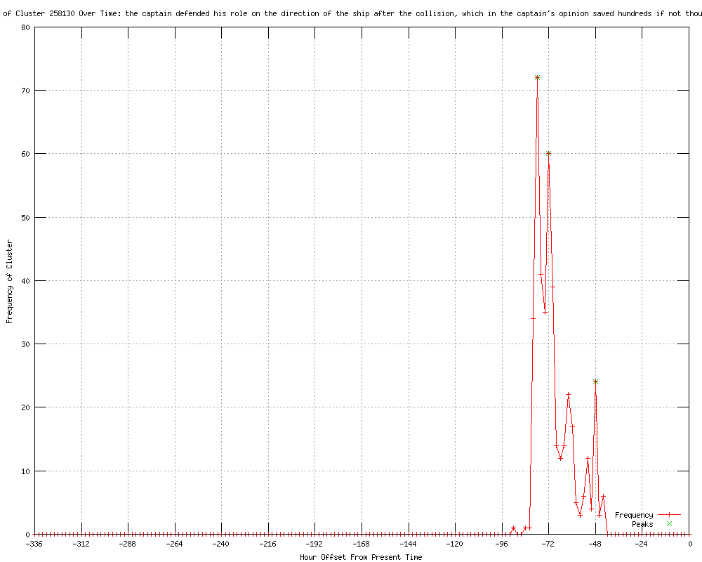 | 50 | the captain defended his role on the direction of the ship after the collision, which in the captain's opinion saved hundreds if not thousands of lives Urls http://telegraph.feedsportal.com/c/32726/f/579330/s/1be63f20/l/0L0Stelegraph0O0Cnews0Cworldnews0Ceurope0Citaly0C90A20A6790CCosta0EConcordia0Ecoast0Eguard0Eto0Ecaptain0EGet0Eback0Eon0Eboard0Ethe0Eship0Bhtml/story01.htm http://telegraph.feedsportal.com/c/32726/f/568301/s/1be69a4f/l/0L0Stelegraph0O0Cnews0Cworldnews0Ceurope0Citaly0C90A20A6790CCosta0EConcordia0Ecoast0Eguard0Eto0Ecaptain0EGet0Eback0Eon0Eboard0Ethe0Eship0Bhtml/story01.htm http://telegraph.co.uk/news/worldnews/europe/italy/9020679/Costa-Concordia-coast-guard-to-captain-Get-back-on-board-the-ship.html http://j.mp/zNmKM1 http://telegraph.feedsportal.com/c/32726/f/564430/s/1be66380/l/0L0Stelegraph0O0Cnews0Cworldnews0Ceurope0Citaly0C90A20A6790CCosta0EConcordia0Ecoast0Eguard0Eto0Ecaptain0EGet0Eback0Eon0Eboard0Ethe0Eship0Bhtml/story01.htm http://rawstory.com/rs/2012/01/17/italy-captain-denies-abandoning-ship-as-toll-rises-to-11/ http://sbs.com.au/news/article/1619647/Five-more-dead-found-on-Costa-Concordia http://archive.japantoday.com/category/world/view/captain-denies-abandoning-cruise-ship-as-death-toll-rises-to-11 http://japantoday.com/category/world/view/captain-denies-abandoning-cruise-ship-as-death-toll-rises-to-11 http://abs-cbnnews.com/global-filipino/world/01/17/12/italy-captain-denies-abandoning-ship-toll-rises-11 http://mysinchew.com/node/69173 http://freemalaysiatoday.com/2012/01/18/italy-cruiser-captain-most-hated-man-in-italy/ http://ndtv.com.feedsportal.com/c/33805/f/606695/s/1be91fe0/l/0L0Sndtv0N0Carticle0Cworld0Citaly0Ecruise0Edisaster0Ecaptain0Edenies0Eabandoning0Eship0Eas0Etoll0Erises0Eto0E110E167997/story01.htm http://moneycontrol.com/news/wire-news/italy-captain-denies-abandoning-ship-as-toll-rises-to-11_652990.html http://uk.news.yahoo.com/italy-captain-denies-abandoning-ship-toll-hits-11-033615165.html http://news.oneindia.in/2012/01/18/italy-captain-denies-abandoning-ship-as-toll-rises.html http://news24.com/World/News/Cruise-captain-denies-abandoning-ship-20120118 http://us.rd.yahoo.com/finance/external/wsj/rss/SIG=12gd1k5pf/*http://online.wsj.com/article/SB10001424052970204468004577166693245696360.html?ru=yahoo&mod=yahoo_hs http://investmentwatchblog.com/a-must-read-rt-wsj-now-11-total-dead-italys-airwaves-filled-w-audio-of-tense-exchange-w-ship-commander/ http://online.wsj.com/article/SB10001424052970204468004577166693245696360.html?mod=rss_most_viewed_day_europe http://online.wsj.com/article/SB10001424052970204468004577166693245696360.html?mod=rss_whats_news_us http://naderinf.blogfa.com/post-210.aspx http://deccanchronicle.com/channels/world/europe/italy-captain-denies-he-abandoned-ship-522 http://abc.net.au/news/2012-01-18/tape-appears-to-undermine-captains-claims/3779514 http://australianetworknews.com/stories/201201/3410238.htm?desktop http://thinkspain.com/news-spain/20643/costa-concordia-death-toll-rises-to-11-24-still-missing http://thenews.com.pk/article-31360-Italy-cruise-ship-death-toll-rises-to-11 http://thenews.com.pk/article-31360-Italy-captain-denies-abandoning-ship-as-toll-rises-to-11-- http://independent.ie/world-news/europe/cruise-disaster-captaini-tripped-and-fell-into-life-boat-2992996.html http://news.smh.com.au/breaking-news-world/italy-cruise-wreck-rescue-halted-20120118-1q53s.html http://news.theage.com.au/breaking-news-world/italy-cruise-wreck-rescue-halted-20120118-1q53s.html http://au.news.yahoo.com/a/-/business/12637901/italy-cruise-wreck-rescue-halted/ http://au.news.yahoo.com/a/-/world/12637901/italy-cruise-wreck-rescue-halted/ http://au.news.yahoo.com/world/a/-/world/12637901/italy-cruise-wreck-rescue-halted/ http://channelnewsasia.com/stories/afp_world/view/1177577/1/.html http://my.news.yahoo.com/italy-captain-denies-abandoning-ship-toll-hits-11-033615583.html http://capitalfm.co.ke/news/2012/01/italy-cruise-rescue-halted-as-ship-shifts/ http://.canada.com/nanaimodailynews/news/story.html?id=6012493 http://ndtv.com.feedsportal.com/c/33805/f/606695/s/1bec044c/l/0L0Sndtv0N0Carticle0Cworld0Citaly0Ecruise0Ewreck0Erescue0Ehalted0Ecaptain0Eunder0Ehouse0Earrest0E168173/story01.htm http://au.news.yahoo.com/a/-/newshome/12637901/italy-cruise-wreck-rescue-halted/ http://au.news.yahoo.com/a/-/world/12647352/italy-cruise-rescue-halted-as-ship-shifts/ http://newsinfo.inquirer.net/130387/italy-cruise-wreck-rescue-halted-captain-under-house-arrest http://france24.com/en/20120117-italy-shipwreck-tuscany-giglio-costa-concordia-accident-cruise-ship-house-arrest http://au.news.yahoo.com/a/-/business/12647352/italy-cruise-wreck-rescue-halted-as-ship-shifts/ http://au.news.yahoo.com/a/-/world/12647352/italy-cruise-wreck-rescue-halted-as-ship-shifts/ http://au.news.yahoo.com/a/-/world/12647352/italy-cruise-wreck-rescue-halted-captain-under-house-arrest/ http://adelaidenow.com.au/news/world/search-halted-on-shifting-ship/story-e6frea8l-1226247934037?from=public_rss http://abc.net.au/news/2012-01-18/cruise-ship-search-suspended-after-shift/3781526 http://trumpettravels.blogspot.com/2012/01/costa-cruise-captain-crash-i-predicted.html http://news4u.co.in/2012/01/italy-captain-denies-abandoning-ship-as-toll-rises-to-11/ |