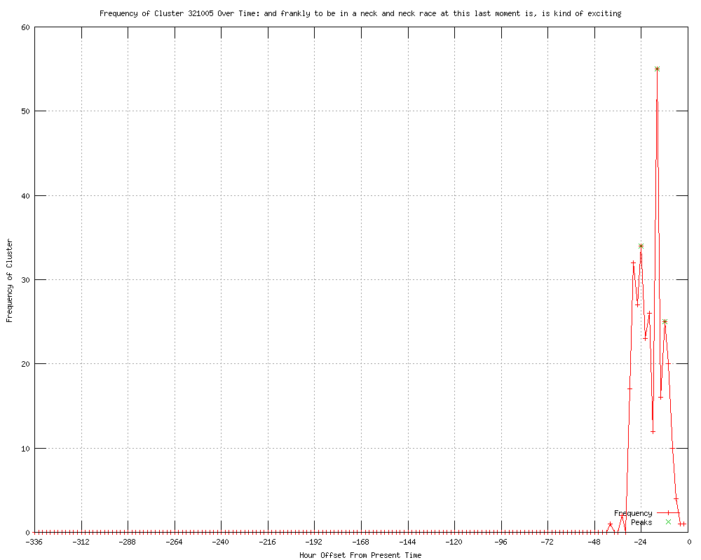 | 38 | frankly, to be in a neck-and-neck race at this last moment is kind of exciting Urls http://feeds.reuters.com/~r/reuters/topNews/~3/tw-1MOngLOw/us-usa-campaign-idUSTRE80I2AT20120121 http://uk.news.yahoo.com/cautious-romney-lowers-expectations-carolina-001043527.html http://us.rd.yahoo.com/dailynews/rss/topstories/*http://news.yahoo.com/s/nm/20120121/pl_nm/us_usa_campaign http://reuters.com/article/2012/01/21/us-usa-campaign-idUSTRE80I2AT20120121 http://news.yahoo.com/cautious-romney-lowers-expectations-carolina-000912561.html http://reuters.com/article/2012/01/21/us-usa-campaign-idUSTRE80I2AT20120121?feedType=RSS&feedName=topNews http://au.news.yahoo.com/a/-/business/12676877/cautious-romney-lowers-expectations-in-s-carolina/ http://au.news.yahoo.com/a/-/world/12676877/cautious-romney-lowers-expectations-in-s-carolina/ http://uk.reuters.com/article/2012/01/21/uk-usa-campaign-idUKTRE80K00A20120121?feedType=RSS&feedName=worldNews http://us.rd.yahoo.com/dailynews/rss/gop/*http://news.yahoo.com/s/nm/20120121/ts_nm/us_usa_campaign http://reuters.com/article/2012/01/21/us-usa-campaign-idUSTRE80I2AT20120121?feedType=RSS&feedName=politicsNews http://reuters.com/article/2012/01/21/us-usa-campaign-idUSTRE80I2AT20120121?feedType=RSS&feedName=topNews&rpc=22&sp=true http://au.news.yahoo.com/world/a/-/world/12676877/cautious-romney-lowers-expectations-in-s-carolina/ http://publicbroadcasting.net/wkyu/news.newsmain/article/0/0/1896250/Top.Stories/Cautious.Romney.lowers.expectations.in.S..Carolina http://thestar.com.my.feedsportal.com/c/33048/f/534559/s/1c01def6/l/0Lthestar0N0Bmy0Cnews0Cstory0Basp0Dfile0F0C20A120C10C210Cworldupdates0C20A120E0A10E21T0A0A10A43Z0I10ITRE80AK0A0AA0IRTROPTT0I0A0IUK0EUSA0ECAMPAIGN0Gsec0FWorldupdates/story01.htm http://feeds.reuters.com/%7Er/Reuters/PoliticsNews/%7E3/lGftWYpT9W8/us-usa-campaign-idUSTRE80I2AT20120121 http://publicbroadcasting.net/wkyu/news.newsmain/article/0/0/1896309/Top.Stories/Cautious.Romney.lowers.expectations.in.South.Carolina http://publicbroadcasting.net/wkyu/news.newsmain/article/0/0/1896310/Top.Stories/Romney.lowers.expectations.in.South.Carolina http://ibtimes.com/articles/285379/20120121/mitt-romney-lowers-expectations-south-carolina-primary.htm http://reuters.com/article/2012/01/21/us-usa-campaign-idUSTRE80I2AT20120121?feedType=RSS&feedName=wtMostRead http://wbay.com/story/16564790/romney-says-its-a-neck-and-neck-race http://mail.com/news/us/991146-romney-expect-to-win-contest.html http://breitbart.com/article.php?id=D9SD3L402&show_article=1 http://eagletribune.com/worldnational/x1296863570/Romney-I-cant-win-them-all http://eagletribune.com/archive/x1296863570/Romney-I-cant-win-them-all#disqus_thread http://ajc.com/news/georgia-politics-elections/gingrich-romney-battle-to-1310082.html?cxtype=rss_georgia-politics-elections http://utsandiego.com/news/2012/jan/20/romney-tries-to-change-the-subject-from-his-taxes/ http://guardian.co.uk/world/feedarticle/10051892 http://mail.com/business/economy/990666-romney-tries-to-change-subject-taxes.html http://news.yahoo.com/romney-tries-change-subject-taxes-222322780.html http://thechurchreport.com/index.cfm?objectID=147631 http://us.rd.yahoo.com/dailynews/rss/politics/*http://news.yahoo.com/s/ap/20120121/ap_on_el_pr/us_romney http://us.rd.yahoo.com/dailynews/rss/gop/*http://news.yahoo.com/s/ap/20120121/ap_on_el_pr/us_romney http://us.rd.yahoo.com/dailynews/rss/business/*http://news.yahoo.com/s/ap/20120121/ap_on_el_pr/us_romney http://finance.blogrange.com/finance-news/romney-tries-to-change-the-subject-from-his-taxes/ http://philly.com/r?19=961&43=894469&44=137800383&32=3796&7=195367&40=http%3A%2F%2Fwww.philly.com%2Fphilly%2Fnews%2Fpolitics%2Fpresidential%2F20120120_ap_romneytriestochangethesubjectfromhistaxes.html http://hotair.com/archives/2012/01/20/south-carolina-gingrich-32-romney-26-paul-11-santorum-9/ http://ipolitics.ca/2012/01/20/gingrich-leads-inlatest-polls-as-key-primary-nears/ |