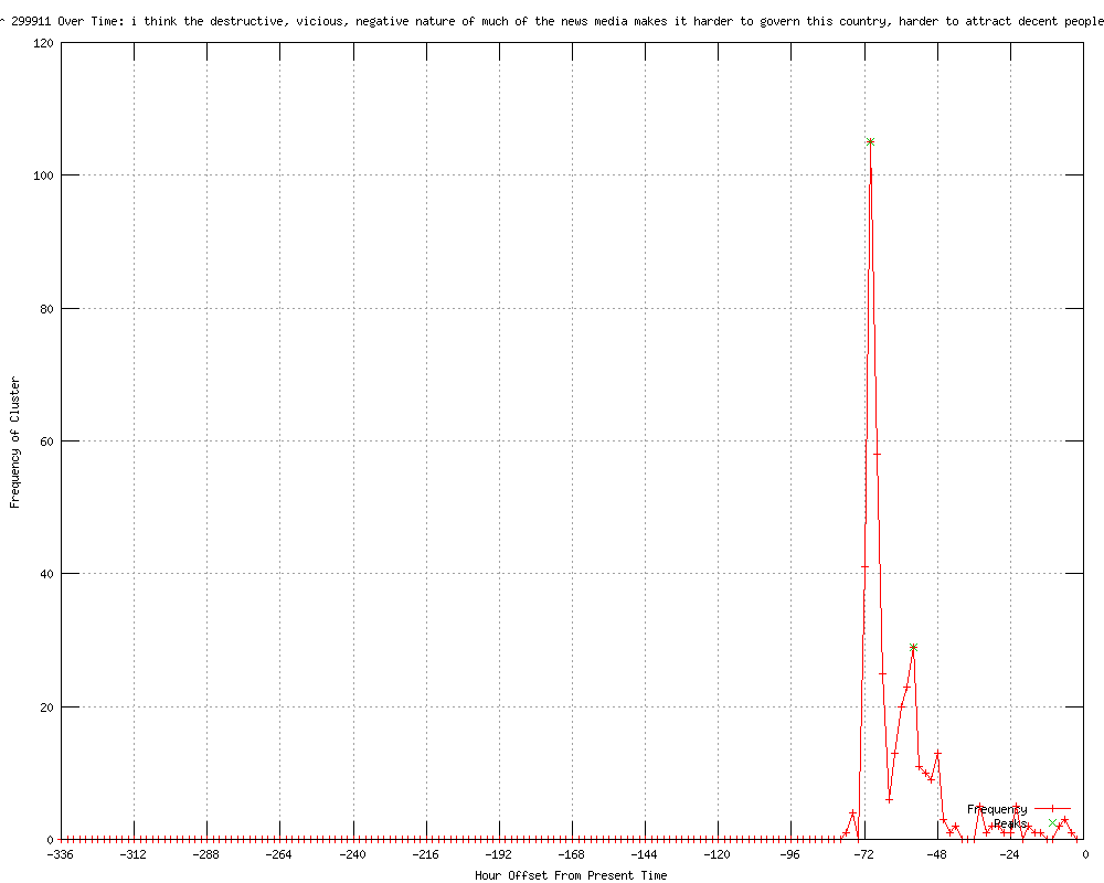 | 12 | the destructive, vicious, negative nature of much of the news media makes it harder to govern this country, harder to attract decent people to run for public office Urls http://news.yahoo.com/blogs/ticket/marianne-gingrich-abc-news-brian-ross-stand-story-045942959.html http://detroitnews.com/article/20120119/POLITICS01/201190497/1361/rss41 http://detroitnews.com/article/20120119/POLITICS01/201190497/1022/rss10 http://bloomberg.com/news/2012-01-20/gingrich-knocks-media-for-open-marriage-questions-at-republican-debate.html http://omaha.com/article/20120119/NEWS/301199741 http://news.yahoo.com/blogs/ticket/questions-gingrich-personal-life-romney-wealth-dominate-debate-031131019.html http://upi.com/Top_News/US/2012/01/20/Gingrich-extols-his-grandiose-ideas/UPI-88811327044600/ http://humanevents.com/article.php?id=48916 http://us.rd.yahoo.com/dailynews/rss/gop/*http://news.yahoo.com/s/ac/20120120/pl_ac/10860311_south_carolina_republican_debate_falls_short_of_delivering_strong_candidate http://indexonline.org/gingrich-extols-his-grandiose-ideas-3/110133?utm_source=rss&utm_medium=rss&utm_campaign=gingrich-extols-his-grandiose-ideas-3 http://indexonline.org/gingrich-extols-his-grandiose-ideas-2/110128?utm_source=rss&utm_medium=rss&utm_campaign=gingrich-extols-his-grandiose-ideas-2 http://marilonge.blogspot.com/2012/01/i-love-fact-that-lot-of-powerful-men.html |
