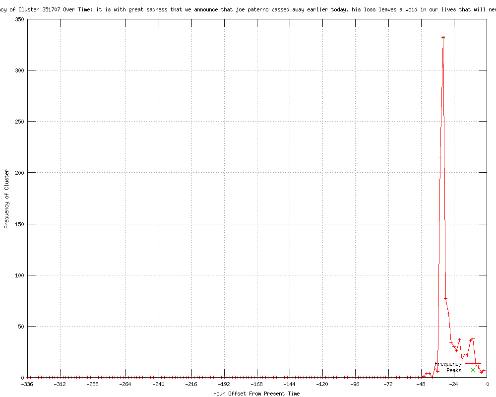 | 120 | it is with great sadness that we announce that joe paterno passed away earlier today Urls http://longislandpress.com/2012/01/22/joe-paterno-dead-at-85/ http://massappealnews.com/2012/01/22/joe-paterno-passes-away/ http://fox2now.com/sports/ktla-joe-paterno-cancer,0,3990964.story http://outsidethebeltway.com/joe-paterno-dead-at-85-family-conirms/ http://wik.io/info/US/310762772 http://outsidethebeltway.com/joe-paterno-dead-at-85-family-conirms/?utm_source=feedburner&utm_medium=feed&utm_campaign=Feed%3A+OTB+%28Outside+The+Beltway+%7C+OTB%29 http://tvguide.com/News/Joe-Paterno-Dies-1042113.aspx?rss=breakingnews http://omg.yahoo.com/news/former-penn-state-coach-joe-paterno-dies-160800988.html http://us.rd.yahoo.com/dailynews/rss/entertainment/*http://us.rd.yahoo.com/dailynews/external/omg_rss/rss_omg_en/news_former_penn_state_coach_joe_paterno_dies160800988/44264077/*http://omg.yahoo.com/news/former-penn-state-coach-joe-paterno-dies-160800988.html http://seattlepi.com/ae/tv/tvguide/article/Former-Penn-State-Coach-Joe-Paterno-Dies-2673789.php http://tvguide.com/News/Joe-Paterno-Dies-1042113.aspx?rss=keywords&partnerid=alltop&profileid=celebs http://wdsu.com/sports/30271370/detail.html http://cnn.com/2012/01/22/us/penn-state-paterno/index.html?hpt=hp_c1 http://cnn.com/2012/01/22/us/pennsylvania-obit-paterno/index.html?hpt=hp_t1 http://kbmt12.com/story/16573271/former-penn-state-coach-paterno-dead-at-85 http://edition.cnn.com/2012/01/22/us/pennsylvania-obit-paterno/index.html?eref=edition http://cnn.com/2012/01/22/us/pennsylvania-obit-paterno/index.html?eref=rss_latest http://rss.cnn.com/~r/rss/cnn_topstories/~3/FtdvBZRTBGY/index.html http://wesh.com/news/30272059/detail.html http://cnn.com/2012/01/22/us/pennsylvania-obit-paterno/index.html?eref=rss_topstories http://foxtricities.com/fox-tri-cities/30272059/detail.html http://ktxs.com/news/30272059/detail.html http://ktvz.com/news/30272059/detail.html http://nbcmontana.com/news/30272059/detail.html http://supertalk1570.com/includes/news_items/5/news_items_more.php?id=2371§ion_id=5 http://wsoctv.com/news/30272059/detail.html http://rss.cnn.com/~r/rss/cnn_latest/~3/ALEhSIxNoa0/index.html http://wxii12.com/news/30272059/detail.html http://thoroughlyandersoncooper.blogspot.com/2012/01/partial-end-of-sex-scandal.html http://wdsu.com/news/30272059/detail.html http://foxtricities.com/news/30272059/detail.html http://cnn.com/2012/01/22/us/pennsylvania-obit-paterno/index.html?hpt=hp_c1 http://cnn.com/2012/01/22/us/pennsylvania-obit-paterno/index.html?eref=rss_us http://edition.cnn.com/2012/01/22/us/pennsylvania-obit-paterno/index.html?eref=edition_us http://wibw.com/home/headlines/137848693.html http://edition.cnn.com/2012/01/22/us/pennsylvania-obit-paterno/index.html?eref=rss_us http://krcrtv.com/news/30272059/detail.html http://ozarksfirst.com/fulltext?nxd_id=590372 http://ksbw.com/news/30272059/detail.html http://wlwt.com/news/30272059/detail.html http://talkdelaware.com/general-news/19057-paterno-dies-age-85-a.html http://ladeeninet.blogspot.com/2012/01/opposing-views-issues-experts-answers_23.html http://theroot.com/joe-paterno-dead-at-85 http://privateinvesigations.blogspot.com/2012/01/joe-paterno-former-penn-state-football.html http://wibw.com/home/headlines/Legendary_Penn_State_Coach_Paterno_Dead_At_85_137848693.html http://wnep.com/wnep-paterno-loses-battle-with-cancerbb-20120122,0,2175393.story http://threedonia.com/archives/48290 http://opposingviews.com/i/sports/ncaa-football/big-ten/penn-state%E2%80%99s-joe-paterno-dead-age-85 http://wibw.com/nationalnews/headlines/Legendary_Penn_State_Coach_Paterno_Dead_At_85_137848693.html http://wlos.com/shared/newsroom/top_stories/videos/wlos_vid_6465.shtml?wap=0 http://wnep.com/wnep-paterno-loses-battle-with-cancerbb-20120122,0,2175393.story?track=rss http://justnews.com/news/Legendary-Penn-State-coach-Paterno-dead-at-85/-/1717324/8483116/-/14cdc4bz/-/index.html http://examiner.com/penn-state-nittany-lions-football-in-philadelphia/joe?cid=PROG-TagPage-HomepageHotTopic2-PaternoDeath http://eurweb.com/2012/01/joe-paterno-dead-85-lung-cancer/ http://wcti12.com/news/30272182/detail.html http://scottedwardphelps.blogspot.com/2012/01/on-maestrosand-mortals.html http://feeds.nydailynews.com/%7Er/nydnrss/news/%7E3/u2dsiyd_o9Q/story01.htm http://wibw.com/sports/headlines/Legendary_Penn_State_Coach_Paterno_Dead_At_85_137848693.html http://thelifeofluxury.com/ex-penn-state-football-coach-joe-paterno-has-died-at-age-85/ http://examiner.com/foster-care-adoption-in-national/did-sandusky-send-paterno-to-his-grave http://bilalaliproductions.com/sports-news/penn-state-coach-paterno-dead-at-85/ http://blackchristiannews.com/news/2012/01/joe-paterno-the-winningest-coach-in-major-college-football-dead-at-85.html http://wjhg.com/home/headlines/Joe_Paterno_Dies_Sunday_Morning__137848828.html http://ushotbuzz.blogspot.com/2012/01/joe-paterno-1926-2012-msnbccom.html http://au.news.yahoo.com/a/-/world/12688853/legendary-us-college-football-coach-joe-paterno-dies/ http://au.news.yahoo.com/a/-/business/12688853/legendary-us-college-football-coach-joe-paterno-dies/ http://kwtx.com/home/headlines/Ex-Penn_State_coach_Joe_Paterno_dead_at_85_137849373.html http://kwtx.com/_254sports/headlines/Ex-Penn_State_coach_Joe_Paterno_dead_at_85_137849373.html http://kwtx.com/nationalnews/headlines/Ex-Penn_State_coach_Joe_Paterno_dead_at_85_137849373.html http://au.news.yahoo.com/world/a/-/world/12688853/legendary-us-college-football-coach-joe-paterno-dies/ http://france24.com/en/20120122-legendary-us-college-football-coach-joe-paterno-dies http://france24.com/en/20120122-legendary-us-college-football-coach-joe-paterno-dies-0 http://blog.chron.com/jeromesolomon/2012/01/joe-paterno-the-passing-of-a-legend/ http://mercurynews.com/college-sports/ci_19794903?source=rss http://channelnewsasia.com/stories/afp_sports/view/1178423/1/.html http://mouthtoears.blogspot.com/2012/01/rip-joe-paterno.html http://atrl.net/forums/showthread.php?t=17797