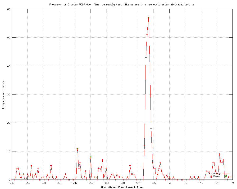 | 18 | we really feel like we are in a new world after al-shabab left us Urls http://guardian.co.uk/world/feedarticle/10020868 http://fortmilltimes.com/2012/01/02/1839693/somali-militants-gather-recruit.html http://washingtonpost.com/world/africa/somali-militants-gather-recruit-outside-town-taken-by-ethiopian-forces-calm-inside-town/2012/01/02/gIQAWqzsVP_story.html?wprss=rss_world http://wandtv.com/story/16428095/somali-militants-gather-recruit-at-border-town http://heraldonline.com/2012/01/02/3632052/somali-militants-gather-recruit.html http://khnl.com/story/16428095/somali-militants-gather-recruit-at-border-town http://startribune.com/world/136523753.html http://us.rd.yahoo.com/dailynews/rss/world/*http://news.yahoo.com/s/ap/20120102/ap_on_re_af/af_somalia_ethiopia http://feeds.washingtonpost.com/click.phdo?i=1bd80bbca3f186c91a4305b5faca2df1 http://washingtonpost.com/world/africa/somali-militants-gather-recruit-outside-town-taken-by-ethiopian-forces-calm-inside-town/2012/01/02/gIQAWqzsVP_story.html?wprss=rss_africa http://cbsnews.com/8301-501710_162-57350855/somali-militants-gather-recruit-at-border-town/ http://seattlepi.com/news/article/Somali-militants-gather-recruit-at-border-town-2436589.php http://abcnews.go.com/International/wireStory/somali-militants-gather-recruit-border-town-15272428 http://lakewyliepilot.com/2012/01/02/1379302/somali-militants-gather-recruit.html http://ctv.ca/CTVNews/World/20120102/somali-militants-recruiting-outside-beledweyne-120102/ http://feeds.cbsnews.com/%7Er/CBSNewsTravelGuru/%7E3/v7kKXgrhAgU/ http://hornofafrica-abdikarim.blogspot.com/2012/01/somali-militants-gather-recruit-outside.html http://washingtontimes.com/news/2012/jan/2/somali-militants-gather-recruit-at-border-town/?utm_source=RSS_Feed&utm_medium=RSS |