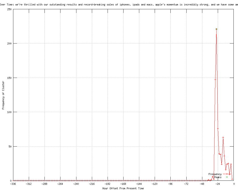 | 327 | we're thrilled with our outstanding results and record-breaking sales of iphones, ipads and macs Urls http://mercurynews.com/business/ci_19809693?source=rss http://businessinsider.com/live-apple-earnings-2012-1?utm_source=feedburner&utm_medium=feed&utm_campaign=Feed%3A+businessinsider+%28Business+Insider%29 http://businessinsider.com/live-apple-earnings-2012-1?utm_source=feedburner&utm_medium=feed&utm_campaign=Feed%3A+typepad%2Falleyinsider%2Fsilicon_alley_insider+%28Silicon+Alley+Insider%29 http://us.rd.yahoo.com/finance/news/rss/story/*http://finance.yahoo.com/news/Apple-Delivers-Blowout-siliconalley-917229125.html?x=0 http://arnnet.com.au/index.php?id=317256121&rid=-100 http://edibleapple.com/2012/01/24/iphone-sales-top-37-million-as-apple-records-record-breaking-quarter/ http://streetinsider.com/Press+Releases/Apple+Reports+First+Quarter+Results/7104845.html http://us.rd.yahoo.com/finance/news/rss/story/*http://finance.yahoo.com/news/Apple-Reports-First-Quarter-bw-43880146.html?x=0 http://ulitzer.com/node/2140314 http://engadget.com/2012/01/24/apple-announces-q1-earnings/ http://4-traders.com/APPLE-INC-4849/news/APPLE-INC-Apple-Reports-First-Quarter-Results-13984023/ http://bgr.com/2012/01/24/apple-reports-record-q1-blowout-biggest-quarter-ever-with-37-million-iphone-15-4-million-ipad-sales/ http://virtualizationconference.com/node/2140314 http://webpronews.com/apple-q1-earnings-released-fy-12-2012-01 http://latestelectronics-dennis.com/?p=39772 http://latestelectronics-dennis.com/?p=39774 http://sys-con.com/node/2140314 http://ushour.com/apple-announces-q1-earnings-sets-quarterly-record-with-46-33-billion-in-revenue http://unleashthephones.com/2012/01/25/apple-reports-a-massive-46-33b-in-revenue-in-q1-2012-results/ http://businesswire.com/news/home/20120124006782/en/Apple-Reports-Quarter-Results http://rdi-board.com/showthread.php?t=133473&goto=newpost http://enterprisepost.com/mobile/smartphones/apple-reports-record-q1-blowout-biggest-quarter-ever-with-37-million-iphones-15-4-million-ipad-sold.html http://feeds.engadget.com/%7Er/weblogsinc/engadgetmobile/%7E3/wl36vOONHkQ/ http://bgr.com/2012/01/24/apple-reports-record-q1-blowout-biggest-quarter-ever-with-37-million-iphone-15-4-million-ipad-sales/?utm_source=feedburner&utm_medium=feed&utm_campaign=Feed%3A+TheBoyGeniusReport+%28BGR+%7C+Boy+Genius+Report%29 http://coolsmartphone.com/2012/01/24/apple-announce-massive-quarter-earnings/ http://phonedog.com/2012/01/24/apple-posts-q1-2012-earnings-reports-46-33-billion-in-revenue-and-37-04-million-iphones-sold/ http://technology.automated.it/2012/01/24/apple-reports-record-q1-blowout-biggest-quarter-ever-with-37-million-iphones-15-4-million-ipad-sold/ http://apple.com/pr/library/2012/01/24Apple-Reports-First-Quarter-Results.html?sr=hotnews.rss http://wik.io/info/US/311196242 http://forums.ocworkbench.com/showthread.php?t=126385 http://theunlockr.com/2012/01/24/apple-unveils-q1-earnings-with-record-breaking-46-33-billion-in-revenue/?utm_source=rss&utm_medium=rss&utm_campaign=apple-unveils-q1-earnings-with-record-breaking-46-33-billion-in-revenue http://indiainfoline.com/Markets/News/Apple-reports-record-revenue-earnings-for-Q1/5340621440 http://techblogger.org/2012/01/24/apple-reports-record-q1-blowout-biggest-quarter-ever-with-37-million-iphone-15-4-million-ipad-sales/ http://techblogger.org/2012/01/24/apple-reports-record-q1-blowout-biggest-quarter-ever-with-37-million-iphones-15-4-million-ipad-sold/ http://apple-news.net/apple-reports-first-quarter-results-7/ http://newsone.com/nation/nomul6/apple-1-billion-dollar-week-profit/ http://cultofmac.com/142303/apple-announces-incredible-record-breaking-first-quarter-2012-financial-results/ http://thenextweb.com/apple/2012/01/24/apple-q1-2012-46-33b-revenue-13-06b-profit-at-13-87eps/ http://cnbc.com//id/46103211 http://allthingsd.com/20120124/apples-record-iphone-and-ipad-sales-beat-expectations/ http://wallstcheatsheet.com/earnings-trading-markets/apple-inc-earnings-higher-than-expected-net-income.html/ http://intomobile.com/2012/01/24/apples-q1-2012-earnings-exceed-expectations/ http://macstories.net/news/apple-q1-2012-results-46-33-billion-revenue-37-04-million-iphones-15-43-million-ipads-sold/ http://macrumors.com/2012/01/24/apple-reports-best-quarter-ever-in-q1-2012-13-06-billion-profit-on-46-33-billion-in-revenue/ http://latestelectronics-dennis.com/?p=39775 http://apple.com/pr/library/2012/01/24Apple-Reports-First-Quarter-Results.html http://iphoneblog.de/2012/01/24/apples-geschaftszahlen-fur-q12012-37-04-millionen-iphones-und-15-43-millionen-ipads/ http://betanews.com/2012/01/24/apple-q1-2012-by-the-numbers-13b-profit-37m-iphones-sold/ http://micheldeguilhermier.typepad.com/mdegblog/2012/01/apple-q4-earnings-exceptionnels-.html http://iphoneblog.de/2012/01/24/apples-geschaftszahlen-fur-q12012-37-04-millionen-iphones-und-15-43-millionen-ipads http://tipb.com.feedsportal.com/c/33998/f/616881/s/1c1a6d61/l/0L0Simore0N0C20A120C0A10C240Capple0Eq10E20A120Eresults0E46330Ebillion0Erevenue0E370A40Emillion0Eiphones0E15430Emillion0Eipads0E1540Emillion0Eipods0C/story01.htm http://mashable.com/2012/01/24/apple-blows-out-q1-earnings-sells-37m-iphones-15-4m-ipads/ http://padgadget.com/2012/01/24/apple-sets-record-revenue-ipad-sales-grow-111-to-15-43-million-units/ http://go.theregister.com/feed/www.theregister.co.uk/2012/01/24/apple_q1_2012/ http://pcmag.com/article2/0,2817,2399299,00.asp?kc=PCRSS03069TX1K0001121 http://macnn.com/articles/12/01/24/compan.achieves.record.iphone.ipad.mac.sales/ http://uk.news.yahoo.com/apple-posts-record-13-06-bn-quarterly-net-214518774.html http://huffingtonpost.com/2012/01/24/apple-q1-2012_n_1229156.html http://ilounge.com/index.php/news/comments/apple-q1-2012-37m-iphones-15.4m-ipads-15.4m-ipods/ http://us.rd.yahoo.com/finance/external/cnbc/rss/SIG=1110om332/*http://www.cnbc.com/id/46103211?__source=yahoo|headline|quote|text|&par=yahoo http://us.rd.yahoo.com/finance/external/allthingsd/rss/SIG=11opb5pq8/*http:/