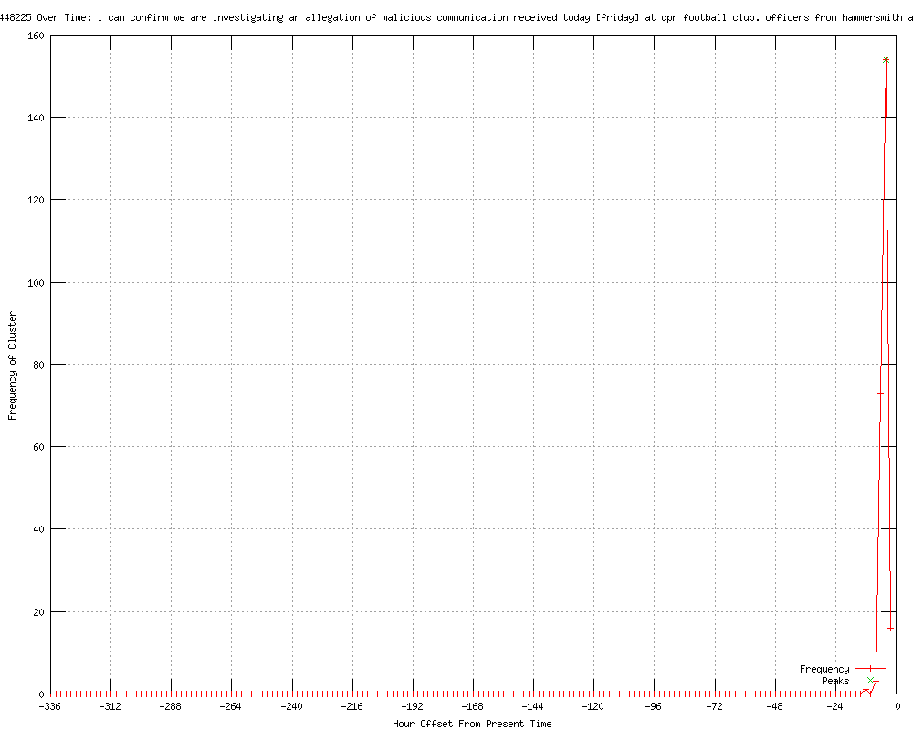 | 50 | i can confirm we are investigating an allegation of malicious communication received today [friday] at qpr football club. officers from hammersmith and fulham are investigating Urls http://expressandstar.com/uk/uk-sport/2012/01/27/qpr-get-malicious-communication/ http://uk.express.feedsportal.com/c/33338/f/565863/s/1c322716/l/0L0Sdailyexpress0O0Cposts0Cview0C29840A60CQPR0Eget0Emalicious0Ecommunication0E0C/story01.htm http://stamfordmercury.co.uk/sport/national-sport/qpr_get_malicious_communication_1_3464668 http://bournelocal.co.uk/sport/national-sport/qpr_get_malicious_communication_1_3464668 http://uk.express.feedsportal.com/c/33338/f/565867/s/1c32284d/l/0L0Sdailyexpress0O0Cposts0Cview0C29840A60CQPR0Eget0Emalicious0Ecommunication0E0C/story01.htm http://football.co.uk/queens_park_rangers/qpr_get__malicious_communication__rss2052700.shtml http://stamfordmercury.co.uk/news/qpr_get_malicious_communication_1_3464668 http://uk.express.feedsportal.com/c/33338/f/565864/s/1c32302e/l/0L0Sdailyexpress0O0Cposts0Cview0C29840A60CQPR0Eget0Emalicious0Ecommunication0E0C/story01.htm http://thisisguernsey.com/sport/uk-sport/2012/01/27/qpr-get-malicious-communication/ http://buckinghamshireadvertiser.co.uk/south-buckinghamshire-sport/world-uk-sport/2012/01/27/qpr-get-malicious-communication-82398-30214339/ http://walesonline.co.uk/sports/live-sport-reports/2012/01/27/qpr-get-malicious-communication-91466-30214329/ http://givemefootball.com/premier-league/qpr-get-malicious-communication http://icwolverhampton.icnetwork.co.uk/sport/natnews/tm_headline=qpr-get-malicious-communication%26method=full%26objectid=30214324%26siteid=94950-name_page.html http://granthamjournal.co.uk/news/qpr_get_malicious_communication_1_3464668 http://people.co.uk/sport/sports-news/2012/01/27/qpr-get-malicious-communication-102039-23723495/ http://icsolihull.icnetwork.co.uk/sport/national/tm_headline=qpr-get-malicious-communication%26method=full%26objectid=30214330%26siteid=91411-name_page.html http://iclanarkshire.icnetwork.co.uk/sport/nationalsport/tm_headline=qpr-get-malicious-communication%26method=full%26objectid=30214360%26siteid=50144-name_page.html http://icliverpool.icnetwork.co.uk/0200sport/roundup/tm_headline=qpr-get-malicious-communication%26method=full%26objectid=30214364%26siteid=50061-name_page.html http://journallive.co.uk/pa-feeds/newcastle-sports-news/2012/01/27/qpr-get-malicious-communication-84229-30214337/ http://icscotland.icnetwork.co.uk/sport/nsport/tm_headline=qpr-get-malicious-communication%26method=full%26objectid=30214362%26siteid=50141-name_page.html http://examiner.co.uk/news/national-sport/2012/01/27/qpr-get-malicious-communication-86081-30214335/ http://iclichfield.icnetwork.co.uk/sport/natsport//tm_headline=qpr-get-malicious-communication%26method=full%26objectid=30214311%26siteid=108911-name_page.html http://ictamworth.icnetwork.co.uk/sport/natsport/tm_headline=qpr-get-malicious-communication%26method=full%26objectid=30214333%26siteid=86764-name_page.html http://icbirmingham.icnetwork.co.uk/0200sport/0100news/tm_headline=qpr-get-malicious-communication%26method=full%26objectid=30214368%26siteid=50002-name_page.html http://thisisjersey.com/sport/uk-sport/2012/01/27/qpr-get-malicious-communication/ http://ichuddersfield.icnetwork.co.uk/examiner/sport/national/tm_headline=qpr-get-malicious-communication%26method=full%26objectid=30214365%26siteid=50060-name_page.html http://coventrytelegraph.net/coventry-warwickshire-sport/national-sport/2012/01/27/qpr-get-malicious-communication-92746-30214327/ http://hounslowchronicle.co.uk/west-london-sport/world-uk-sport/2012/01/27/qpr-get-malicious-communication-109642-30214310/ http://sundaymercury.net/midlands-sport/national-sport/2012/01/27/qpr-get-malicious-communication-66331-30214348/ http://icsuttoncoldfield.icnetwork.co.uk/sport/natsport//tm_headline=qpr-get-malicious-communication%26method=full%26objectid=30214358%26siteid=52630-name_page.html http://chroniclelive.co.uk/pa-feeds/pa-sport/2012/01/27/qpr-get-malicious-communication-84229-30214337/ http://liverpoolecho.co.uk/sport/national-sport/2012/01/27/qpr-get-malicious-communication-100252-30214319/ http://buckinghamshireexaminer.co.uk/south-bucks-sport/world-uk-sport/2012/01/27/qpr-get-malicious-communication-114018-30214307/ http://icnewcastle.icnetwork.co.uk/0200sport/sportlatest/tm_headline=qpr-get-malicious-communication%26method=full%26objectid=30214363%26siteid=50081-name_page.html http://ellesmereportpioneer.co.uk/ellesmere-port-sport/national-sport/2012/01/27/qpr-get-malicious-communication-55940-30214354/ http://icwalsall.icnetwork.co.uk/sport/natsport/tm_headline=qpr-get-malicious-communication%26method=full%26objectid=30214352%26siteid=60240-name_page.html http://dailypost.co.uk/sport-news/breaking_news/2012/01/27/qpr-get-malicious-communication-55578-30214355/ http://liverpooldailypost.co.uk/sport/national-sport/2012/01/27/qpr-get-malicious-communication-99623-30214320/ http://wirralnews.co.uk/wirral-news/uk-world-news/national-sport/2012/01/27/qpr-get-malicious-communication-80491-30214343/ http://iccoventry.icnetwork.co.uk/0200sport/0100news/tm_headline=qpr-get-malicious-communication%26method=full%26objectid=30214367%26siteid=50003-name_page.html http://uxbridgegazette.co.uk/west-london-sport/world-uk-sport/2012/01/27/qpr-get-malicious-communication-113046-30214309/ http://southportvisiter.co.uk/southport-news/uk-world-news/national-sport/2012/01/27/qpr-get-malicious-communication-101022-30214318/ http://iccheshireonline.icnetwork.co.uk/0200sport/0100sportnews/tm_headline=qpr-get-malicious-communication%26method=full%26objectid=30214366%26siteid=50020-name_page.html http://sundaysun.co.uk/sport/latest-sport-news/2012/01/27/qpr-get-malicious-communication-84229-30214337/ http://birminghampost.net/midlands-birmingham-sport/national-sport/2012/01/27/qpr-get-malicious-communication-65233-30214349/ http://birminghammail.net/birmingham-sport/national/2012/01/27/qpr-get-malicious-communi