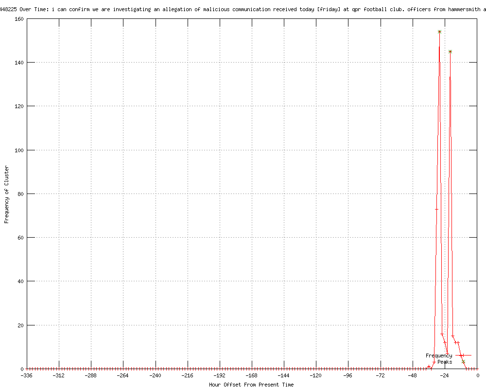 | 50 | i can confirm we are investigating an allegation of malicious communication received today [friday] at qpr football club. officers from hammersmith and fulham are investigating Urls http://expressandstar.com/uk/uk-sport/2012/01/27/qpr-get-malicious-communication/ http://uk.express.feedsportal.com/c/33338/f/565863/s/1c322716/l/0L0Sdailyexpress0O0Cposts0Cview0C29840A60CQPR0Eget0Emalicious0Ecommunication0E0C/story01.htm http://stamfordmercury.co.uk/sport/national-sport/qpr_get_malicious_communication_1_3464668 http://bournelocal.co.uk/sport/national-sport/qpr_get_malicious_communication_1_3464668 http://uk.express.feedsportal.com/c/33338/f/565867/s/1c32284d/l/0L0Sdailyexpress0O0Cposts0Cview0C29840A60CQPR0Eget0Emalicious0Ecommunication0E0C/story01.htm http://football.co.uk/queens_park_rangers/qpr_get__malicious_communication__rss2052700.shtml http://stamfordmercury.co.uk/news/qpr_get_malicious_communication_1_3464668 http://uk.express.feedsportal.com/c/33338/f/565864/s/1c32302e/l/0L0Sdailyexpress0O0Cposts0Cview0C29840A60CQPR0Eget0Emalicious0Ecommunication0E0C/story01.htm http://thisisguernsey.com/sport/uk-sport/2012/01/27/qpr-get-malicious-communication/ http://buckinghamshireadvertiser.co.uk/south-buckinghamshire-sport/world-uk-sport/2012/01/27/qpr-get-malicious-communication-82398-30214339/ http://walesonline.co.uk/sports/live-sport-reports/2012/01/27/qpr-get-malicious-communication-91466-30214329/ http://givemefootball.com/premier-league/qpr-get-malicious-communication http://icwolverhampton.icnetwork.co.uk/sport/natnews/tm_headline=qpr-get-malicious-communication%26method=full%26objectid=30214324%26siteid=94950-name_page.html http://granthamjournal.co.uk/news/qpr_get_malicious_communication_1_3464668 http://people.co.uk/sport/sports-news/2012/01/27/qpr-get-malicious-communication-102039-23723495/ http://icsolihull.icnetwork.co.uk/sport/national/tm_headline=qpr-get-malicious-communication%26method=full%26objectid=30214330%26siteid=91411-name_page.html http://iclanarkshire.icnetwork.co.uk/sport/nationalsport/tm_headline=qpr-get-malicious-communication%26method=full%26objectid=30214360%26siteid=50144-name_page.html http://icliverpool.icnetwork.co.uk/0200sport/roundup/tm_headline=qpr-get-malicious-communication%26method=full%26objectid=30214364%26siteid=50061-name_page.html http://journallive.co.uk/pa-feeds/newcastle-sports-news/2012/01/27/qpr-get-malicious-communication-84229-30214337/ http://icscotland.icnetwork.co.uk/sport/nsport/tm_headline=qpr-get-malicious-communication%26method=full%26objectid=30214362%26siteid=50141-name_page.html http://examiner.co.uk/news/national-sport/2012/01/27/qpr-get-malicious-communication-86081-30214335/ http://iclichfield.icnetwork.co.uk/sport/natsport//tm_headline=qpr-get-malicious-communication%26method=full%26objectid=30214311%26siteid=108911-name_page.html http://ictamworth.icnetwork.co.uk/sport/natsport/tm_headline=qpr-get-malicious-communication%26method=full%26objectid=30214333%26siteid=86764-name_page.html http://icbirmingham.icnetwork.co.uk/0200sport/0100news/tm_headline=qpr-get-malicious-communication%26method=full%26objectid=30214368%26siteid=50002-name_page.html http://thisisjersey.com/sport/uk-sport/2012/01/27/qpr-get-malicious-communication/ http://ichuddersfield.icnetwork.co.uk/examiner/sport/national/tm_headline=qpr-get-malicious-communication%26method=full%26objectid=30214365%26siteid=50060-name_page.html http://coventrytelegraph.net/coventry-warwickshire-sport/national-sport/2012/01/27/qpr-get-malicious-communication-92746-30214327/ http://hounslowchronicle.co.uk/west-london-sport/world-uk-sport/2012/01/27/qpr-get-malicious-communication-109642-30214310/ http://sundaymercury.net/midlands-sport/national-sport/2012/01/27/qpr-get-malicious-communication-66331-30214348/ http://icsuttoncoldfield.icnetwork.co.uk/sport/natsport//tm_headline=qpr-get-malicious-communication%26method=full%26objectid=30214358%26siteid=52630-name_page.html http://chroniclelive.co.uk/pa-feeds/pa-sport/2012/01/27/qpr-get-malicious-communication-84229-30214337/ http://liverpoolecho.co.uk/sport/national-sport/2012/01/27/qpr-get-malicious-communication-100252-30214319/ http://buckinghamshireexaminer.co.uk/south-bucks-sport/world-uk-sport/2012/01/27/qpr-get-malicious-communication-114018-30214307/ http://icnewcastle.icnetwork.co.uk/0200sport/sportlatest/tm_headline=qpr-get-malicious-communication%26method=full%26objectid=30214363%26siteid=50081-name_page.html http://ellesmereportpioneer.co.uk/ellesmere-port-sport/national-sport/2012/01/27/qpr-get-malicious-communication-55940-30214354/ http://icwalsall.icnetwork.co.uk/sport/natsport/tm_headline=qpr-get-malicious-communication%26method=full%26objectid=30214352%26siteid=60240-name_page.html http://dailypost.co.uk/sport-news/breaking_news/2012/01/27/qpr-get-malicious-communication-55578-30214355/ http://liverpooldailypost.co.uk/sport/national-sport/2012/01/27/qpr-get-malicious-communication-99623-30214320/ http://wirralnews.co.uk/wirral-news/uk-world-news/national-sport/2012/01/27/qpr-get-malicious-communication-80491-30214343/ http://iccoventry.icnetwork.co.uk/0200sport/0100news/tm_headline=qpr-get-malicious-communication%26method=full%26objectid=30214367%26siteid=50003-name_page.html http://uxbridgegazette.co.uk/west-london-sport/world-uk-sport/2012/01/27/qpr-get-malicious-communication-113046-30214309/ http://southportvisiter.co.uk/southport-news/uk-world-news/national-sport/2012/01/27/qpr-get-malicious-communication-101022-30214318/ http://iccheshireonline.icnetwork.co.uk/0200sport/0100sportnews/tm_headline=qpr-get-malicious-communication%26method=full%26objectid=30214366%26siteid=50020-name_page.html http://sundaysun.co.uk/sport/latest-sport-news/2012/01/27/qpr-get-malicious-communication-84229-30214337/ http://birminghampost.net/midlands-birmingham-sport/national-sport/2012/01/27/qpr-get-malicious-communication-65233-30214349/ http://birminghammail.net/birmingham-sport/national/2012/01/27/qpr-get-malicious-communi