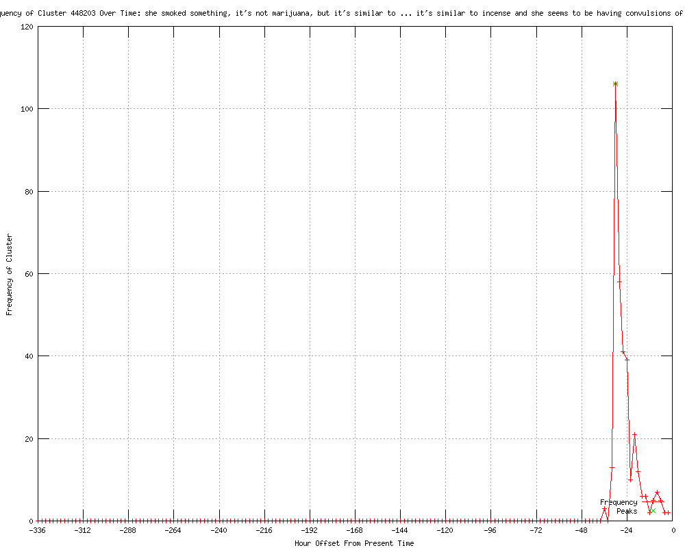 | 6 | she smoked something -- it's not marijuana but it's similar to incense Urls http://adelaidenow.com.au/news/breaking-news/tape-demi-moore-was-convulsing/story-e6frea73-1226255958325?from=public_rss http://perthnow.com.au/news/breaking-news/tape-demi-moore-was-convulsing/story-e6frg12u-1226255958325?from=public_rss http://news.com.au/breaking-news/tape-demi-moore-was-convulsing/story-e6frfku0-1226255958325 http://heraldsun.com.au/news/breaking-news/tape-demi-moore-was-convulsing/story-e6frf7jx-1226255958325 http://dailytelegraph.com.au/news/breaking-news/tape-demi-moore-was-convulsing/story-e6freuyi-1226255958325 http://news.com.au/entertainment/celebrity/dramatic-911-tape-demi-moore-039was-convulsing039/story-fn907478-1226255998859?from=public_rss |