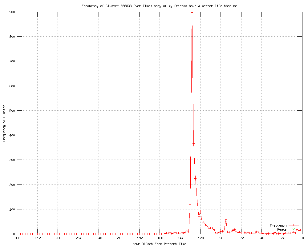 | 6 | many of my friends have a better life than me Urls http://shinyshiny.tv/2012/01/facebook_is_social_media_envy_making_you_sad.html http://thesocietypages.org/citings/2012/01/23/sad-face/ http://vickiw80.blogspot.com/2012/01/finally-someone-did-studyso-true.html http://theaustintimes.com/2012/01/facebook-could-be-a-source-of-depression/ http://emirates247.com/business/facebook-fever-happy-status-update-sad-reality-2012-01-24-1.439115 http://digitaltrends.com/social-media/study-why-facebook-is-making-people-sad/ |