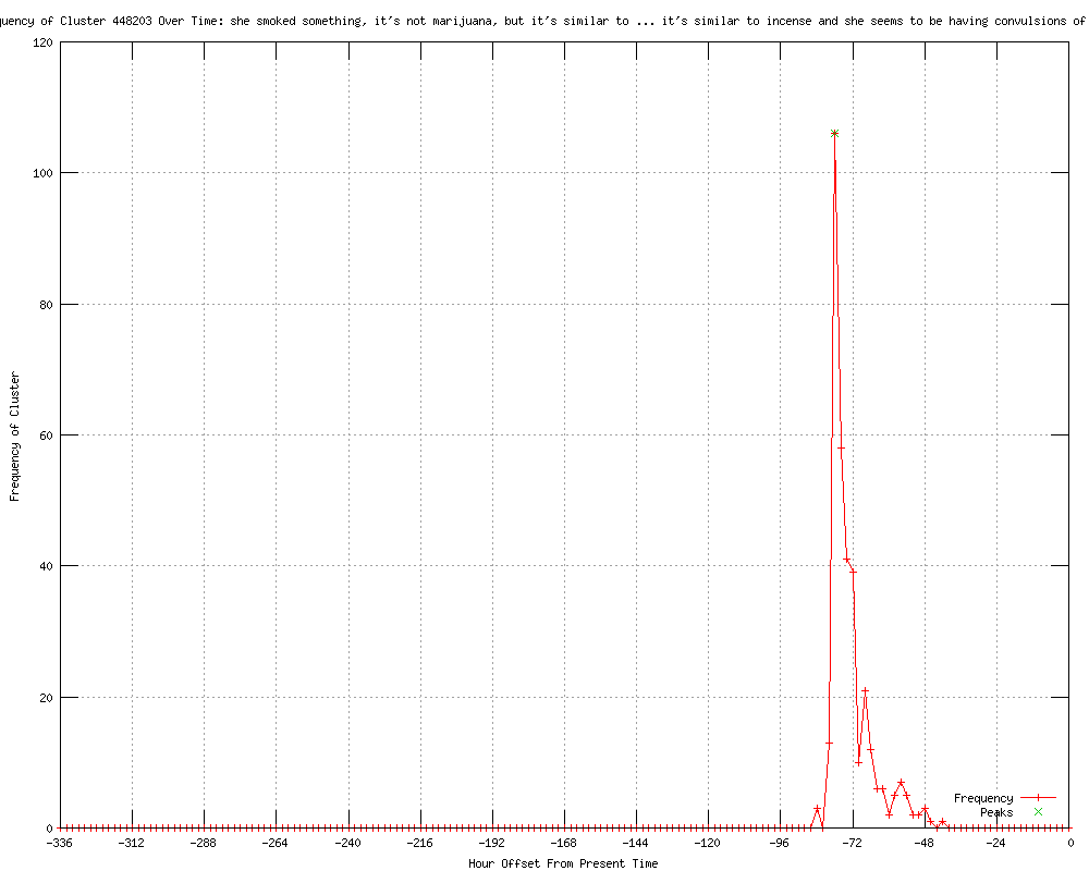 | 6 | she smoked something -- it's not marijuana but it's similar to incense Urls http://adelaidenow.com.au/news/breaking-news/tape-demi-moore-was-convulsing/story-e6frea73-1226255958325?from=public_rss http://perthnow.com.au/news/breaking-news/tape-demi-moore-was-convulsing/story-e6frg12u-1226255958325?from=public_rss http://news.com.au/breaking-news/tape-demi-moore-was-convulsing/story-e6frfku0-1226255958325 http://heraldsun.com.au/news/breaking-news/tape-demi-moore-was-convulsing/story-e6frf7jx-1226255958325 http://dailytelegraph.com.au/news/breaking-news/tape-demi-moore-was-convulsing/story-e6freuyi-1226255958325 http://news.com.au/entertainment/celebrity/dramatic-911-tape-demi-moore-039was-convulsing039/story-fn907478-1226255998859?from=public_rss |