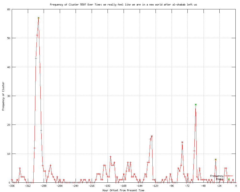 | 18 | we really feel like we are in a new world after al-shabab left us Urls http://guardian.co.uk/world/feedarticle/10020868 http://fortmilltimes.com/2012/01/02/1839693/somali-militants-gather-recruit.html http://washingtonpost.com/world/africa/somali-militants-gather-recruit-outside-town-taken-by-ethiopian-forces-calm-inside-town/2012/01/02/gIQAWqzsVP_story.html?wprss=rss_world http://wandtv.com/story/16428095/somali-militants-gather-recruit-at-border-town http://heraldonline.com/2012/01/02/3632052/somali-militants-gather-recruit.html http://khnl.com/story/16428095/somali-militants-gather-recruit-at-border-town http://startribune.com/world/136523753.html http://us.rd.yahoo.com/dailynews/rss/world/*http://news.yahoo.com/s/ap/20120102/ap_on_re_af/af_somalia_ethiopia http://feeds.washingtonpost.com/click.phdo?i=1bd80bbca3f186c91a4305b5faca2df1 http://washingtonpost.com/world/africa/somali-militants-gather-recruit-outside-town-taken-by-ethiopian-forces-calm-inside-town/2012/01/02/gIQAWqzsVP_story.html?wprss=rss_africa http://cbsnews.com/8301-501710_162-57350855/somali-militants-gather-recruit-at-border-town/ http://seattlepi.com/news/article/Somali-militants-gather-recruit-at-border-town-2436589.php http://abcnews.go.com/International/wireStory/somali-militants-gather-recruit-border-town-15272428 http://lakewyliepilot.com/2012/01/02/1379302/somali-militants-gather-recruit.html http://ctv.ca/CTVNews/World/20120102/somali-militants-recruiting-outside-beledweyne-120102/ http://feeds.cbsnews.com/%7Er/CBSNewsTravelGuru/%7E3/v7kKXgrhAgU/ http://hornofafrica-abdikarim.blogspot.com/2012/01/somali-militants-gather-recruit-outside.html http://washingtontimes.com/news/2012/jan/2/somali-militants-gather-recruit-at-border-town/?utm_source=RSS_Feed&utm_medium=RSS |