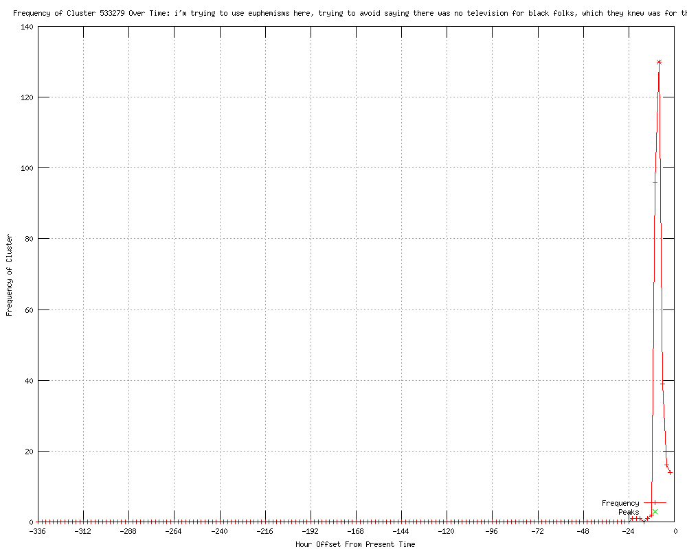 | 326 | i'm trying to use euphemisms here, trying to avoid saying there was no television for black folks, which they knew was for them Urls http://castanet.net/edition/news-story-70433-8-.htm#70433 http://castanet.net/edition/news-story-70453-8-.htm#70453 http://thetowntalk.com/article/20120201/ENTERTAINMENT/120201020/-1/rss01 http://valleymorningstar.com/news/dead-97869-wilson-nekesa.html http://oldschoolmusiclover.com/2012/02/01/don-cornelius-soul-train-creator-is-dead-at-75/ http://philosophyofscienceportal.blogspot.com/2012/02/deceased-don-cornelius.html http://crescent-news.com/latest%20headlines/2012/02/01/-soul-train-host-don-cornelius-dead-of-suicide http://entertainment.msn.com/news/article.aspx?news=700243&affid=100055 http://norwichbulletin.com/x132492399/Jacksons-Part-of-our-souls-died-with-Cornelius http://blueridgenow.com/article/20120201/articles/120209987 http://kbtx.com/home/headlines/Soul_Train_Host_Don_Cornelius_Dead_Of_Suicide_138509619.html http://kbtx.com/local/headlines/Soul_Train_Host_Don_Cornelius_Dead_Of_Suicide_138509619.html http://kbtx.com/thebuzz/headlines/Soul_Train_Host_Don_Cornelius_Dead_Of_Suicide_138509619.html http://boston.com/ae/music/articles/2012/02/01/soul_train_host_don_cornelius_dead_of_suicide?rss_id=Boston.com+--+Music+news http://ohio.com/news/nation/soul-train-host-don-cornelius-dead-of-suicide-1.258059 http://ohio.com/lifestyle/soul-train-host-don-cornelius-dead-of-suicide-1.258059 http://stevenspointjournal.com/article/20120201/WDH0502/120201136&located=rss http://wausaudailyherald.com/article/20120201/WDH0502/120201136&located=rss http://katu.com/news/entertainment/138517554.html http://marshfieldnewsherald.com/article/20120201/WDH0502/120201136&located=rss http://.tbo.com/news/music/2012/feb/01/10/soul-train-host-don-cornelius-dead-of-suicide-ar-353764/ http://.tbo.com/news/breaking-news/2012/feb/01/10/soul-train-host-don-cornelius-dead-of-suicide-ar-353764/ http://theaustintimes.com/2012/02/soul-train-host-don-cornelius-dead-of-suicide/ http://madison-press.com/ap-news/soul-train-host-don-cornelius-dead-of-suicide/ http://gosanangelo.com/news/2012/feb/01/Obit-Cornelius/ http://badgals-radio.com/rip-don-cornelius-the-soul-train-has-pulled-into-heaven?utm_source=rss&utm_medium=rss&utm_campaign=rip-don-cornelius-the-soul-train-has-pulled-into-heaven http://hosted.ap.org/dynamic/stories/U/US_OBIT_CORNELIUS?SITE=AP&SECTION=HOME&TEMPLATE=DEFAULT&CTIME=2012-02-01-14-32-02 http://newsvine.com/_news/2012/02/01/10292514-soul-train-host-don-cornelius-dead-of-suicide http://.nbc17.com/news/2012/feb/01/2/soul-train-star-don-cornelius-found-dead-apparent--ar-1879934/ http://entertainment.msn.com/news/article.aspx?news=700308&affid=100055 http://masslive.com/entertainment/index.ssf/2012/02/soul_train_host_don_cornelius.html http://us.rd.yahoo.com/dailynews/rss/topstories/*http://news.yahoo.com/s/ap/20120202/ap_on_en_mu/us_obit_cornelius http://urbanchristiannews.com/ucn/2012/02/don-cornelius-of-soul-train-commits-suicide-at-75.html http://us.rd.yahoo.com/dailynews/rss/obits/*http://news.yahoo.com/s/ap/20120202/ap_en_ot/us_obit_cornelius http://breitbart.com/article.php?id=D9SKUGRO1&show_article=1 http://us.rd.yahoo.com/dailynews/rss/us/*http://news.yahoo.com/s/ap/20120202/ap_on_en_mu/us_obit_cornelius http://us.rd.yahoo.com/dailynews/rss/entertainment/*http://news.yahoo.com/s/ap/20120202/ap_en_mu/us_obit_cornelius http://us.rd.yahoo.com/dailynews/rss/entertainment/*http://news.yahoo.com/s/ap/20120202/ap_en_ot/us_obit_cornelius http://thephiladelphiafrontpagenews.blogspot.com/2012/02/soul-train-host-don-cornelius-dead-of.html http://entertainment.msn.com/music/article.aspx?news=700338&affid=100055 http://wibw.com/nationalnews/headlines/Soul_Train_Host_Don_Cornelius_Dead_Of_Suicide__138539114.html http://courier-tribune.com/sections/living/entertainment/%E2%80%98soul-train%E2%80%99-host-don-cornelius-commits-suicide.html http://twincities.com/entertainment/ci_19867439?source=rss http://americaspeaksink.com/2012/02/soul-train-host-don-cornelius-remembered-for-bringing-black-music-culture/ http://myfoxdfw.com/dpps/entertainment/soul-train-don-cornelius-dead-report-dpgonc-20120201-fc_17557400 http://wibw.com/home/headlines/Soul_Train_Host_Don_Cornelius_Dead_Of_Suicide__138539114.html http://us.rd.yahoo.com/dailynews/rss/topstories/*http://news.yahoo.com/s/ap/20120201/ap_on_en_mu/us_obit_cornelius http://mysanantonio.com/entertainment/article/Soul-Train-host-Don-Cornelius-dead-of-suicide-2911168.php http://us.rd.yahoo.com/dailynews/rss/us/*http://news.yahoo.com/s/ap/20120201/ap_on_en_mu/us_obit_cornelius http://bostonherald.com/news/obituaries/view.bg?articleid=1400393&srvc=rss http://us.rd.yahoo.com/dailynews/rss/entertainment/*http://news.yahoo.com/s/ap/20120201/ap_en_mu/us_obit_cornelius http://us.rd.yahoo.com/dailynews/rss/entertainment/*http://news.yahoo.com/s/ap/20120201/ap_en_ot/us_obit_cornelius http://bostonherald.com/entertainment/television/general/view.bg?articleid=1400393&srvc=rss http://startribune.com/entertainment/tv/138480634.html http://wwltv.com/home/138478844.html http://us.rd.yahoo.com/dailynews/rss/obits/*http://news.yahoo.com/s/ap/20120201/ap_en_mu/us_obit_cornelius http://newsvine.com/_news/2012/02/01/10288759-soul-train-host-don-cornelius-dead-of-suicide http://kdwn.com/index.php?page=2§ion=NATIONAL_NEWS&title=Soul_Train_host_Don_Cornelius_dead_of_suicide http://kdwn.com/index.php?page=2§ion=ENTERTAINMENT_NEWS&title=Soul_Train_host_Don_Cornelius_dead_of_suicide http://accessatlanta.com/atlanta-music/soul-train-host-don-1326503.html http://utsandiego.com/news/2012/feb/01/soul-train-host-don-cornelius-dead-of-suicide/ http://wbal.com/article/ap?articleurl=http%3a%2f%2fhosted.ap.org%2fdynamic%2fstories%2fU%2fUS_OBIT_CORNELIUS%3fSITE%3dWBAL%26SECTION%3dHOME%26TEMPLATE%3dDEFAULT http://wral.com/entertainment/story/10673306/ http://twincities.com/news/ci_19867439?source=rss http://khnl.com/story/16649875/los-angeles-police-say-soul-tra