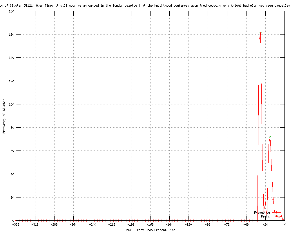 | 7 | it will soon be announced in the london gazette that the knighthood conferred upon fred goodwin as a knight bachelor has been cancelled and annulled Urls http://theglobeandmail.com/report-on-business/top-business-stories/chivalry-in-the-crisis-ages-save-the-bank-skip-a-bonus/article2321204/?utm_medium=Feeds%3A%20RSS%2FAtom&utm_source=Report http://theglobeandmail.com/report-on-business/top-business-stories/chivalry-in-the-crisis-ages-save-the-bank-skip-a-bonus/article2321204/?utm_medium=Feeds%3A%20RSS%2FAtom&utm_source=Home&utm_content=2321204 http://theglobeandmail.com/report-on-business/top-business-stories/chivalry-in-the-crisis-ages-save-the-bank-skip-a-bonus/article2321204/?utm_medium=Feeds%3A%20RSS%2FAtom&utm_source=Report%20On%20Business&utm_content=2321204 http://theglobeandmail.com/report-on-business/top-business-stories/new-chivalry-code-ex-rbs-chief-stripped-of-knighthood/article2321204/?utm_medium=Feeds%3A%20RSS%2FAtom&utm_source=Report http://walesonline.co.uk/news/wales-news/2012/01/31/former-rbs-boss-fred-goodwin-to-be-stripped-of-knighthood-91466-30237917/ http://telegraph.feedsportal.com/c/32726/f/564430/s/1c4c7870/l/0L0Stelegraph0O0Cfinance0Cfinancialcrisis0C90A524440CCabinet0EOffice0Estatement0Ein0Efull0Bhtml/story01.htm http://businessweek.com/news/2012-01-31/former-rbs-chief-fred-goodwin-is-stripped-of-knighthood.html |