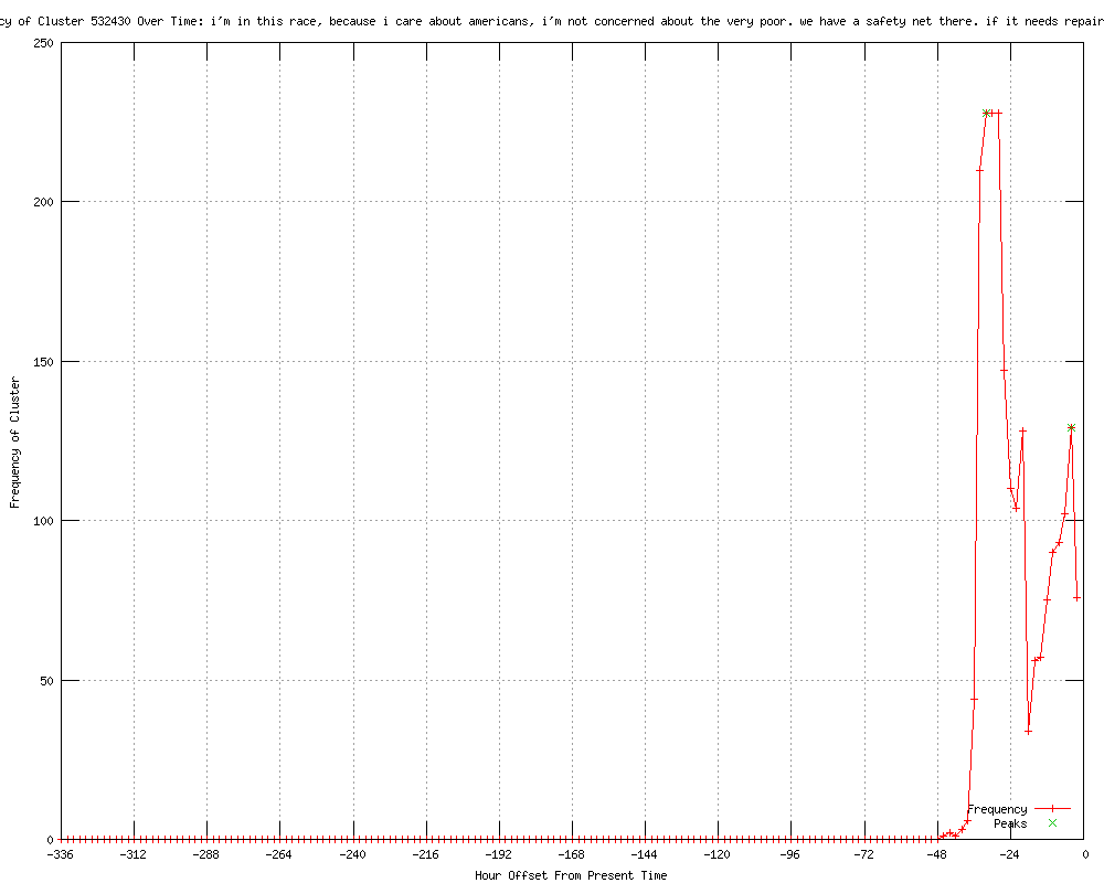 | 4 | i'm in this race because i care about americans. i'm not concerned about the very poor. we have a safety net there Urls http://splendoroftruth.com/curtjester/2012/02/channeling-scrooge/ http://freerepublic.com/focus/f-news/2841047/posts http://punditandpundette.com/2012/02/mr-electable-hones-his-message-im-not.html http://takeastandagainstliberals.blogspot.com/2012/02/mitt-romney-couldnt-care-less.html |