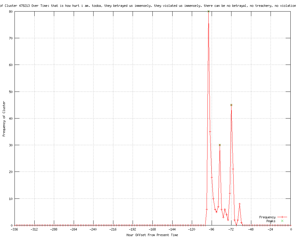 | 13 | that is how hurt i am. tooba, they betrayed us immensely. they violated us immensely. there can be no betrayal, no treachery, no violation more than this Urls http://ckom.com/content/all-3-shafia-murder-trial-found-guilty http://cjme.com/content/all-3-shafia-murder-trial-found-guilty http://therecord.com/news/canada/article/662511--all-3-guilty-in-shafia-murder-trial-judge-condems-twisted-concept-of-honour http://therecord.com/news/canada/article/662511--all-3-guilty-in-shafia-murder-trial-judge-condemns-twisted-concept-of-honour http://thespec.com/news/article/662498--shafia-wife-son-all-guilty-of-four-family-murders http://ckom.com/content/guilty-jury-convicts-all-3-shafia-murders http://cjme.com/content/guilty-jury-convicts-all-3-shafia-murders http://ontd-political.livejournal.com/9245474.html http://ckom.com/content/story-shafia-family http://cjme.com/content/story-shafia-family http://huffingtonpost.ca/2012/01/29/shafia-honour-killing-trial-verdict_n_1240509.html http://thespec.com/feature/article/662498--four-dead-three-guilty-and-the-shafia-family-shattered http://guelphmercury.com/news/canada/article/662509--all-3-guilty-in-shafia-murder-trial-judge-condemns-twisted-concept-of-honour |