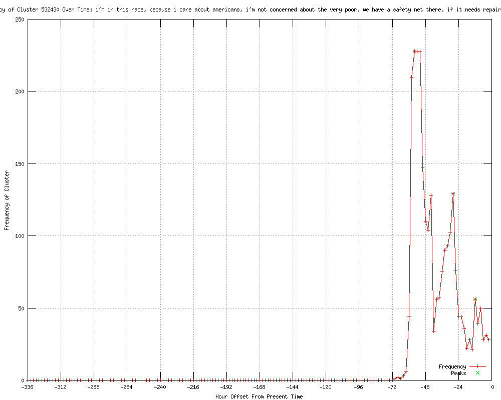 | 4 | i'm in this race because i care about americans. i'm not concerned about the very poor. we have a safety net there Urls http://splendoroftruth.com/curtjester/2012/02/channeling-scrooge/ http://freerepublic.com/focus/f-news/2841047/posts http://punditandpundette.com/2012/02/mr-electable-hones-his-message-im-not.html http://takeastandagainstliberals.blogspot.com/2012/02/mitt-romney-couldnt-care-less.html |