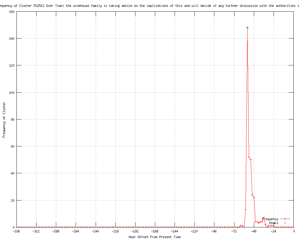 | 144 | the winehouse family is taking advice on the implications of this and will decide if any further discussion with the authorities is needed Urls http://au.news.yahoo.com/a/-/world/12786291/amy-winehouse-s-family-take-advice-over-inquest/ http://au.news.yahoo.com/world/a/-/world/12786291/amy-winehouse-s-family-take-advice-over-inquest/ http://france24.com/en/20120201-amy-winehouses-family-take-advice-over-inquest http://au.news.yahoo.com/entertainment/a/-/entertainment/12786291/amy-winehouse-s-family-take-advice-over-inquest/ http://in.reuters.com/article/2012/02/01/amywinehouse-coroner-idINDEE8100KQ20120201?feedType=RSS&feedName=entertainmentNews http://q106fm.com/news/articles/2012/feb/01/amy-winehouse-coroner-not-qualified-uk-media/ http://uk.reuters.com/article/2012/02/01/uk-amywinehouse-coroner-idUKTRE8102D920120201?feedType=RSS&feedName=entertainmentNews http://reuters.com/article/2012/02/01/us-amywinehouse-coroner-idUSTRE8102DQ20120201?feedType=RSS&feedName=entertainmentNews http://in.reuters.com/article/2012/02/01/us-amywinehouse-coroner-idINTRE8102DQ20120201?feedType=RSS&feedName=hollywood http://au.news.yahoo.com/world/a/-/world/12787184/amy-winehouse-coroner-not-qualified-uk-media/ http://wqtx.net/news/articles/2012/feb/01/amy-winehouse-coroner-not-qualified-uk-media/ http://ca.reuters.com/article/entertainmentNews/idCATRE8102DQ20120201 http://uk.news.yahoo.com/amy-winehouse-coroner-not-qualified-report-205614760.html http://us.rd.yahoo.com/dailynews/rss/entertainment/*http://news.yahoo.com/s/nm/20120201/music_nm/us_amywinehouse_coroner http://au.news.yahoo.com/a/-/world/12787184/amy-winehouse-coroner-not-qualified-uk-media/ http://publicbroadcasting.net/wabe/news.newsmain/article/0/8/1900441/Entertainment.News/Amy.Winehouse.coroner.not.qualified.UK.media http://moneycontrol.com/news/wire-news/amy-winehouse-coroner-not-qualified-uk-media_661160.html http://slumz.boxden.com/f5/feb-1-amy-winehouse-coroner-not-qualified-uk-media-1697312/ http://allnews.rss.themalaysianinsider.com/c/33362/f/567634/s/1c5471c9/l/0L0Sthemalaysianinsider0N0Cshowbiz0Carticle0Camy0Ewinehouse0Ecoroner0Enot0Equalified0Ereports0Euk0Emedia0C/story01.htm http://Thestar.com.my.feedsportal.com/c/33048/f/534570/s/1c559f06/l/0Lecentral0Bmy0Cnews0Cstory0Basp0Dfile0F0C20A120C20C20Cmusic0C20A120A20A2130A0A50A0Gsec0Fmusic/story01.htm http://upi.com/Entertainment_News/Music/2012/02/01/Coroner-in-Winehouse-inquest-resigns/UPI-84451328154352/ http://thametoday.co.uk/news/national/winehouse_inquest_may_be_invalid_1_3475923 http://bostonstandard.co.uk/news/national-news/winehouse_inquest_may_be_invalid_1_3475923 http://newsguardian.co.uk/news/national-news/winehouse_inquest_may_be_invalid_1_4201889 http://leamingtoncourier.co.uk/news/national/winehouse_inquest_may_be_invalid_1_3475923 http://midsussextimes.co.uk/news/national/winehouse_inquest_may_be_invalid_1_3475923 http://breakingnews.ie/entertainment/winehouse-inquest-may-be-invalid-538143.html http://shorehamherald.co.uk/news/national/winehouse_inquest_may_be_invalid_1_3475923 http://suffolkfreepress.co.uk/news/national-news/winehouse_inquest_may_be_invalid_1_3475923 http://skegnessstandard.co.uk/news/national-news/winehouse_inquest_may_be_invalid_1_3475923 http://tringtoday.co.uk/news/national/winehouse_inquest_may_be_invalid_1_3475923 http://haylingtoday.co.uk/news/national/winehouse_inquest_may_be_invalid_1_3475923 http://marketrasenmail.co.uk/news/national-news/winehouse_inquest_may_be_invalid_1_3475923 http://belfasttelegraph.co.uk/news/local-national/uk/winehouse-inquest-may-be-invalid-16111994.html?r=RSS http://bognor.co.uk/news/national/winehouse_inquest_may_be_invalid_1_3475923 http://bexhillobserver.net/news/national-news/winehouse_inquest_may_be_invalid_1_3475923 http://ilkestonadvertiser.co.uk/news/national/winehouse_inquest_may_be_invalid_1_4201889 http://bournelocal.co.uk/news/national-news/winehouse_inquest_may_be_invalid_1_3475923 http://retfordtoday.co.uk/news/national-news/winehouse_inquest_may_be_invalid_1_4201889 http://bakewelltoday.co.uk/news/national/winehouse_inquest_may_be_invalid_1_4201889 http://lakelandecho.co.uk/news/national-news/winehouse_inquest_may_be_invalid_1_4201889 http://fenlandcitizen.co.uk/news/national-news/winehouse_inquest_may_be_invalid_1_3475923 http://harboroughmail.co.uk/news/national/winehouse_inquest_may_be_invalid_1_3475923 http://miltonkeynes.co.uk/news/national/winehouse_inquest_may_be_invalid_1_3475923 http://northantset.co.uk/news/national/winehouse_inquest_may_be_invalid_1_3475923 http://spenboroughguardian.co.uk/news/national/winehouse_inquest_may_be_invalid_1_4201889 http://ripongazette.co.uk/news/national/winehouse_inquest_may_be_invalid_1_4201889 http://wscountytimes.co.uk/news/national/winehouse_inquest_may_be_invalid_1_3475923 http://pontefractandcastlefordexpress.co.uk/news/national/winehouse_inquest_may_be_invalid_1_4201889 http://matlockmercury.co.uk/news/national/winehouse_inquest_may_be_invalid_1_4201889 http://chorley-guardian.co.uk/news/national/winehouse_inquest_may_be_invalid_1_4201889 http://sleafordstandard.co.uk/news/national-news/winehouse_inquest_may_be_invalid_1_3475923 http://hemsworthandsouthelmsallexpress.co.uk/news/national/winehouse_inquest_may_be_invalid_1_4201889 http://brighouseecho.co.uk/news/national/winehouse_inquest_may_be_invalid_1_4201889 http://clitheroeadvertiser.co.uk/news/national-news/winehouse_inquest_may_be_invalid_1_4201889 http://maltonmercury.co.uk/news/national/winehouse_inquest_may_be_invalid_1_4201889 http://morleyobserver.co.uk/news/national/winehouse_inquest_may_be_invalid_1_4201889 http://wetherbynews.co.uk/news/national/winehouse_inquest_may_be_invalid_1_4201889 http://horncastlenews.co.uk/news/national-news/winehouse_inquest_may_be_invalid_1_3475923 http://northamptonchron.co.uk/news/national/winehouse_inquest_may_be_invalid_1_3475923 http://dewsburyreporter.co.uk/news/national/winehouse_inquest_may_be_invalid_1_4201889 http://sthelensreporter.co.uk/news