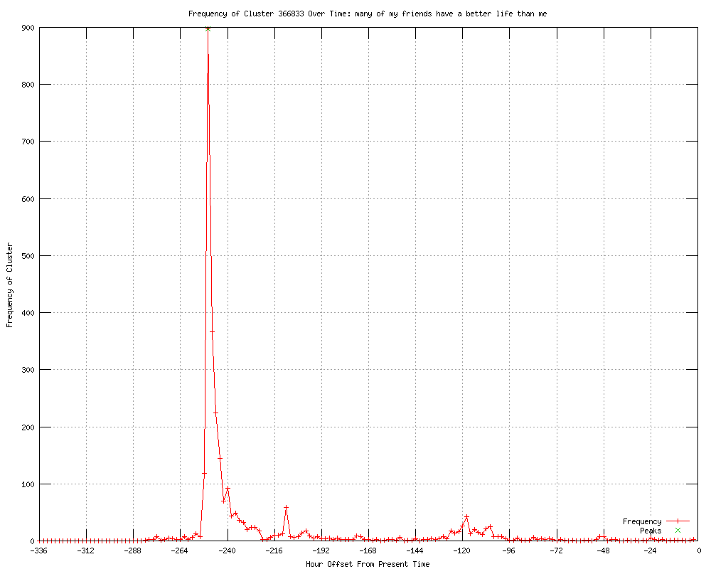 | 6 | many of my friends have a better life than me Urls http://shinyshiny.tv/2012/01/facebook_is_social_media_envy_making_you_sad.html http://thesocietypages.org/citings/2012/01/23/sad-face/ http://vickiw80.blogspot.com/2012/01/finally-someone-did-studyso-true.html http://theaustintimes.com/2012/01/facebook-could-be-a-source-of-depression/ http://emirates247.com/business/facebook-fever-happy-status-update-sad-reality-2012-01-24-1.439115 http://digitaltrends.com/social-media/study-why-facebook-is-making-people-sad/ |