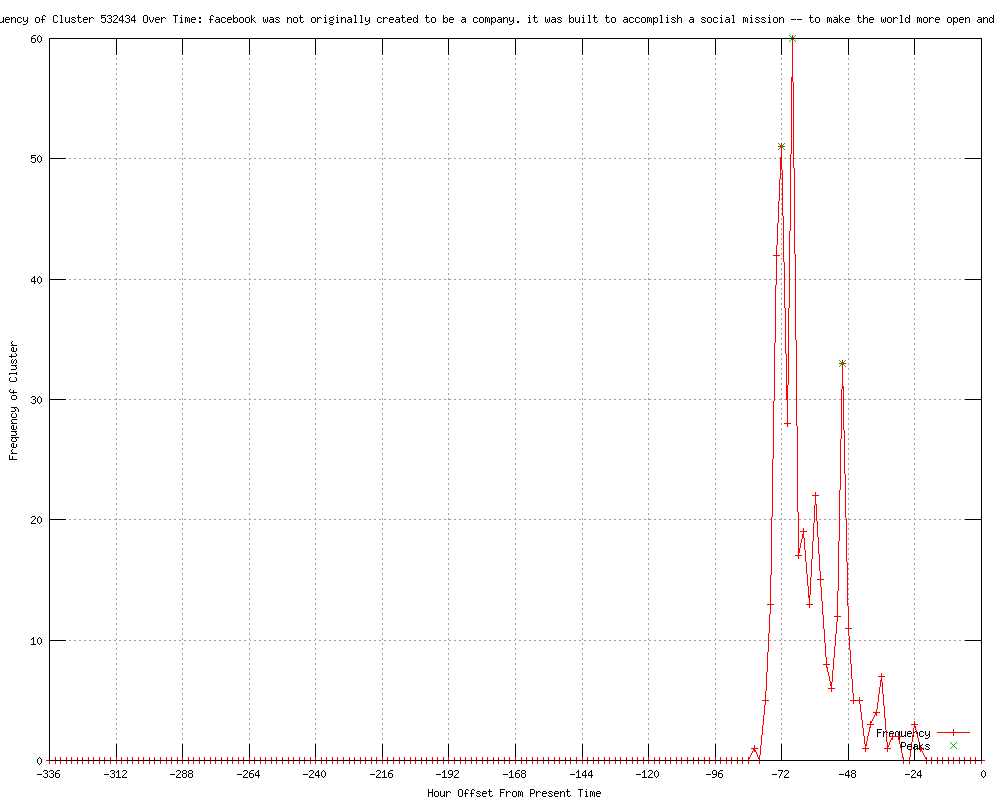| 21 | facebook was not originally created to be a company. it was built to accomplish a social mission -- to make the world more open and connected Urls http://media.crikey.com.au/dm/newsletter/dailymail_06eb6d74bd22ec5f7ee2d2acc8e7482b.html http://hindustantimes.com/technology/Market-Updates/Guide-to-Facebook-s-IPO-filings/SP-Article1-805522.aspx http://mercurynews.com/financial-markets/ci_19871674?source=rss http://mercurynews.com/news/ci_19871674?source=rss http://mercurynews.com/breaking-news/ci_19871674?source=rss http://mercurynews.com/business/ci_19871674?source=rss http://mercurynews.com/60-second-business-break/ci_19871674?source=rss http://blog.zap2it.com/pop2it/2012/02/facebook-ipo-mark-zuckerberg-says-site-will-help-transform-society.html http://mercurynews.com/business/ci_19873186?source=rss http://wardnersoftware.com/archives/5582 http://contracostatimes.com/business/ci_19873186?source=rss http://siliconvalley.com/ci_19870014?source=most_viewed http://siliconvalley.com/ci_19873186?source=most_viewed http://siliconindia.com/shownews/Six_Things_to_Know_about_the_Facebook_IPO_Tour-nid-104719.html http://siliconindia.com/shownews/Six_Things_to_Know_about_the_?Facebook_IPO?_Tour-nid-104719.html http://hispanicbusiness.com/2012/2/2/facebook_ipo_reveals_companys_finances.htm http://cnn.com/2012/02/02/opinion/keen-technology-facebook/index.html?eref=rss_latest http://cnn.com/2012/02/02/opinion/keen-technology-facebook/index.html http://mobility.cbronline.com/news/facebook-files-for-5bn-ipo-020112 http://cbronline.com/news/facebook-files-for-5bn-ipo-020112 http://boardroom.cbronline.com/news/facebook-files-for-5bn-ipo-020112 |