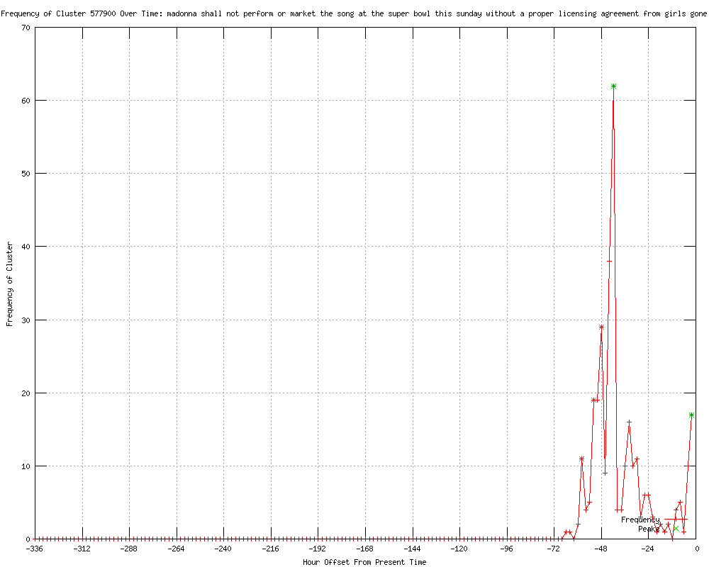 | 6 | madonna shall not perform or market the song at the super bowl this sunday without a proper licensing agreement from girls gone wild Urls http://virtualizationconference.com/node/2154010 http://pressrelated.com/press-release-joe-francis-vs-madonna-in-super-bowl-showdown.html http://streetinsider.com/Press+Releases/Joe+Francis+vs.+Madonna+in+Super+Bowl+Showdown/7137455.html http://sys-con.com/node/2154010 http://ulitzer.com/node/2154010 http://finanznachrichten.de/nachrichten-2012-02/22624274-joe-francis-vs-madonna-in-super-bowl-showdown-008.htm |