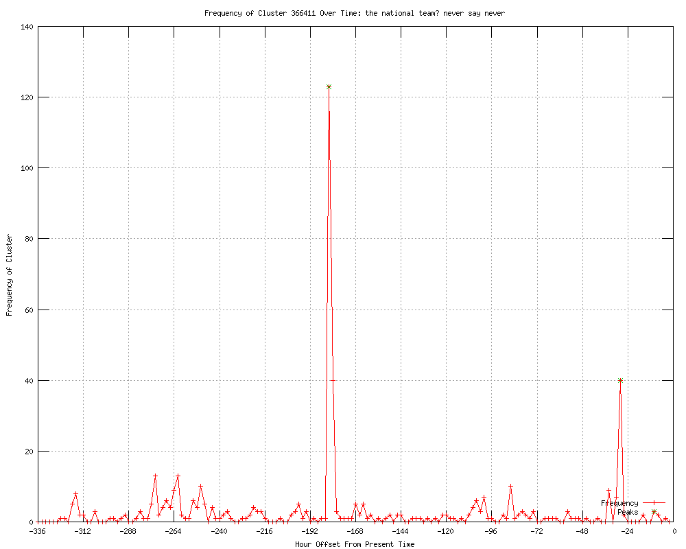 | 7 | the national team? never say never Urls http://goal.com/en/news/2898/euro-2012/2012/01/23/2862713/romas-francesco-totti-open-to-italy-return-for-euro-2012 http://ca.rd.yahoo.com/sports/rss/sow/SIG=12dhgon8q/*http%3A//ca.sports.yahoo.com/sow/news?slug=goal-romasfrancescotottiopentoit http://uk.news.yahoo.com/romas-francesco-totti-open-italy-211800417--soccer.html http://us.rd.yahoo.com/sports/rss/sow/SIG=12a9kudi0/*http%3A//sports.yahoo.com/sow/news?slug=goal-romasfrancescotottiopentoit http://soccerway.com/news/2012/January/24/totti-considers-italy-return http://soccernews.com/totti-considers-italy-return/87325/ http://foreign.peacefmonline.com/sports/201201/90555.php |
