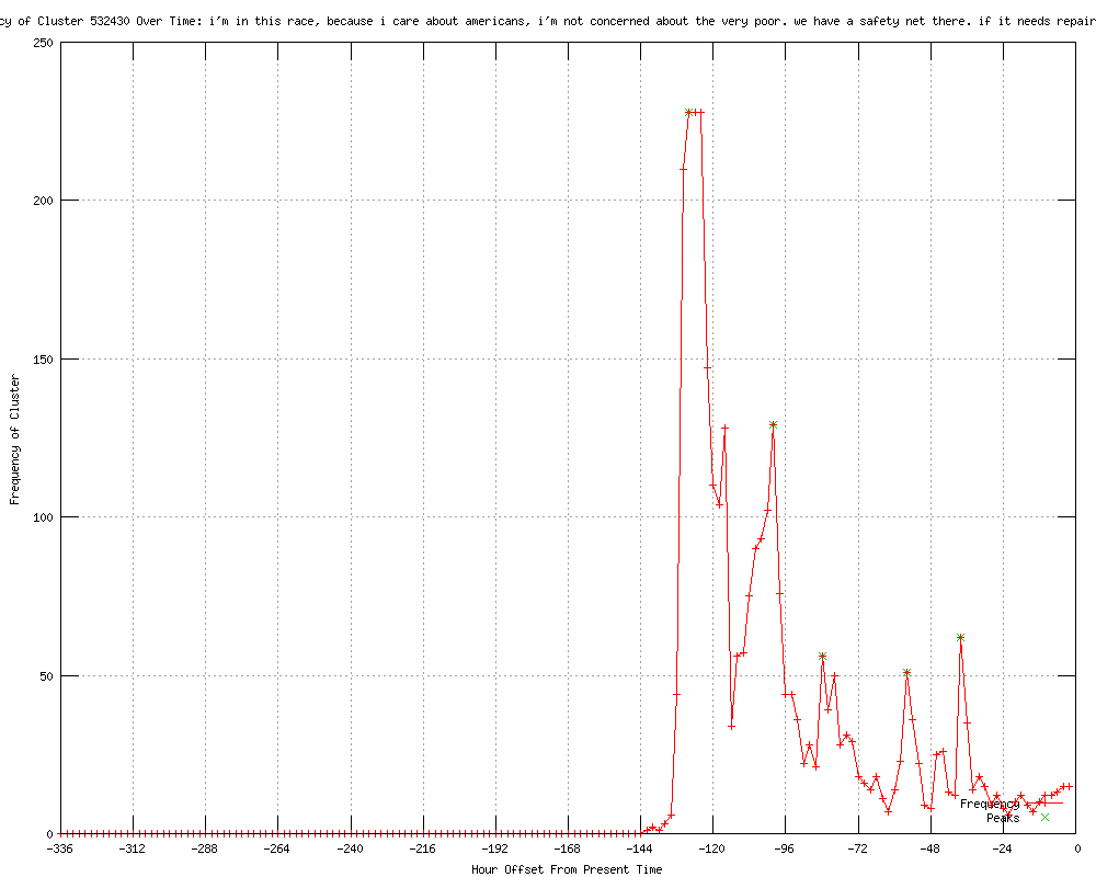 | 4 | i'm in this race because i care about americans. i'm not concerned about the very poor. we have a safety net there Urls http://splendoroftruth.com/curtjester/2012/02/channeling-scrooge/ http://freerepublic.com/focus/f-news/2841047/posts http://punditandpundette.com/2012/02/mr-electable-hones-his-message-im-not.html http://takeastandagainstliberals.blogspot.com/2012/02/mitt-romney-couldnt-care-less.html |