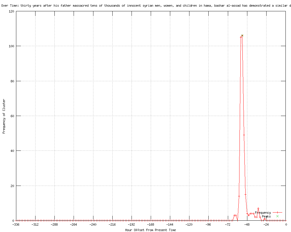 | 26 | thirty years after his father massacred tens of thousands of innocent syrian men, women, and children in hama, bashar al-assad has demonstrated a similar disdain for human life and dignity Urls http://foxnews.com/politics/2012/02/04/obama-decries-unspeakable-assault-in-syria-builds-case-for-un-resolution/ http://chinahour.blogspot.com/2012/02/russia-china-block-anti-assad.html http://wik.io/info/US/313155837 http://lunaticoutpost.com/Topic-Russia-China-block-anti-Assad-resolution-at-UN-amid-Syria-bloodshed http://freedomismist.blogspot.com/2012/02/russia-china-block-anti-assad.html http://lincolntribune.com/?p=27067 http://ncrumors.com/?p=13688 http://lawhawk.blogspot.com/2012/02/un-resolution-on-syria-fails-as-death.html http://newkerala.com/news/2011/worldnews-154777.html http://washingtonpost.com/world/middle_east/russia-china-veto-un-resolution-on-syria/2012/02/04/gIQAxvVhpQ_story.html?wprss=rss_middle-east http://washingtonpost.com/world/middle_east/russia-china-veto-un-resolution-on-syria/2012/02/04/gIQAxvVhpQ_story.html?wprss=rss_homepage http://washingtonpost.com/world/middle_east/russia-china-veto-un-resolution-on-syria/2012/02/04/gIQAxvVhpQ_story.html?wprss=rss_world http://feeds.washingtonpost.com/click.phdo?i=35cd6217462452901b1654d11977e858 http://thetotalcollapse.com/russia-china-veto-u-n-resolution-on-syria/ http://en.europeonline-magazine.eu/syrian-army-massacres-hundreds-in-homs-activists-say_187417.html http://feeds.cbsnews.com/~r/CBSNewsMain/~3/79RhGXLX6SU/ http://cbsnews.com/8301-202_162-57371619/syria-after-u.n-vote-now-what/ http://cbsnews.com/8301-202_162-57371619/syria-after-u.n-vote-fails-now-what/ http://feeds.cbsnews.com/~r/CBSNewsMain/~3/NkKJqRLTfsQ/ http://feeds.cbsnews.com/~r/CBSNewsWorld/~3/NkKJqRLTfsQ/ http://yalibnan.com/2012/02/05/syria-after-u-n-vote-fails-now-what/ http://feeds.cbsnews.com/%7Er/CBSNewsTravelGuru/%7E3/NkKJqRLTfsQ/ http://newmediajournal.us/indx.php/item/4448 http://theyeshivaworld.com/?p=116837 http://hotair.com/archives/2012/02/04/quotes-of-the-day-931/ http://newwestnotes.com/2012/02/04/weekend-edition-160/ |