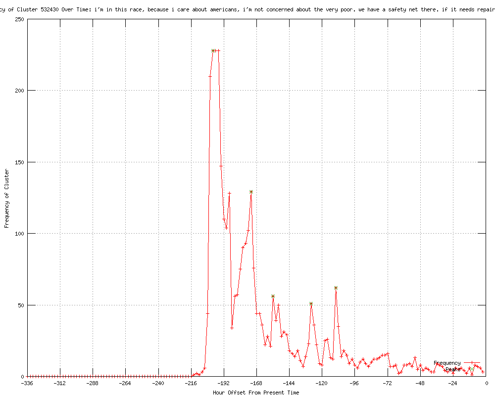 | 4 | i'm in this race because i care about americans. i'm not concerned about the very poor. we have a safety net there Urls http://splendoroftruth.com/curtjester/2012/02/channeling-scrooge/ http://freerepublic.com/focus/f-news/2841047/posts http://punditandpundette.com/2012/02/mr-electable-hones-his-message-im-not.html http://takeastandagainstliberals.blogspot.com/2012/02/mitt-romney-couldnt-care-less.html |