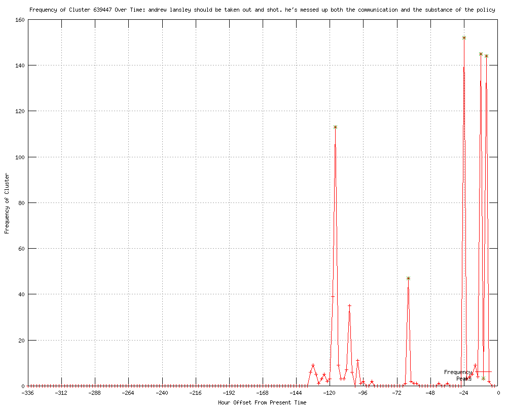 | 5 | andrew lansley should be taken out and shot. he's messed up both the communication and the substance of the policy Urls http://telegraph.feedsportal.com/c/32726/f/564430/s/1c76aebc/l/0L0Stelegraph0O0Chealth0Chealthnews0C90A664830CDowning0EStreet0Edoes0Enot0Ewant0EAndrew0ELansley0Etaken0Eout0Eand0Eshot0Bhtml/story01.htm http://telegraph.feedsportal.com/c/32726/f/534871/s/1c768803/l/0L0Stelegraph0O0Chealth0Chealthnews0C90A664830CDowning0EStreet0Edoes0Enot0Ewant0EAndrew0ELansley0Etaken0Eout0Eand0Eshot0Bhtml/story01.htm http://telegraph.feedsportal.com/c/32726/f/579330/s/1c76b33e/l/0L0Stelegraph0O0Chealth0Chealthnews0C90A664830CDowning0EStreet0Edoes0Enot0Ewant0EAndrew0ELansley0Etaken0Eout0Eand0Eshot0Bhtml/story01.htm http://thisislondon.co.uk/standard/politics/article-24033643-gps-mps-and-peers-gang-up-on-lansley-over-nhs-reform-chaos.do http://thisislondon.co.uk.edgesuite.net/standard/politics/article-24033643-gps-mps-and-peers-gang-up-on-lansley-over-nhs-reform-chaos.do |