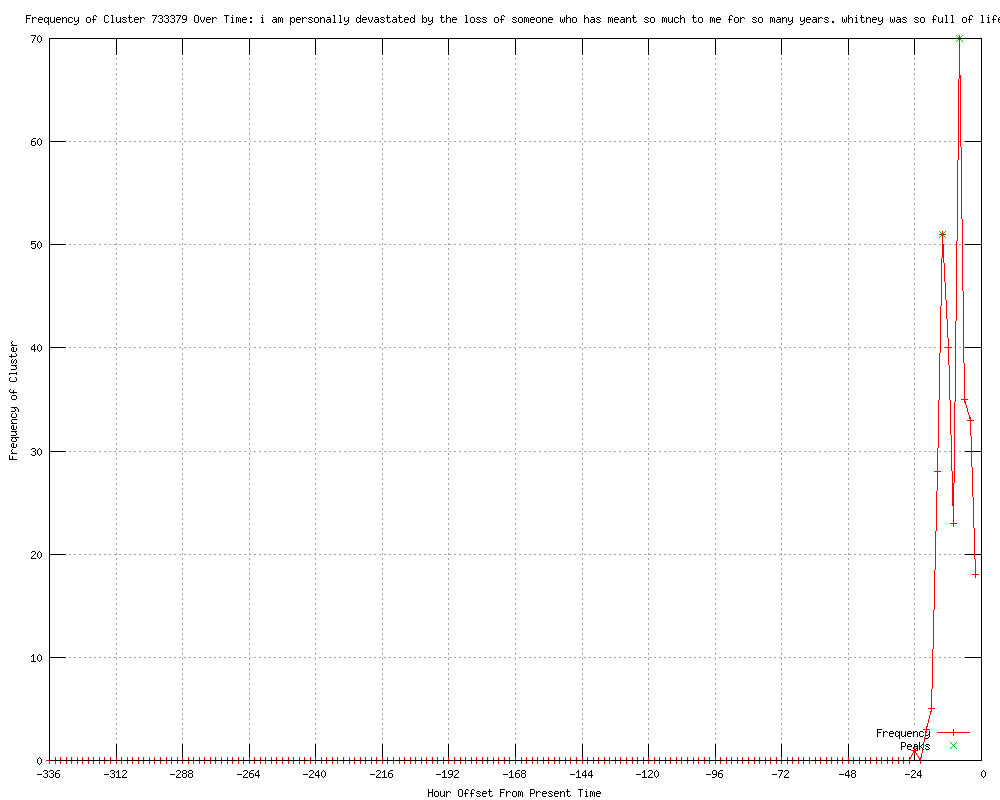 | 19 | personally devastated by the loss of someone who has meant so much to me for so many years Urls http://rapid-soft.info/us-singer-and-actress-whitney-houston-dies-aged-48/ http://pigeonproject.com/2012/02/12/r-i-p-the-legend-whitney-houston/ http://leicesterbangs.blogspot.com/2012/02/us-singer-and-actress-whitney-houston.html http://nostos-music.blogspot.com/2012/02/whitney-houston-dies-aged-48.html http://jaxcollection.blogspot.com/2012/02/us-singer-and-actress-whitney-houston.html http://bbc.in/ymqDG0 http://isaackin.blogspot.com/2012/02/singer-whitney-houston-dies.html http://bbc.co.uk/go/rss/int/news/-/news/world-17001548 http://bbc.co.uk/news/world-17001548 http://funtuna.com/2012/02/whitney-houston-beverly-hilton-hotel.html http://bbc.co.uk/go/rss/int/news/-/news/entertainment-arts-17003271 http://news.bbc.co.uk/news/entertainment-arts-17003271 http://bbc.co.uk/news/entertainment-arts-17003271 http://arakanindobhasaa.blogspot.com/2012/02/whitney-houstons-death-stuns-music.html http://bbc.co.uk/go/rss/int/news/-/news/entertainment-arts-17008000 http://bbc.co.uk/news/entertainment-arts-17008000 http://news.bbc.co.uk/news/entertainment-arts-17008000 http://astuteblogger.blogspot.com/2012/02/more-proof-of-shallow-hypocrisy-of.html http://tebowzone.com/2012/02/whitney-houston-dies-aged-48/ |