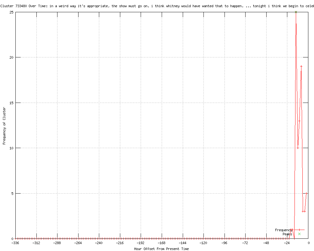 | 18 | in a weird way it's appropriate, the show must go on. i think whitney would have wanted that to happen. ? tonight i think we begin to celebrate and remember Urls http://svherald.com/associatedpress/248714 http://artesianews.com/ap-news/entertainment-ap-news/pre-grammy-gala-celebrates-whitney-houstons-life/ http://artesianews.com/ap-news/entertainment-ap-news/pre-grammy-gala-celebrates-whitney-houstons-life-2/ http://pbpulse.com/music/music-news/grammys/2012/02/12/pre-grammy-gala-celebrates-whitney-houstons-life/ http://.tboextra.com/entertainment/movies/2012/feb/12/pre-grammy-gala-celebrates-houstons-life-ar-357979/ http://.tbo.com/entertainment/entertainment/2012/feb/12/2/pre-grammy-gala-celebrates-houstons-life-ar-357979/ http://longislandpress.com/2012/02/12/pre-grammy-gala-celebrates-whitney-houstons-life/ http://.tbo.com/entertainment/music/2012/feb/12/2/pre-grammy-gala-celebrates-houstons-life-ar-357979/ http://.tbo.com/entertainment/breaking-news/2012/feb/12/2/pre-grammy-gala-celebrates-houstons-life-ar-357979/ http://.tboextra.com/entertainment/movies/2012/feb/12/2/pre-grammy-gala-celebrates-houstons-life-ar-357979/ http://news-press.com/article/20120212/ENT/302120065/1075/Pre-Grammy-gala-celebrates-Whitney-Houston-s-life?odyssey=nav|head http://news-press.com/article/20120212/ENT/302120065/Pre-Grammy-gala-celebrates-Whitney-Houston-s-life?odyssey=tab|topnews|text|Home http://news-press.com/article/20120212/ENT/302120065/Pre-Grammy-gala-celebrates-Whitney-Houston-s-life?odyssey=tab|mostpopular|img|FRONTPAGE http://news-press.com/article/20120212/ENT/302120065/Pre-Grammy-gala-celebrates-Whitney-Houston-s-life?odyssey=tab|mostpopular|text|FRONTPAGE http://wggb.com/2012/02/12/pre-grammy-gala-celebrates-whitney-houstons-life/ http://latestmusicheadlines.com/2012/02/photos-pre-grammy-gala-becomes-whitney-memorial/ http://news-press.com/article/20120212/ENT/302120065/Pre-Grammy-gala-celebrates-Whitney-Houston-s-life?odyssey=mod|newswell|img|Home|p http://news-press.com/article/20120212/ENT/302120065/Pre-Grammy-gala-celebrates-Whitney-Houston-s-life?odyssey=mod|newswell|text|Home|p |
