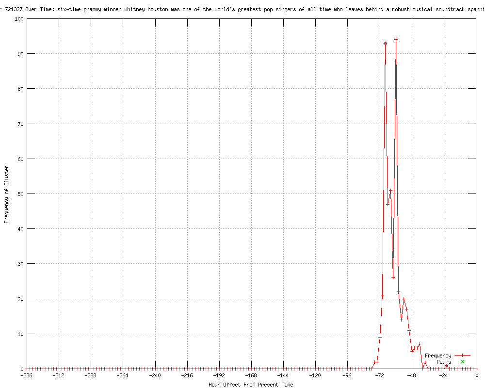 | 46 | one of the world's greatest pop singers of all time who leaves behind a robust musical soundtrack spanning the past three decades Urls http://au.news.yahoo.com/a/-/world/12880698/award-winning-singer-whitney-houston-dies-at-age-48/ http://au.news.yahoo.com/world/a/-/world/12880698/award-winning-singer-whitney-houston-dies-at-age-48/ http://ktuu.com/news/awardwinning-singer-whitney-houston-dies-at-age-48-20120211,0,4065366.story http://ktuu.com/news/awardwinning-singer-whitney-houston-dies-at-age-48-20120211,0,4065366.story?track=rss http://news.muckety.com/2012/02/12/whitney-houston-dies-at-48/36121 http://hindustantimes.com/Entertainment/Music/Music-world-stunned-by-death-of-Whitney-Houston/Article1-810264.aspx http://breitbart.com/article.php?id=CNG.9367df7c419dfd7c7311dd597acd280f.391&show_article=1 http://au.news.yahoo.com/a/-/business/12881853/music-world-stunned-by-death-of-whitney-houston/ http://uk.news.yahoo.com/music-world-stunned-death-whitney-houston-070349291.html http://capitalfm.co.ke/news/2012/02/stars-pay-tribute-to-whitney/ http://mg.co.za/article/2012-02-12-whitney-houston-found-dead-in-la-hotel-room/ http://channel24.co.za/News/International/Whitney-Houston-dies-at-48-20120212 http://hindustantimes.com/Entertainment/Music/Whitney-Houston-found-dead-in-hotel-age-48/Article1-810224.aspx http://vanguardngr.com/2012/02/pop-legend-whitney-houston-dies-at-48/ http://channelnewsasia.com/stories/entertainment/view/1182501/1/.html http://theedgemalaysia.feedsportal.com/c/33912/f/613076/s/1c9553ed/l/0L0Stheedgemalaysia0N0Cindex0Bphp0Doption0Fcom0Icontent0Gtask0Fview0Gid0F20A0A7560GItemid0F87/story01.htm http://timesofmalta.com/articles/view/20120212/arts-entertainment/whitney-houston-broke-records-battled-drugs.406460 http://au.news.yahoo.com/a/-/world/12880264/music-world-stunned-at-death-of-whitney-houston/ http://au.news.yahoo.com/world/a/-/world/12880264/music-world-stunned-at-death-of-whitney-houston/ http://au.news.yahoo.com/a/-/business/12880264/music-world-stunned-at-death-of-whitney-houston/ http://rawstory.com/rs/2012/02/12/music-world-stunned-at-death-of-whitney-houston/ http://hurriyetdailynews.com/music-world-stunned-at-death-of-whitney-houston-48.aspx?pageID=238&nid=13579&NewsCatID=383 http://feeds.bangkokpost.com/c/33101/f/535950/s/1c964f13/l/0L0Sbangkokpost0N0Cbreakingnews0C2794520Cmusic0Eworld0Estunned0Eat0Edeath0Eof0Ewhitney0Ehouston/story01.htm http://chinapost.com.tw/art/celebrity-news/2012/02/13/331461/Industry-stars.htm http://au.news.yahoo.com/world/a/-/world/12880264/grammys-to-pay-tribute-to-houston-after-shock-death/ http://afp.com/afpcom/en/taglibrary/activity/television/photo/photo http://au.news.yahoo.com/a/-/newshome/12884690/whitney-houston-happy-in-days-before-death/ http://au.news.yahoo.com/latest/a/-/article/12884690/whitney-houston-happy-in-days-before-death/ http://nz.rd.yahoo.com/news/rss/top_stories/*http://nz.news.yahoo.com/a/-/top-stories/12884690/whitney-houston-s-daughter-in-hospital/ http://au.news.yahoo.com/a/-/newshome/12884690/whitney-houston-s-daughter-in-hospital/ http://au.news.yahoo.com/entertainment/a/-/entertainment/12884690/whitney-houston-happy-in-days-before-death/ http://au.news.yahoo.com/a/-/business/12884690/whitney-houston-s-daughter-in-hospital/ http://au.news.yahoo.com/sa/latest/a/-/article/12890827/a-prayer-for-houston-opens-the-grammys/ http://au.news.yahoo.com/a/-/newshome/12890827/a-prayer-for-houston-opens-the-grammys/ http://twssg.blogspot.com/2012/02/news-shock-at-whitney-houston-death.html http://mmail.com.my/story/music-world-stunned-death-whitney-houston http://feeds.bangkokpost.com/c/33101/f/535952/s/1c952b25/l/0L0Sbangkokpost0N0Cnews0Cworld0C2794750Cmusic0Eworld0Estunned0Eby0Edeath0Eof0Ewhitney0Ehouston/story01.htm http://breaking-newztrends.blogspot.com/2012/02/music-world-stunned-by-death-of-whitney.html http://perthnow.com.au/news/breaking-news/music-world-stunned-at-houston039s-death/story-e6frg12u-1226269106070?from=public_rss http://adelaidenow.com.au/news/breaking-news/music-world-stunned-at-houston039s-death/story-e6frea73-1226269106070?from=public_rss http://heraldsun.com.au/news/breaking-news/music-world-stunned-at-houston039s-death/story-e6frf7jx-1226269106070 http://news.com.au/breaking-news/music-world-stunned-at-houston039s-death/story-e6frfku0-1226269106070 http://dailytelegraph.com.au/news/breaking-news/music-world-stunned-at-houston039s-death/story-e6freuyi-1226269106070 http://garlicchop.com/news/world-news/award-winning-singer-whitney-houston-dies-at-age-48/ http://perthnow.com.au/news/grammys-tribute-for-tragic-houston/story-e6frg12c-1226269333243 http://perthnow.com.au/news/grammys-tribute-for-tragic-diva-houston/story-e6frg12c-1226269333243 |