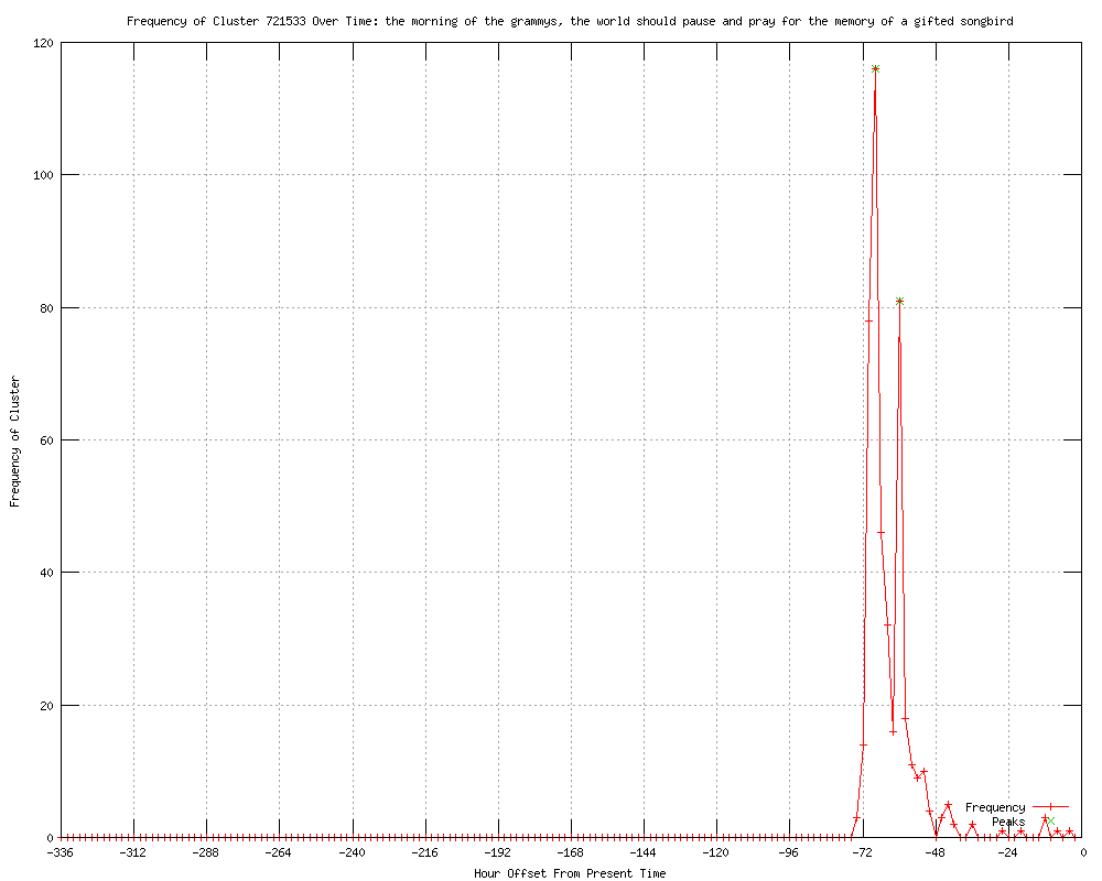 | 454 | the morning of the grammys, the world should pause and pray for the memory of a gifted songbird Urls http://wfmj.com/story/16915352/whitney-houston-superstar-of-records-films-dies http://tla-pronline.com/news/4427-singing-superstar-whitney-houston-dies-at-48.html http://thuglifearmy.com/news/4427-singing-superstar-whitney-houston-dies-at-48.html http://utsandiego.com/news/2012/feb/11/whitney-houston-superstar-records-films-dies/ http://us.rd.yahoo.com/dailynews/rss/obits/*http://news.yahoo.com/s/ap/20120212/ap_en_ot/us_obit_whitney_houston http://boston.com/ae/music/articles/2012/02/11/whitney_houston_superstar_of_records_films_dies?rss_id=Boston.com+--+Music+news http://accessatlanta.com/atlanta-music/whitney-houston-superstar-of-1346249.html http://hosted.ap.org/dynamic/stories/U/US_OBIT_WHITNEY_HOUSTON?SITE=CAMAR&SECTION=HOME&TEMPLATE=DEFAULT http://us.rd.yahoo.com/dailynews/rss/entertainment/*http://news.yahoo.com/s/ap/20120212/ap_en_tv/us_obit_whitney_houston http://us.rd.yahoo.com/dailynews/rss/entertainment/*http://news.yahoo.com/s/ap/20120212/ap_en_mo/us_obit_whitney_houston http://us.rd.yahoo.com/dailynews/rss/entertainment/*http://news.yahoo.com/s/ap/20120212/ap_on_en_mu/us_obit_whitney_houston http://entertainment.msn.com/news/article.aspx?news=702915&affid=100055 http://daytonscw.com/dpps/entertainment/celebrity/whitney-houston-superstar-of-records-films-dies-nt12-jgr_4070001 http://breitbart.com/article.php?id=D9SRI53G1&show_article=1 http://lansingstatejournal.com/article/20120211/ENTERTAINMENT02/302110020/-1/RSS http://wlbt.com/story/16915577/whitney-houston-superstar-of-records-films-dies http://ktrv.com/story/16915577/whitney-houston-superstar-of-records-films-dies http://wtol.com/story/16915577/whitney-houston-superstar-of-records-films-dies http://wrcbtv.com/story/16915577/whitney-houston-superstar-of-records-films-dies http://petoskeynews.com/news/featured/pnr-whitney-houston-superstar-of-records-films-dies-20120211,0,3004932.story?track=rss http://newsvine.com/_news/2012/02/11/10385000-whitney-houston-superstar-of-records-films-dies http://hosted.ap.org/dynamic/stories/U/US_OBIT_WHITNEY_HOUSTON?SITE=AP http://guardian.co.uk/world/feedarticle/10089050 http://artesianews.com/ap-news/entertainment-ap-news/whitney-houston-superstar-of-records-films-dies-2/ http://cbsnews.com/8301-501368_162-57376049/whitney-houston-superstar-of-records-films-dies/ http://us.rd.yahoo.com/dailynews/rss/obits/*http://news.yahoo.com/s/ap/20120212/ap_en_tv/us_obit_whitney_houston http://lansingstatejournal.com/article/20120211/ENTERTAINMENT02/302110020/Whitney-Houston-superstar-records-films-dies-?odyssey=mod|breaking|img|FRONTPAGE http://lansingstatejournal.com/article/20120211/ENTERTAINMENT02/302110020/Whitney-Houston-superstar-records-films-dies-?odyssey=mod|newswell|img|FRONTPAGE|p http://lansingstatejournal.com/article/20120211/ENTERTAINMENT02/302110020/Whitney-Houston-superstar-records-films-dies-?odyssey=mod|newswell|text|FRONTPAGE|p http://lansingstatejournal.com/article/20120211/ENTERTAINMENT02/302110020/Whitney-Houston-superstar-records-films-dies-?odyssey=mod|breaking|text|FRONTPAGE http://am-news.com/content/whitney-houston-dead-48 http://kentucky.com/2012/02/11/2065011/whitney-houston-superstar-of-records.html#storylink=rss http://wral.com/entertainment/story/10718923/ http://clintonherald.com/breakingnews/x980635542/Whitney-Houston-superstar-of-records-films-dies http://clintonherald.com/apstorysection/x980635542/Whitney-Houston-superstar-of-records-films-dies http://therecord.com/whatson/artsentertainment/article/669960--whitney-houston-dead-at-48 http://tv.yahoo.com/news/whitney-houston-superstar-records-films-dies-005927033.html http://wcbi.com/article.php?subaction=showfull&id=1329015516&archive=&start_from=&ucat=1,2& http://guelphmercury.com/whatson/artsentertainment/article/669959--whitney-houston-dead-at-48 http://hosted.ap.org/dynamic/stories/U/US_OBIT_WHITNEY_HOUSTON?SITE=WTVCTV&SECTION=HOME&TEMPLATE=DEFAULT http://insidebayarea.com/ci_19945796?source=most_viewed http://insidebayarea.com/ci_19945797?source=most_viewed http://newsok.com/whitney-houston-superstar-of-records-films-dies/article/feed/347150?custom_click=rss http://news-journalonline.com/news/nationworld/2012/02/12/whitney-houston-superstar-of-records-films-found-dead-in-hotel-room.html http://.nbc17.com/news/2012/feb/11/whitney-houston-found-dead-beverly-hilton-ar-1920441/ http://jose-aviles.blogspot.com/2012/02/superstar-whitney-houston-dies-at-48.html http://seniorcitizens.org/2012/02/11/whitney-houston-pop-superstar-dies-at-48/ http://entertainment.msn.com/tv/article.aspx?news=702925&affid=100055 http://kcrg.com/news/local/Whitney-Houston-Superstar-of-Records-Films-Dies-139167299.html http://davisenterprise.com/associated-press/recording-superstar-whitney-houston-dead-at-48/ http://guardian.co.uk/world/feedarticle/10089104 http://oakridger.com/x574404181/Whitney-Houston-superstar-of-records-films-dies-at-48 http://wlox.com/story/16915577/whitney-houston-superstar-of-records-films-dies http://entertainment.msn.com/movies/article.aspx?news=702942&affid=100055 http://wistv.com/story/16915577/whitney-houston-superstar-of-records-films-dies http://wbtv.com/story/16915577/whitney-houston-superstar-of-records-films-dies http://courier-journal.com/article/20120211/SCENE04/302110058?odyssey=mod|mostcom http://kwqc.com/Global/story.asp?S=16915577 http://wgem.com/story/16915577/whitney-houston-superstar-of-records-films-dies http://toledoblade.com/Music-Theater-Dance/2012/02/11/EMTs-at-Beverly-Hills-Hilton-hotel-tried-to-revive-Houston.html http://wdam.com/story/16915577/whitney-houston-superstar-of-records-films-dies http://mansfieldnewsjournal.com/article/20120211/NEWS01/120211001/Whitney-Houston-record-film-superstar-dies?odyssey=nav|head http://mansfieldnewsjournal.com/article/20120211/NEWS01/120211001/Whitney-Houston-record-film-superstar-dies?odyssey=mod|breaking|text|Frontpage http://mansfieldnewsjour