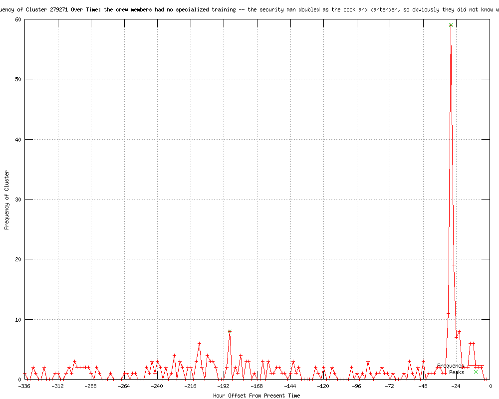 | 5 | the crew members had no specialized training-the security man doubled as the cook and bartender, so obviously they did not know what to do Urls http://breitbart.com/article.php?id=D9SBEUBG0&show_article=1 http://breitbart.com/article.php?id=D9SBG9400&show_article=1 http://breitbart.com/article.php?id=D9SBHK383&show_article=1 http://breitbart.com/article.php?id=D9SBHVQO0&show_article=1 http://japantoday.com/category/world/view/italian-cruise-ship-tally-11-dead-21-missing |