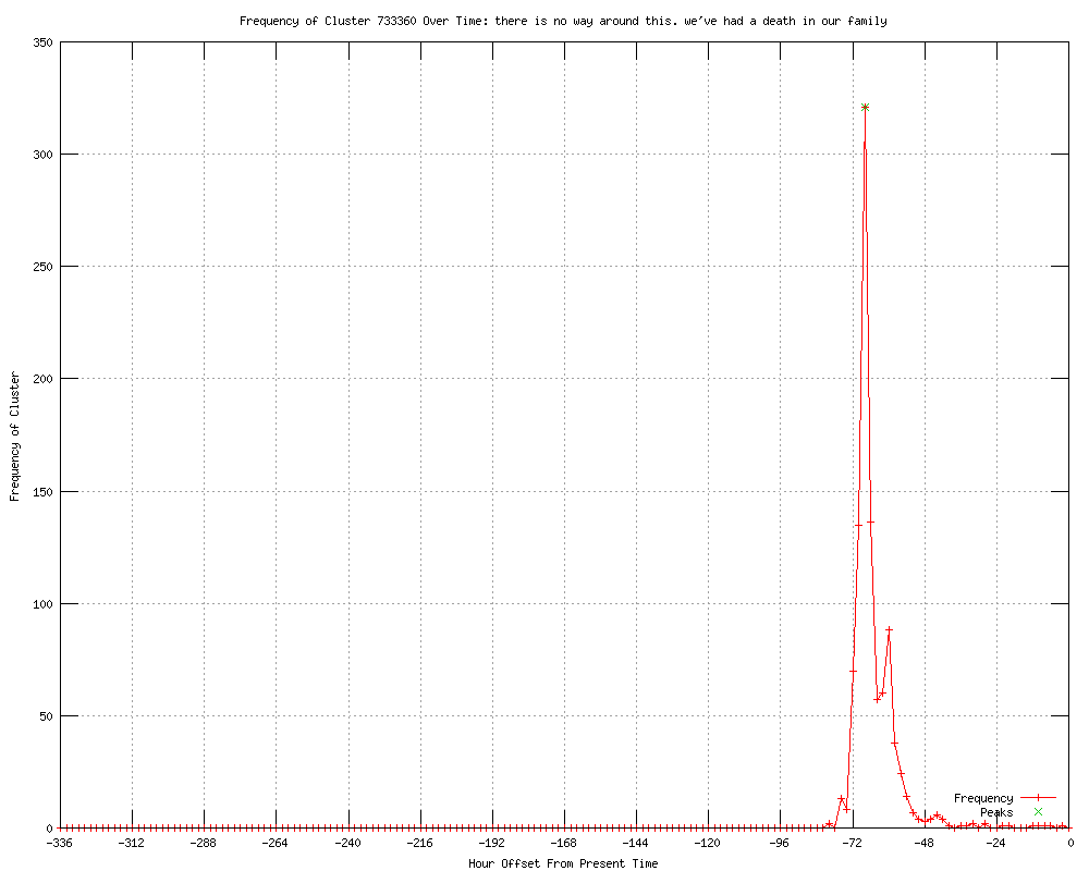 | 10 | we have had a death in our family Urls http://businessweek.com/news/2012-02-12/adele-kanye-west-win-as-houston-s-death-shadows-grammys.html http://us.rd.yahoo.com/finance/external/bloomberg/rss/SIG=12m0vnpvf/*http://www.bloomberg.com/news/2012-02-13/adele-sweeps-top-grammys-at-muted-show.html?cmpid=yhoo http://businessweek.com/news/2012-02-13/adele-sweeps-top-grammys-as-houston-s-death-mutes-awards-show.html http://ireland.com/breaking-news/adele-takes-six-grammys/637941 http://da.feedsportal.com/c/851/f/10838/s/1c995f36/l/0L0Sirishtimes0N0Cnewspaper0Cbreaking0C20A120C0A2130Cbreaking10Bhtm/ia1.htm http://bloomberg.com/news/2012-02-13/adele-sweeps-top-grammys-at-muted-show.html http://businessweek.com/news/2012-02-13/adele-sweeps-top-grammys-as-houston-death-mutes-awards-show.html http://findata.co.nz/News/14533518/Adele_Sweeps_Top_Grammys_as_Houston_Death_Mutes_Awards_Show.htm http://nixguy.com/growing-speculation-that-houston-died-of-overdose-and-alcohol.html http://irishtimes.com/newspaper/breaking/2012/0213/breaking1.html |