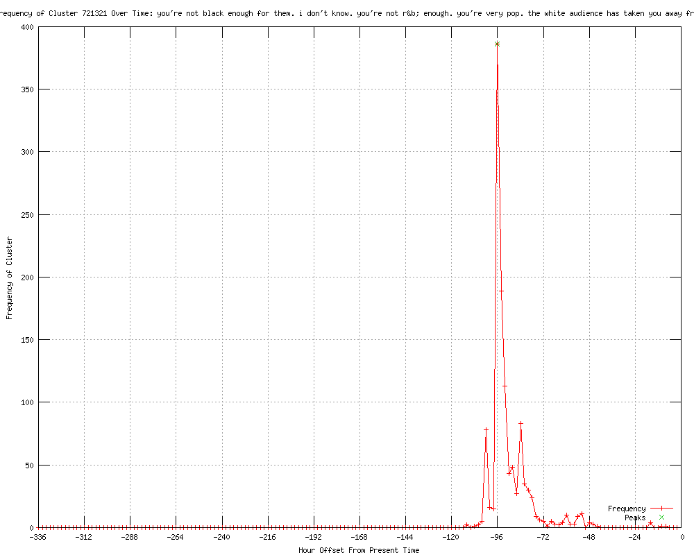 | 989 | you're not black enough for them. i don't know. you're not r&b enough. you're very pop. the white audience has taken you away from them Urls http://wfmj.com/story/16915352/whitney-houston-superstar-of-records-films-dies http://ktxs.com/news/30436993/detail.html http://buzzfeed.com/abrams/whitney-houston-is-dead http://wtvm.com/story/16915352/whitney-houston-superstar-of-records-films-dies http://wtvm.com/story/16915464/whitney-houston-superstar-of-records http://forums.poz.com/index.php?topic=41919.msg520989#msg520989 http://forums.poz.com/index.php?topic=41919.msg520990#msg520990 http://forums.poz.com/index.php?topic=41919.msg520991#msg520991 http://forums.poz.com/index.php?topic=41919.msg520994#msg520994 http://forums.poz.com/index.php?topic=41919.msg520997#msg520997 http://forums.poz.com/index.php?topic=41919.msg520996#msg520996 http://forums.poz.com/index.php?topic=41919.msg520998#msg520998 http://forums.poz.com/index.php?topic=41919.msg521000#msg521000 http://forums.poz.com/index.php?topic=41919.msg521003#msg521003 http://forums.poz.com/index.php?topic=41919.msg521012#msg521012 http://forums.poz.com/index.php?topic=41919.msg521021#msg521021 http://forums.poz.com/index.php?topic=41919.msg521020#msg521020 http://theborneopost.com/2012/02/12/superstar-whitney-houston-dies-latest/ http://denverpost.com/breakingnews/ci_19945697?source=rss http://katu.com/news/entertainment/Whitney-Houston-superstar-of-music-films-dies-at-48-139163769.html http://kstp.com/news/stories/s2493179.shtml?cat=1 http://omg.yahoo.com/news/whitney-houston-superstar-records-films-dies-005927033.html http://citizentribune.com/?p=7830 http://patdollard.com/2012/02/breaking-whitney-houston-up-and-died/ http://koinlocal6.com/news/local/story/Whitney-Houston-superstar-of-records-films-dies/_asF-YBeNkW_FAPly84L0w.cspx http://koinlocal6.com/news/national/story/Whitney-Houston-superstar-of-records-films-dies/_asF-YBeNkW_FAPly84L0w.cspx http://courier-journal.com/article/20120211/SCENE04/302110058/Whitney-Houston-superstar-records-films-dies?odyssey=nav|head http://commercialappeal.com/news/2012/feb/11/whitney-houston-superstar-records-films-dies/?partner=RSS http://mercurynews.com/entertainment/ci_19945796?source=rss http://khou.com/home/Whitney-Houston-superstar-of-records-films-dies-139164009.html http://ctv.ca/CTVNews/TopStories/20120211/whitney-houston-120211/ http://newstalk650.com/content/whitney-houston-superstar-records-films-dies http://ckom.com/content/whitney-houston-superstar-records-films-dies http://thenewstribune.com/2012/02/11/2022328/whitney-houston-superstar-of-records.html?storylink=rss http://us.rd.yahoo.com/dailynews/rss/topstories/*http://news.yahoo.com/s/ap/20120212/ap_on_en_mu/us_obit_whitney_houston http://pogocheats.net/forum/index.php/topic,41146.msg601356.html#msg601356 http://chron.com/news/article/Whitney-Houston-superstar-of-records-films-dies-3305407.php http://dfw.com/2012/02/11/575292/whitney-houston-superstar-of-records.html http://dailyherald.com/article/20120211/news/120219961/ http://newsvine.com/_news/2012/02/11/10384435-whitney-houston-superstar-of-records-films-dies http://timesfreepress.com/news/2012/feb/11/whitney-houston-superstar-records-films-dies/ http://mysanantonio.com/news/article/Whitney-Houston-superstar-of-records-films-dies-3305407.php http://readingeagle.com/article.aspx?id=364769 http://kolotv.com/home/headlines/Whitney_Houston_Superstar_of_Records_Films_Dies_139163809.html http://komonews.com/news/entertainment/Whitney-Houston-superstar-of-records-films-dies-at-48-139163709.html http://sacbee.com/2012/02/11/4256712/whitney-houston-superstar-of-records.html#mi_rss=Top%20Stories http://abclocal.go.com/kfsn/story?section=news/entertainment&id=8539962&rss=rss-kfsn-article-8539962 http://wmbfnews.com/story/16915352/whitney-houston-superstar-of-records-films-dies http://timesrecordnews.com/news/2012/feb/11/whitney-houston-superstar-records-films-dies/ http://argusleader.com/article/20120211/UPDATES/120211004/Whitney-Houston-dies-at-48?odyssey=tab|topnews|text|Home http://argusleader.com/article/20120211/UPDATES/120211004/Whitney-Houston-dies-at-48?odyssey=tab|topnews|img|Home http://wthr.com/story/16915352/whitney-houston-superstar-of-records-films-dies http://kstc45.com/article/stories/S2493181.shtml?cat=10905 http://kansascity.com/2012/02/11/3423612/whitney-houston-superstar-of-records.html#storylink=rss http://kusi.com/story/16915352/whitney-houston-superstar-of-records-films-dies http://pheedo.msnbc.msn.com/click.phdo?i=0a54dd1f2bc585c0aed7a9c494e97030 http://msnbc.msn.com/id/46355482/ns/today-entertainment/ http://wfie.com/story/16915352/whitney-houston-superstar-of-records-films-dies http://brownsvilleherald.com/articles/whitney-136830-angeles-dies.html http://brownsvilleherald.com/entertainment/whitney-136829-angeles-dies.html http://khnl.com/story/16915352/whitney-houston-superstar-of-records-films-dies http://wric.com/story/16915352/whitney-houston-superstar-of-records-films-dies http://kxxv.com/story/16915352/whitney-houston-superstar-of-records-films-dies http://today.msnbc.msn.com/id/46355482/ns/today-entertainment/ http://fox19.com/story/16915352/whitney-houston-superstar-of-records-films-dies http://woi-tv.com/story/16915352/whitney-houston-superstar-of-records-films-dies http://lohud.com/article/20120211/NEWS/120211002 http://courier-journal.com/article/20120211/SCENE04/302110058/Whitney-Houston-superstar-records-films-dies?odyssey=tab|topnews|text|Home http://courier-journal.com/article/20120211/SCENE04/302110058/Whitney-Houston-superstar-records-films-dies?odyssey=tab|topnews|img|Home http://courier-journal.com/article/20120211/SCENE04/302110058/Whitney-Houston-superstar-records-films-dies?odyssey=mod|newswell|text|Home|p http://courier-journal.com/article/20120211/SCENE04/302110058/Whitney-Houston-superstar-records-films-dies?odyssey=mod|newswell|img|Home|p http://accessatlanta.com/atlanta-music/whitney-houston-superstar-of-1346210.html http://wxv