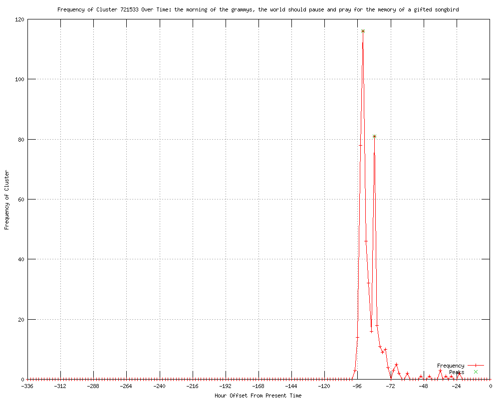 | 454 | the morning of the grammys, the world should pause and pray for the memory of a gifted songbird Urls http://wfmj.com/story/16915352/whitney-houston-superstar-of-records-films-dies http://tla-pronline.com/news/4427-singing-superstar-whitney-houston-dies-at-48.html http://thuglifearmy.com/news/4427-singing-superstar-whitney-houston-dies-at-48.html http://utsandiego.com/news/2012/feb/11/whitney-houston-superstar-records-films-dies/ http://us.rd.yahoo.com/dailynews/rss/obits/*http://news.yahoo.com/s/ap/20120212/ap_en_ot/us_obit_whitney_houston http://boston.com/ae/music/articles/2012/02/11/whitney_houston_superstar_of_records_films_dies?rss_id=Boston.com+--+Music+news http://accessatlanta.com/atlanta-music/whitney-houston-superstar-of-1346249.html http://hosted.ap.org/dynamic/stories/U/US_OBIT_WHITNEY_HOUSTON?SITE=CAMAR&SECTION=HOME&TEMPLATE=DEFAULT http://us.rd.yahoo.com/dailynews/rss/entertainment/*http://news.yahoo.com/s/ap/20120212/ap_en_tv/us_obit_whitney_houston http://us.rd.yahoo.com/dailynews/rss/entertainment/*http://news.yahoo.com/s/ap/20120212/ap_en_mo/us_obit_whitney_houston http://us.rd.yahoo.com/dailynews/rss/entertainment/*http://news.yahoo.com/s/ap/20120212/ap_on_en_mu/us_obit_whitney_houston http://entertainment.msn.com/news/article.aspx?news=702915&affid=100055 http://daytonscw.com/dpps/entertainment/celebrity/whitney-houston-superstar-of-records-films-dies-nt12-jgr_4070001 http://breitbart.com/article.php?id=D9SRI53G1&show_article=1 http://lansingstatejournal.com/article/20120211/ENTERTAINMENT02/302110020/-1/RSS http://wlbt.com/story/16915577/whitney-houston-superstar-of-records-films-dies http://ktrv.com/story/16915577/whitney-houston-superstar-of-records-films-dies http://wtol.com/story/16915577/whitney-houston-superstar-of-records-films-dies http://wrcbtv.com/story/16915577/whitney-houston-superstar-of-records-films-dies http://petoskeynews.com/news/featured/pnr-whitney-houston-superstar-of-records-films-dies-20120211,0,3004932.story?track=rss http://newsvine.com/_news/2012/02/11/10385000-whitney-houston-superstar-of-records-films-dies http://hosted.ap.org/dynamic/stories/U/US_OBIT_WHITNEY_HOUSTON?SITE=AP http://guardian.co.uk/world/feedarticle/10089050 http://artesianews.com/ap-news/entertainment-ap-news/whitney-houston-superstar-of-records-films-dies-2/ http://cbsnews.com/8301-501368_162-57376049/whitney-houston-superstar-of-records-films-dies/ http://us.rd.yahoo.com/dailynews/rss/obits/*http://news.yahoo.com/s/ap/20120212/ap_en_tv/us_obit_whitney_houston http://lansingstatejournal.com/article/20120211/ENTERTAINMENT02/302110020/Whitney-Houston-superstar-records-films-dies-?odyssey=mod|breaking|img|FRONTPAGE http://lansingstatejournal.com/article/20120211/ENTERTAINMENT02/302110020/Whitney-Houston-superstar-records-films-dies-?odyssey=mod|newswell|img|FRONTPAGE|p http://lansingstatejournal.com/article/20120211/ENTERTAINMENT02/302110020/Whitney-Houston-superstar-records-films-dies-?odyssey=mod|newswell|text|FRONTPAGE|p http://lansingstatejournal.com/article/20120211/ENTERTAINMENT02/302110020/Whitney-Houston-superstar-records-films-dies-?odyssey=mod|breaking|text|FRONTPAGE http://am-news.com/content/whitney-houston-dead-48 http://kentucky.com/2012/02/11/2065011/whitney-houston-superstar-of-records.html#storylink=rss http://wral.com/entertainment/story/10718923/ http://clintonherald.com/breakingnews/x980635542/Whitney-Houston-superstar-of-records-films-dies http://clintonherald.com/apstorysection/x980635542/Whitney-Houston-superstar-of-records-films-dies http://therecord.com/whatson/artsentertainment/article/669960--whitney-houston-dead-at-48 http://tv.yahoo.com/news/whitney-houston-superstar-records-films-dies-005927033.html http://wcbi.com/article.php?subaction=showfull&id=1329015516&archive=&start_from=&ucat=1,2& http://guelphmercury.com/whatson/artsentertainment/article/669959--whitney-houston-dead-at-48 http://hosted.ap.org/dynamic/stories/U/US_OBIT_WHITNEY_HOUSTON?SITE=WTVCTV&SECTION=HOME&TEMPLATE=DEFAULT http://insidebayarea.com/ci_19945796?source=most_viewed http://insidebayarea.com/ci_19945797?source=most_viewed http://newsok.com/whitney-houston-superstar-of-records-films-dies/article/feed/347150?custom_click=rss http://news-journalonline.com/news/nationworld/2012/02/12/whitney-houston-superstar-of-records-films-found-dead-in-hotel-room.html http://.nbc17.com/news/2012/feb/11/whitney-houston-found-dead-beverly-hilton-ar-1920441/ http://jose-aviles.blogspot.com/2012/02/superstar-whitney-houston-dies-at-48.html http://seniorcitizens.org/2012/02/11/whitney-houston-pop-superstar-dies-at-48/ http://entertainment.msn.com/tv/article.aspx?news=702925&affid=100055 http://kcrg.com/news/local/Whitney-Houston-Superstar-of-Records-Films-Dies-139167299.html http://davisenterprise.com/associated-press/recording-superstar-whitney-houston-dead-at-48/ http://guardian.co.uk/world/feedarticle/10089104 http://oakridger.com/x574404181/Whitney-Houston-superstar-of-records-films-dies-at-48 http://wlox.com/story/16915577/whitney-houston-superstar-of-records-films-dies http://entertainment.msn.com/movies/article.aspx?news=702942&affid=100055 http://wistv.com/story/16915577/whitney-houston-superstar-of-records-films-dies http://wbtv.com/story/16915577/whitney-houston-superstar-of-records-films-dies http://courier-journal.com/article/20120211/SCENE04/302110058?odyssey=mod|mostcom http://kwqc.com/Global/story.asp?S=16915577 http://wgem.com/story/16915577/whitney-houston-superstar-of-records-films-dies http://toledoblade.com/Music-Theater-Dance/2012/02/11/EMTs-at-Beverly-Hills-Hilton-hotel-tried-to-revive-Houston.html http://wdam.com/story/16915577/whitney-houston-superstar-of-records-films-dies http://mansfieldnewsjournal.com/article/20120211/NEWS01/120211001/Whitney-Houston-record-film-superstar-dies?odyssey=nav|head http://mansfieldnewsjournal.com/article/20120211/NEWS01/120211001/Whitney-Houston-record-film-superstar-dies?odyssey=mod|breaking|text|Frontpage http://mansfieldnewsjour