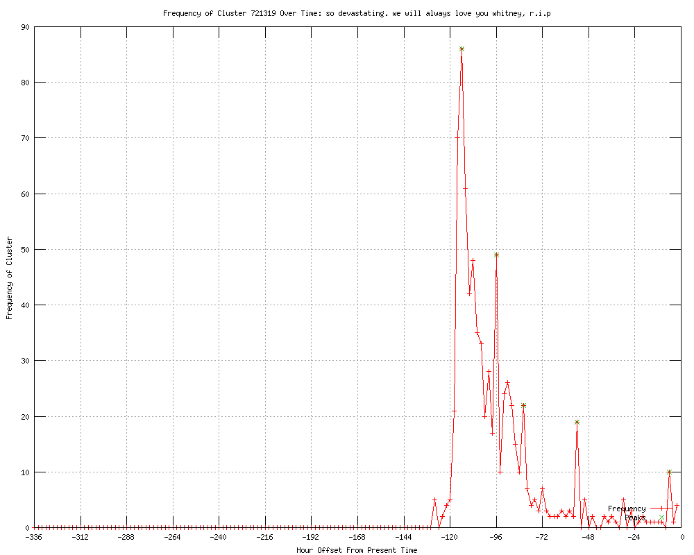 | 6 | so devastating we will always love you whitney rip Urls http://dailyindia.com/show/484743.php http://truthdive.com/2012/02/12/Celebs-and-fellow-singers-shocked-by-Whitney-Houston-s-death.html http://realbollywood.com/2012/02/celebs-mourn-whitney-houston-death.html http://feeds.bignewsnetwork.com/?sid=203429126 http://indiatalkies.com/2012/02/celebs-fellow-singers-shocked-whitney-houstons-death.html http://dnaindia.com/entertainment/report_celebs-and-fellow-singers-shocked-by-whitney-houston-s-death_1649055 |