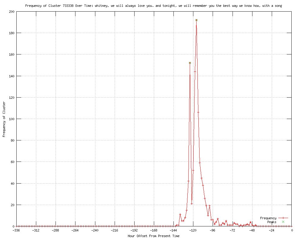 | 12 | whitney, i will always love you. you will be missed Urls http://svd.se/kultur/dolly-parton-mitt-ar-bara-ett-av-de-miljoner-hjartan-som-krossats_6843887.svd http://sortathatguy.blogspot.com/2012/02/rip-whitney-houston-1963-2012.html http://rollingstone.com/music/news/mariah-carey-diddy-others-react-to-whitney-houstons-death-20120212 http://music.yahoo.com/news/mariah-carey-diddy-others-react-whitney-houstons-death-141003728.html http://free270.livejournal.com/1889386.html http://telegraph.feedsportal.com/c/32726/f/564430/s/1c9739ec/l/0L0Stelegraph0O0Cculture0Cmusic0Cmusic0Enews0C90A774640CWhitney0EHouston0Elive0Bhtml/story01.htm http://telegraph.feedsportal.com/c/32726/f/579306/s/1c9737cc/l/0L0Stelegraph0O0Cculture0Cmusic0Cmusic0Enews0C90A774640CWhitney0EHouston0Elive0Bhtml/story01.htm http://telegraph.feedsportal.com/c/32726/f/534871/s/1c974117/l/0L0Stelegraph0O0Cculture0Cmusic0Cmusic0Enews0C90A774640CWhitney0EHouston0Elive0Bhtml/story01.htm http://telegraph.feedsportal.com/c/32726/f/564430/s/1c99f5d2/l/0L0Stelegraph0O0Cculture0Cmusic0Cmusic0Enews0C90A784920CWhitney0EHouston0Elive0Bhtml/story01.htm http://ushotbuzz.blogspot.com/2012/02/whitney-houston-dies-aged-48-at-beverly.html http://independent.co.uk/news/people/news/tributes-pour-in-for-tragic-whitney-houston-6801802.html http://elvira.tumblr.com/post/17478296466 |