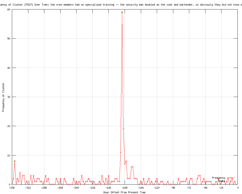 | 120 | the crew members had no specialized training - the security man doubled as the cook and bartender, so obviously they did not know what to do Urls http://sg.news.yahoo.com/hungarian-cruise-ship-victim-crew-violinist-161156560.html http://toledoblade.com/World/2012/01/18/Italy-names-28-missing-from-the-cruise-ship-search-teams-suspend-operations-as-boat-shifts.html http://brownsvilleherald.com/articles/rome-135964-cruise-italians.html http://courierpress.com/news/2012/jan/18/cruise-ship-rescue-operations-suspended-22-still-m/?partner=RSS http://my.news.yahoo.com/italians-name-28-missing-cruise-passengers-crew-140803822.html http://orangeleader.com/topstories/x1405465408/Italians-name-28-missing-cruise-passengers-crew http://ajc.com/business/italians-name-28-missing-1306787.html?cxtype=rss_news_82111 http://kdwn.com/index.php?page=2§ion=WORLD_NEWS&title=Italians_name_28_missing_cruise_passengers,_crew http://seattlepi.com/business/article/Hungarian-cruise-ship-victim-was-crew-violinist-2608550.php http://kwwl.com/story/16544729/italy-pm-thanks-giglio-for-welcoming-ship-refugees http://kswo.com/story/16544729/italy-pm-thanks-giglio-for-welcoming-ship-refugees http://kxxv.com/story/16544729/italy-pm-thanks-giglio-for-welcoming-ship-refugees http://wlox.com/story/16544729/italy-pm-thanks-giglio-for-welcoming-ship-refugees http://kusi.com/story/16544729/italy-pm-thanks-giglio-for-welcoming-ship-refugees http://news9.com/story/16544729/italy-pm-thanks-giglio-for-welcoming-ship-refugees http://wlbt.com/story/16544729/italy-pm-thanks-giglio-for-welcoming-ship-refugees http://ksla.com/story/16544729/italy-pm-thanks-giglio-for-welcoming-ship-refugees http://wect.com/story/16544729/italy-pm-thanks-giglio-for-welcoming-ship-refugees http://kwqc.com/Global/story.asp?S=16544729 http://ktvn.com/story/16544729/italy-pm-thanks-giglio-for-welcoming-ship-refugees http://digitalburg.com/artman2/publish/National_Affairs_59/Italians_name_28_missing_cruise_passengers_crew.shtml http://kyivpost.com/news/world/detail/120763/ http://wkrn.com/story/16544729/italy-pm-thanks-giglio-for-welcoming-ship-refugees http://.nbc17.com/news/2012/jan/18/search-ship-survivors-suspended-day-captain-still--ar-1827736/ http://klkntv.com/story/16544729/italy-pm-thanks-giglio-for-welcoming-ship-refugees http://kcautv.com/story/16544729/italy-pm-thanks-giglio-for-welcoming-ship-refugees http://mysanantonio.com/business/article/Italians-name-28-missing-cruise-passengers-crew-2588067.php http://woi-tv.com/story/16544729/italy-pm-thanks-giglio-for-welcoming-ship-refugees http://cbs3springfield.com/story/16544729/italy-pm-thanks-giglio-for-welcoming-ship-refugees http://kare11.com/rss/article/957226/391/28-missing-Italian-cruise-passengers-crew-named- http://kswt.com/story/16544729/italy-pm-thanks-giglio-for-welcoming-ship-refugees http://wten.com/story/16544729/italy-pm-thanks-giglio-for-welcoming-ship-refugees http://wric.com/story/16544729/italy-pm-thanks-giglio-for-welcoming-ship-refugees http://cbsnews.com/8301-202_162-57361125/cruise-violinist-idd-as-disasters-first-victim/ http://wrex.com/story/16544729/italy-pm-thanks-giglio-for-welcoming-ship-refugees http://ckom.com/content/italians-name-28-missing-cruise-passengers-crew http://kcbd.com/story/16544729/italy-pm-thanks-giglio-for-welcoming-ship-refugees http://wmbfnews.com/story/16544729/italy-pm-thanks-giglio-for-welcoming-ship-refugees http://guardian.co.uk/world/feedarticle/10047541 http://sunjournal.com/news/news/2012/01/18/italian-government-releases-names-those-still-miss/1142889 http://ktiv.com/story/16544729/italy-pm-thanks-giglio-for-welcoming-ship-refugees http://knoe.com/story/16544729/italy-pm-thanks-giglio-for-welcoming-ship-refugees http://sg.news.yahoo.com/german-woman-alive-cruise-ship-missing-21-174258018.html http://ajc.com/business/german-woman-is-alive-1306787.html?cxtype=rss_news_82111 http://kmph.com/story/16544729/italy-pm-thanks-giglio-for-welcoming-ship-refugees http://feeds.cbsnews.com/~r/CBSNewsMain/~3/Xay2lxO5ytc/ http://seattlepi.com/news/article/Italians-name-28-missing-cruise-passengers-crew-2608550.php http://wandtv.com/story/16544729/italy-pm-thanks-giglio-for-welcoming-ship-refugees http://newson6.com/story/16544729/italy-pm-thanks-giglio-for-welcoming-ship-refugees http://kdwn.com/index.php?page=2§ion=WORLD_NEWS&title=German_woman_is_alive,_cruise_ship_missing_at_21 http://feeds.cbsnews.com/~r/CBSNewsWorld/~3/IlqI-cEIbcE/ http://sunjournal.com/node/1142889 http://cbsnews.com/8301-202_162-57361125/cruise-violinist-is-first-disaster-victim-idd/ http://news.yahoo.com/german-woman-alive-cruise-ship-missing-21-174258018.html http://theskanner.com/article/VIDEO-German-Woman-is-Alive-Cruise-Ship-Missing-21-Passengers-2012-01-18 http://wbay.com/story/16544729/italy-pm-thanks-giglio-for-welcoming-ship-refugees http://newstimes.com/news/article/German-woman-is-alive-cruise-ship-missing-at-21-2608550.php http://mysanantonio.com/news/article/German-woman-is-alive-cruise-ship-missing-at-21-2608550.php http://kare11.com/rss/article/957226/391/Missing-Italian-cruise-passengers-crew-named- http://huffingtonpost.com/2012/01/18/costa-concordia-victim-sandor-feher-hungary_n_1213387.html http://wkyc.com/news/national/225746/22/Two-Americans-on-list-of-missing-in-Italy-ship-disaster http://wkyc.com/news/article/225746/45/Two-Americans-on-list-of-missing-in-Italy-ship-disaster http://wkyc.com/news/article/225746/45/Two-Americans-on-list-of-missing-in-Italy-ship-disaster?odyssey=tab%7Ctopnews%7Cbc%7Clarge http://seattlepi.com/news/article/German-woman-is-alive-cruise-ship-missing-at-21-2608550.php http://globalnews.ca/Canada/italy+names+28+missing+from+the+cruise+ship+search+teams+suspend+operations+as+boat+shifts2/6442562085/story.html http://feeds.cbsnews.com/~r/CBSNewsWorld/~3/Xay2lxO5ytc/ http://globalnews.ca/Canada/italy+names+those+missing+from+the+cruise+ship+search+teams+suspend+operations+as+boat+shifts2/6442562085/story.html http://sg.news.yahoo.com